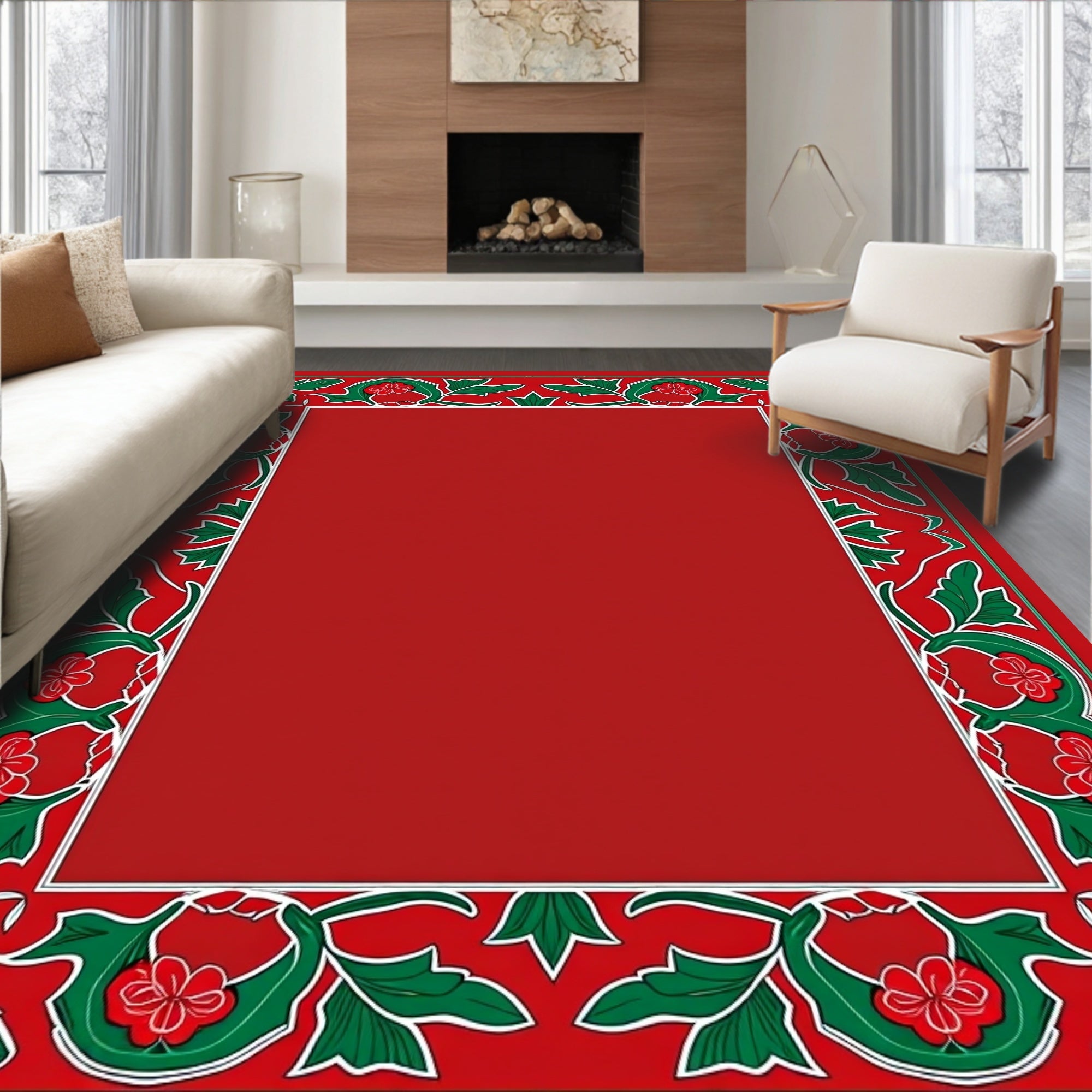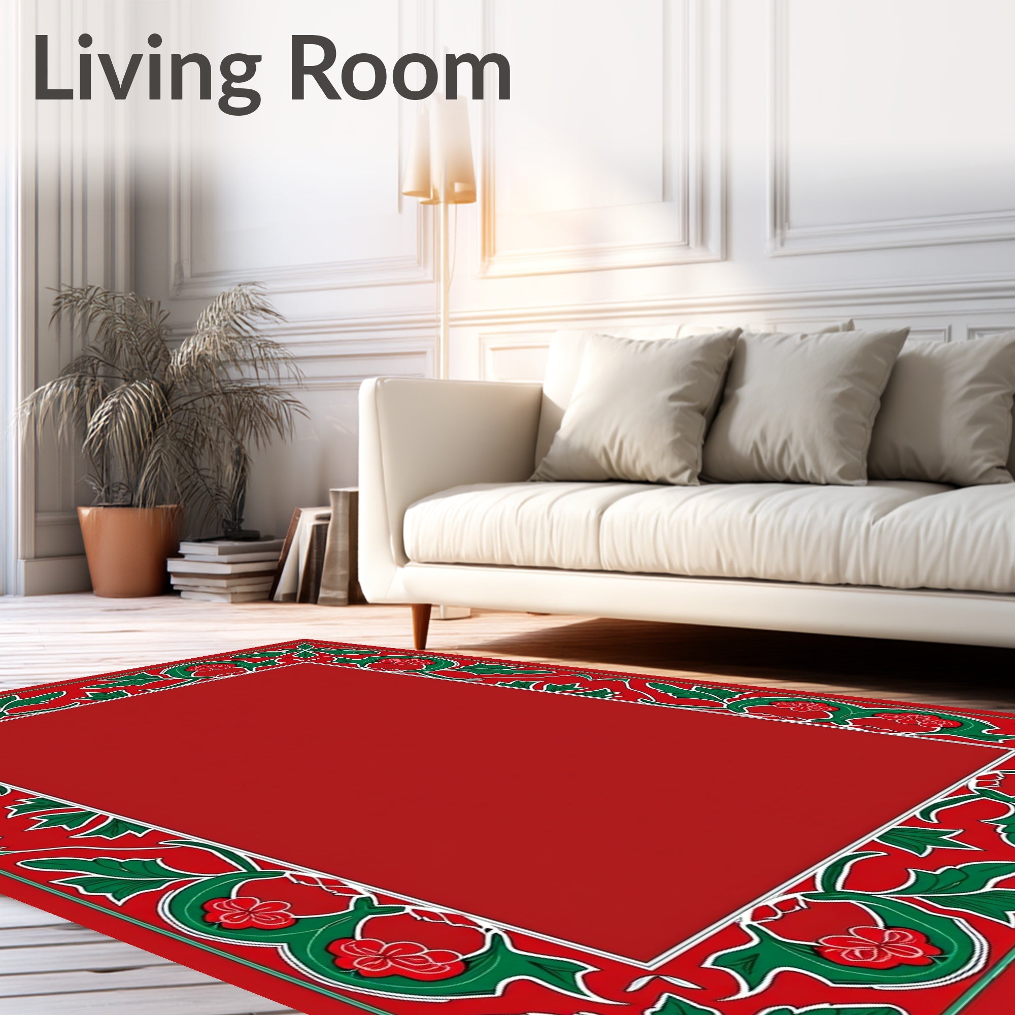 Flatwoven High Traffic Area Rug, Holiday Lattice with Berry and Leaf Detailing, Non Slip, Stain Resistant, Washable Area Rugs for Living Room, Bedroom (Red) Overview: