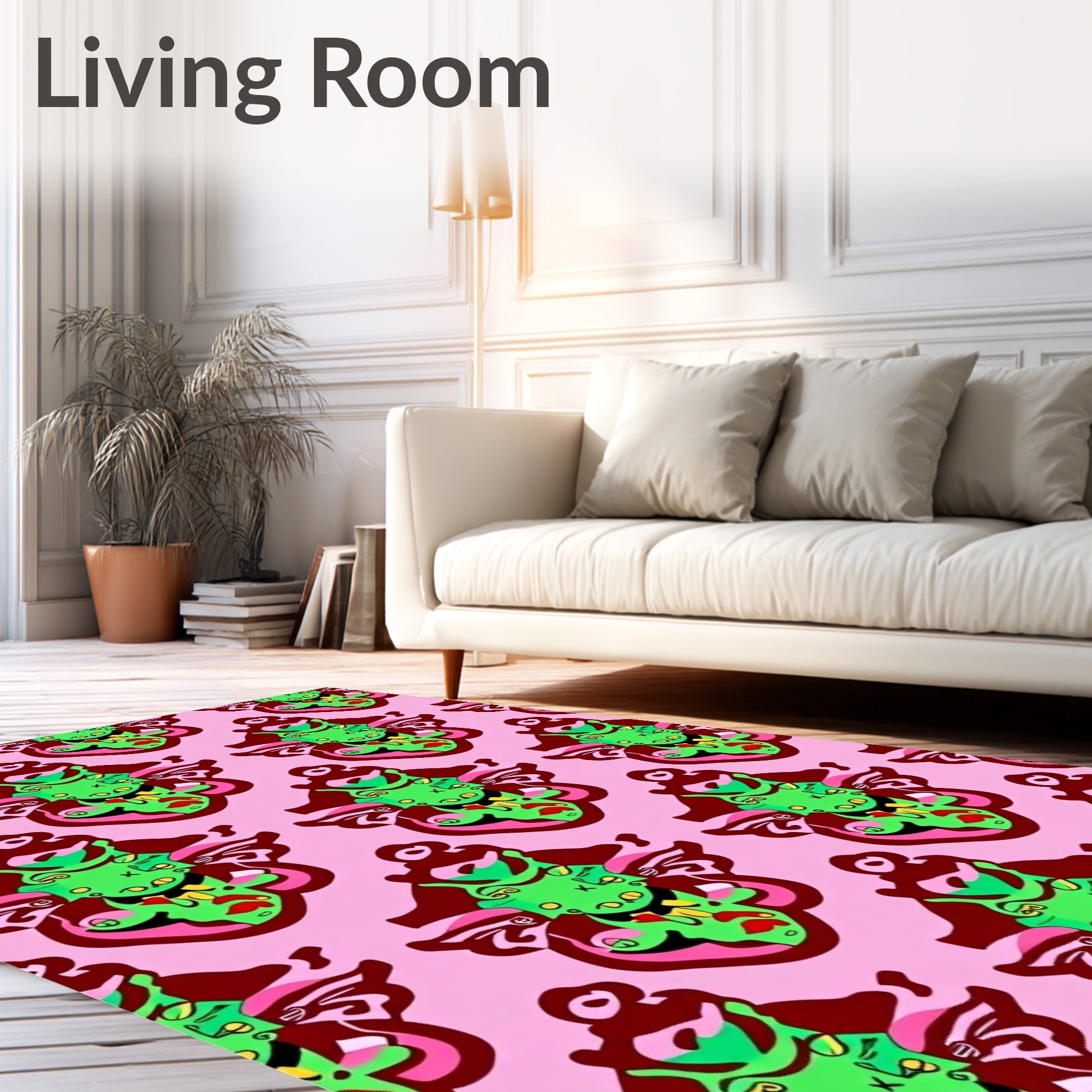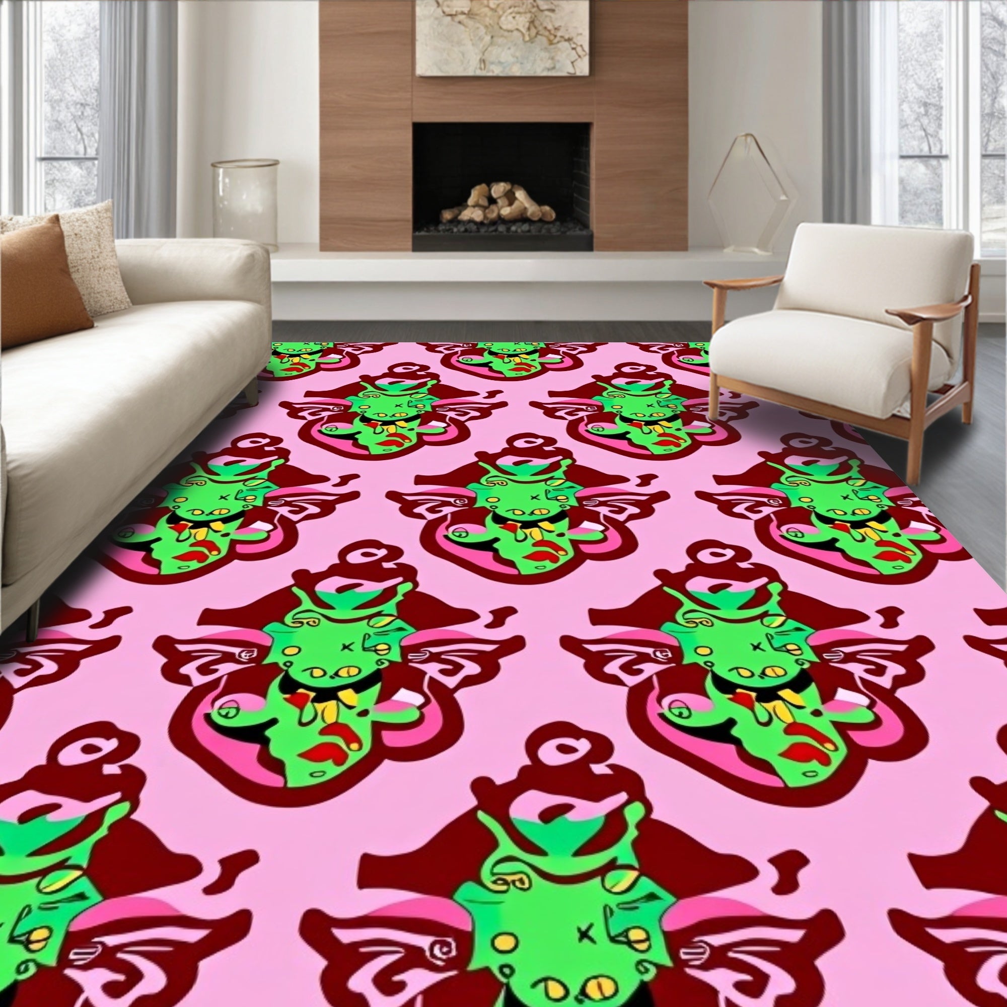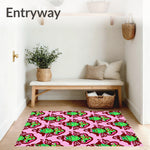 Ultra Soft Area Rug, Non Slip, Stain Resistant, Washable Area Rugs for Living Room, Bedroom, Holiday Mischief Cat with Interlocking Baubles(Pink) Overview:
