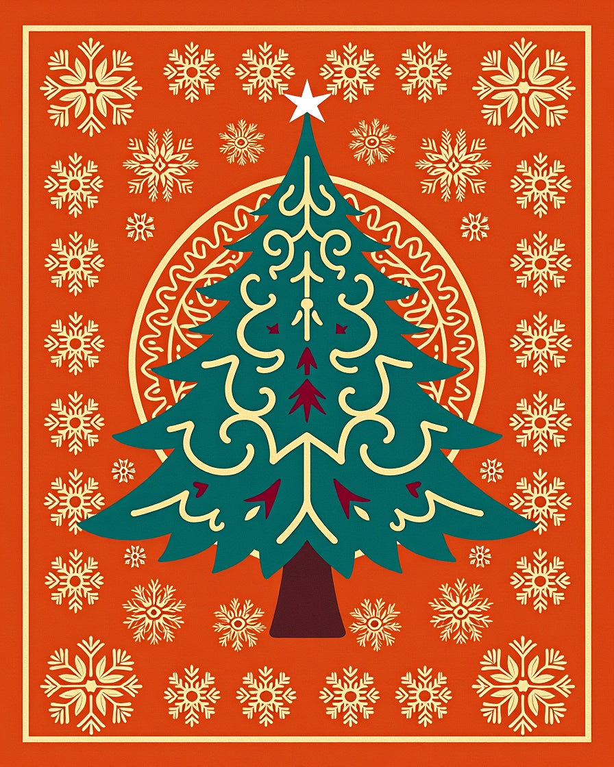 Holiday Serenity Tree with Interlocking Winter Flakes Design(Orange)