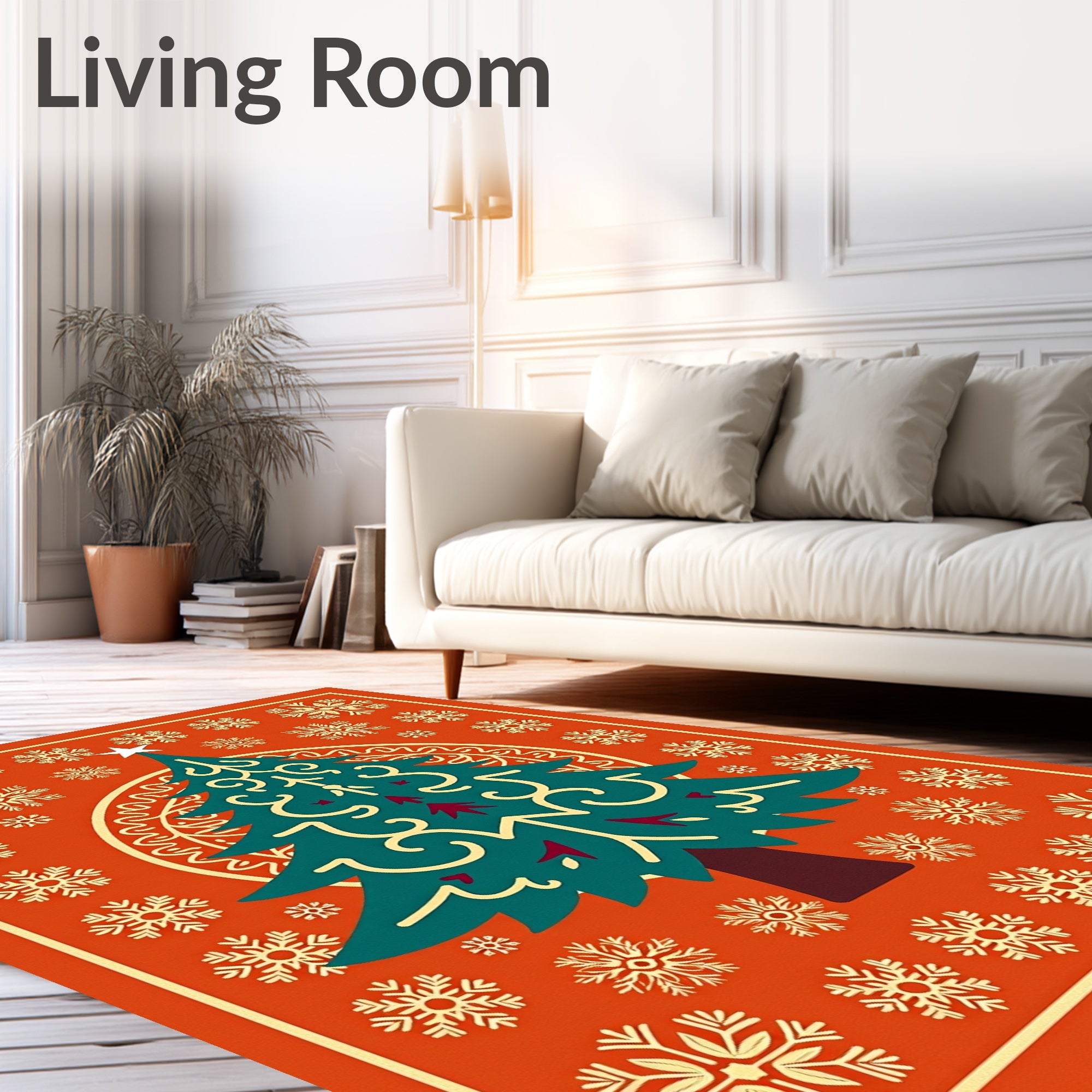 Flatwoven High Traffic Area Rug, Holiday Serenity Tree with Interlocking Winter Flakes Design, Non Slip, Stain Resistant, Washable Area Rugs for Living Room, Bedroom (Orange) Overview: