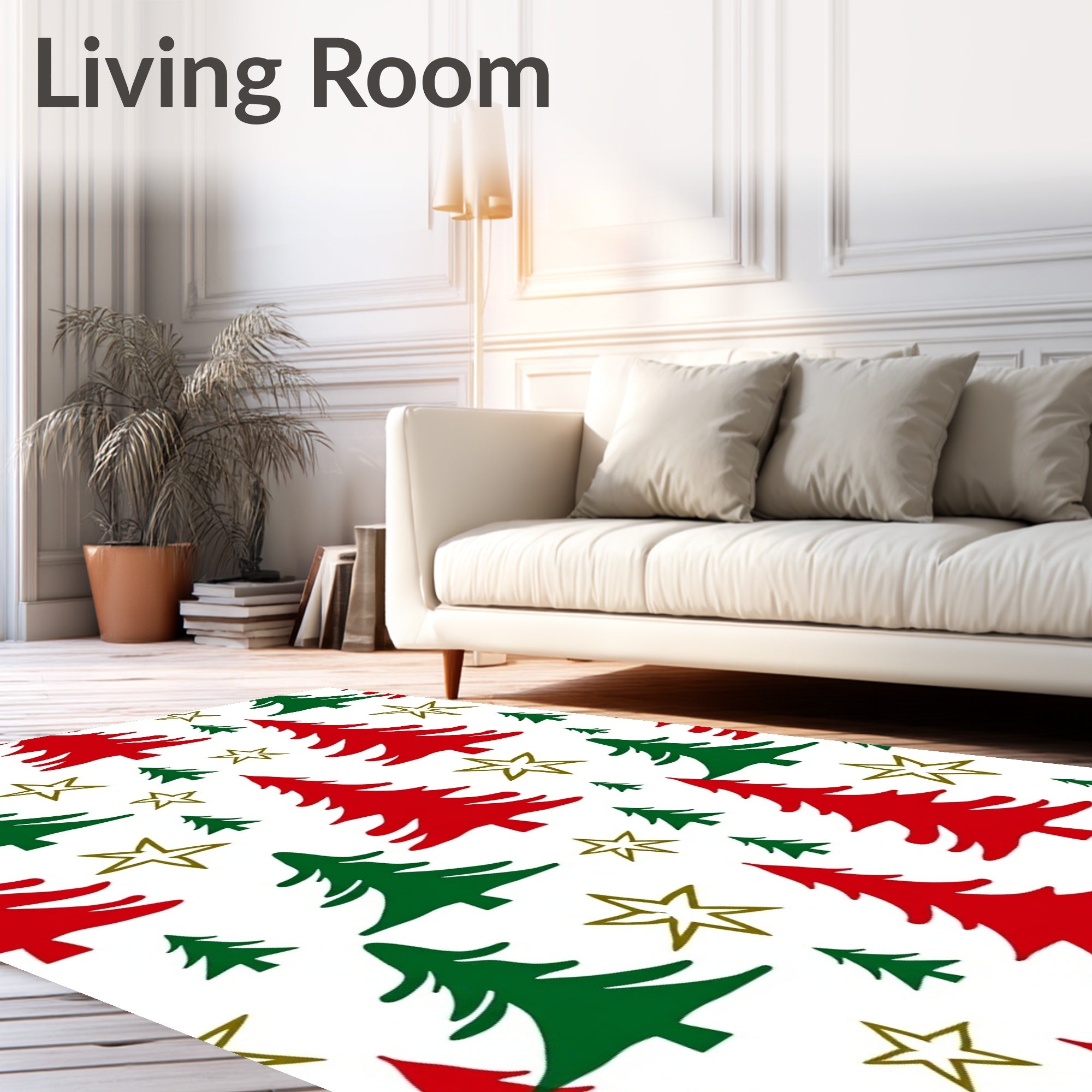 Flatwoven High Traffic Area Rug, Holiday Tree with Decorative Pine Branch Motifs, Non Slip, Stain Resistant, Washable Area Rugs for Living Room, Bedroom (Red) Overview:
