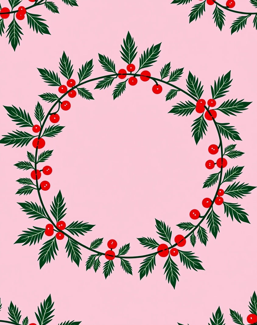 Holly Berry Wreath Motif Yuletide Celebration Decorative Area(Pink)