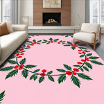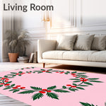 Ultra Soft Area Rug, Non Slip, Stain Resistant, Washable Area Rugs for Living Room, Bedroom, Holly Berry Wreath Motif Yuletide Celebration Decorative Area(Pink) Overview: