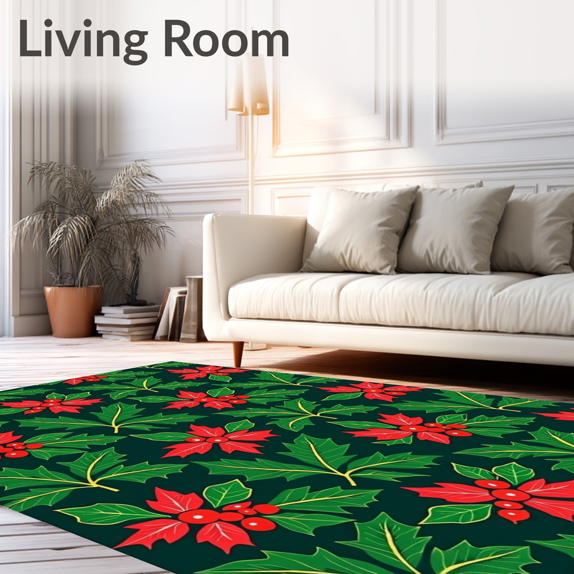 Ultra Soft Area Rug, Non Slip, Stain Resistant, Washable Area Rugs for Living Room, Bedroom, Holly Leaves Berries Festive Holiday(Red) Overview:
