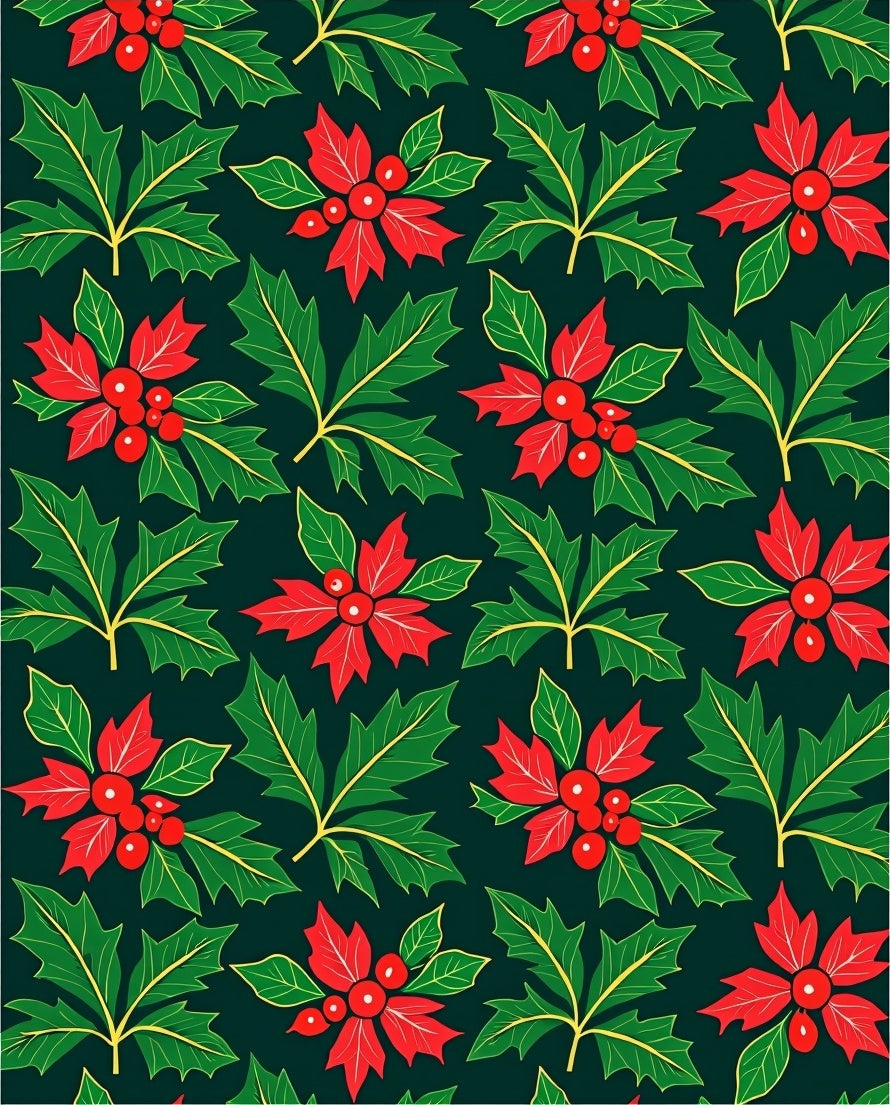 Holly Leaves Berries Festive Holiday(Red)