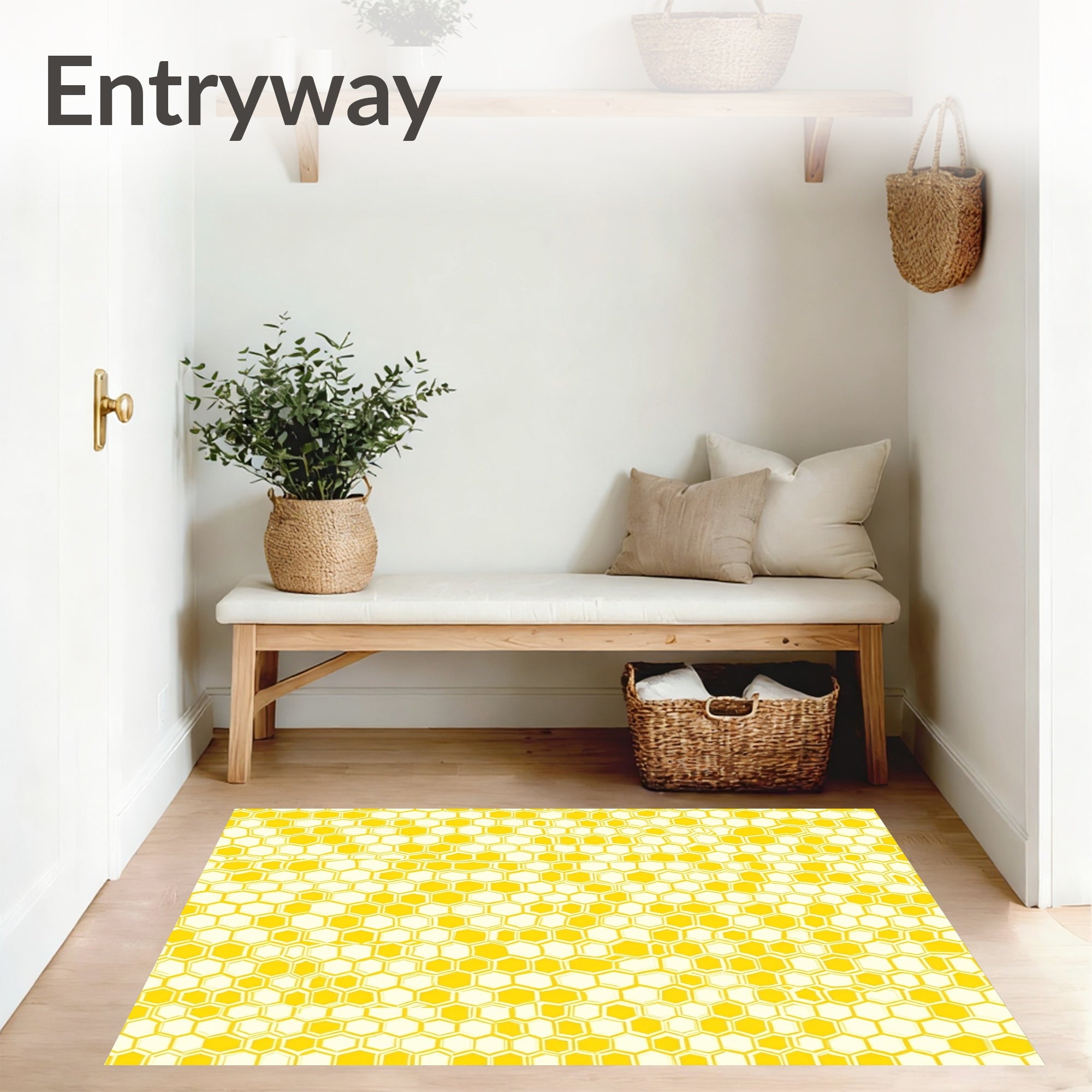 Ultra Soft Area Rug, Non Slip, Stain Resistant, Washable Area Rugs for Living Room, Bedroom, Honeycomb Hexagonal Modern Abstract Artistic Vibrant Decorative(Yellow) Overview: