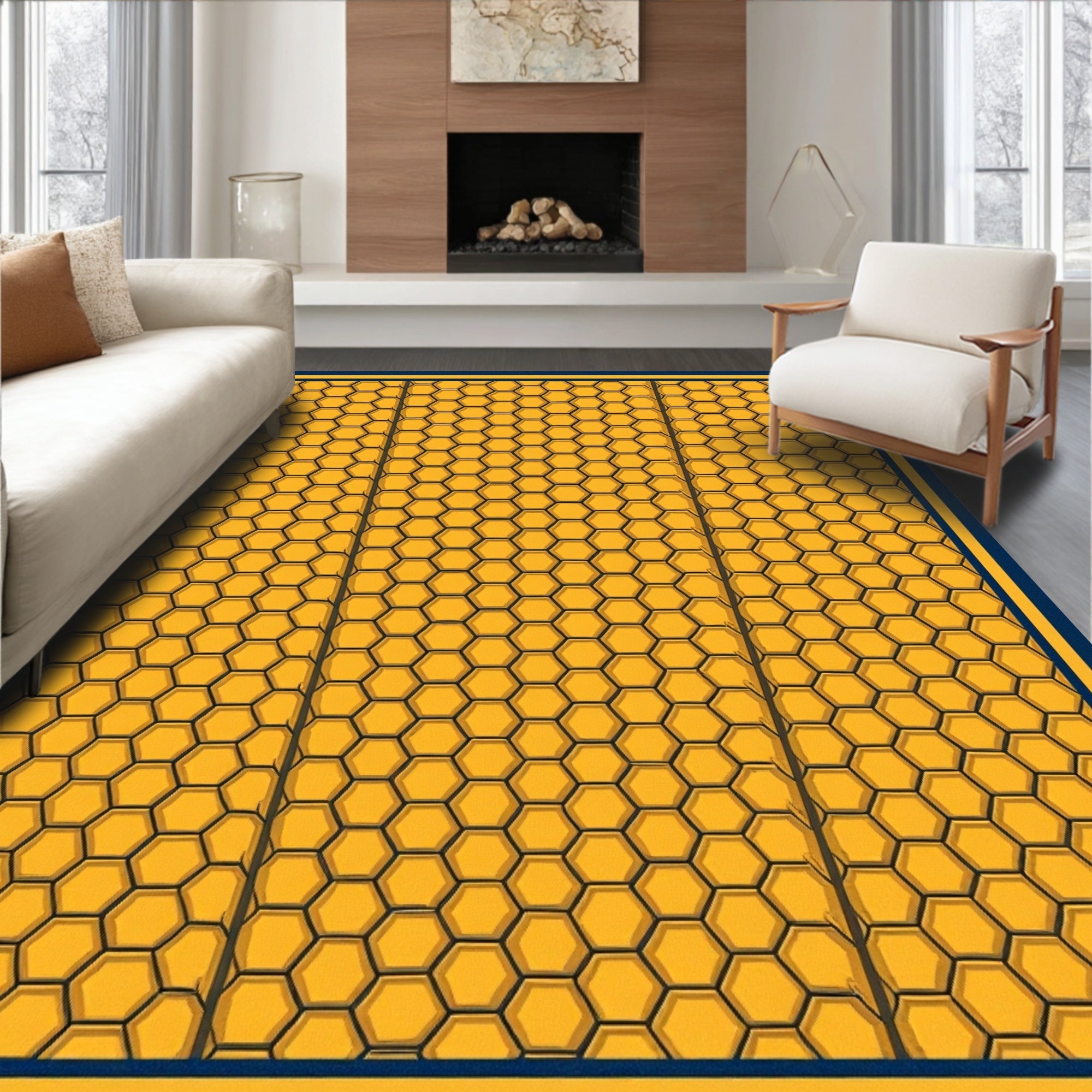 Ultra Soft Area Rug, Non Slip, Stain Resistant, Washable Area Rugs for Living Room, Bedroom, Honeycomb Hexagonal with Structured Cell Surface(Yellow) Overview:
