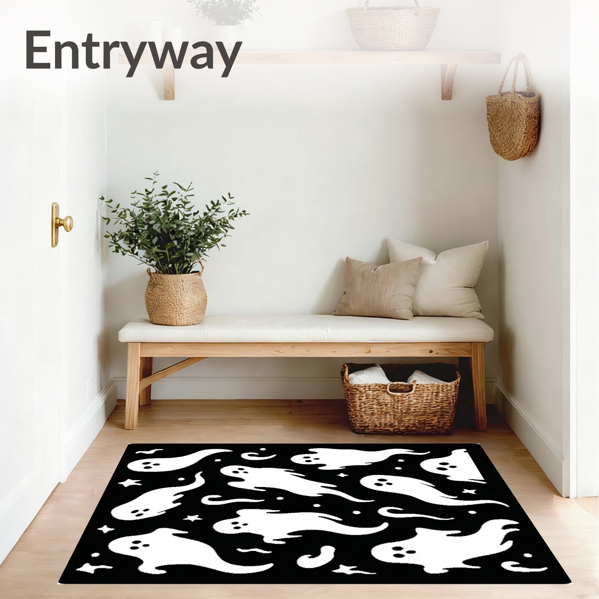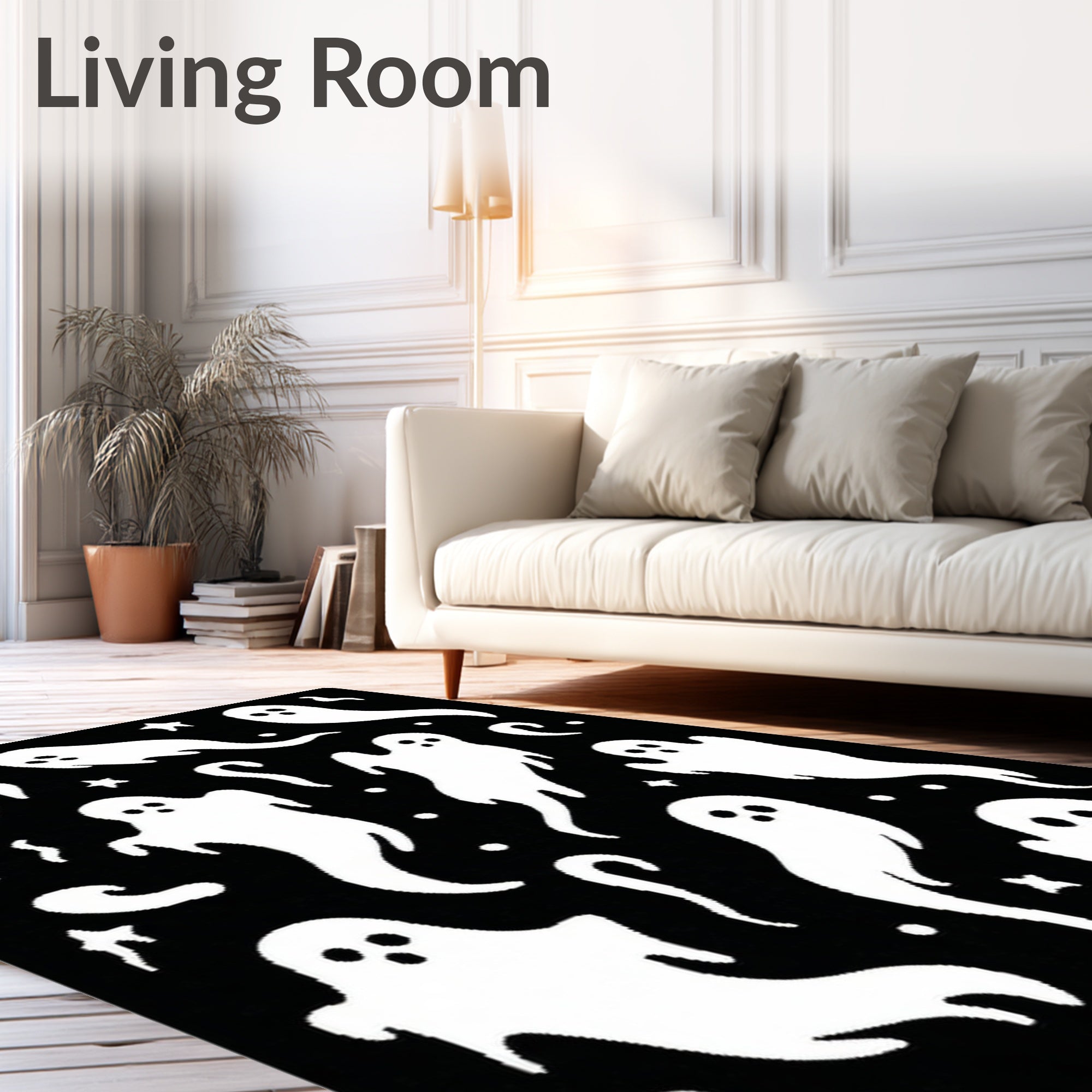 Ultra Soft Area Rug, Non Slip, Stain Resistant, Washable Area Rugs for Living Room, Bedroom, Horror Themed Bath Mat Ghostly Halloween Design(White) Overview: