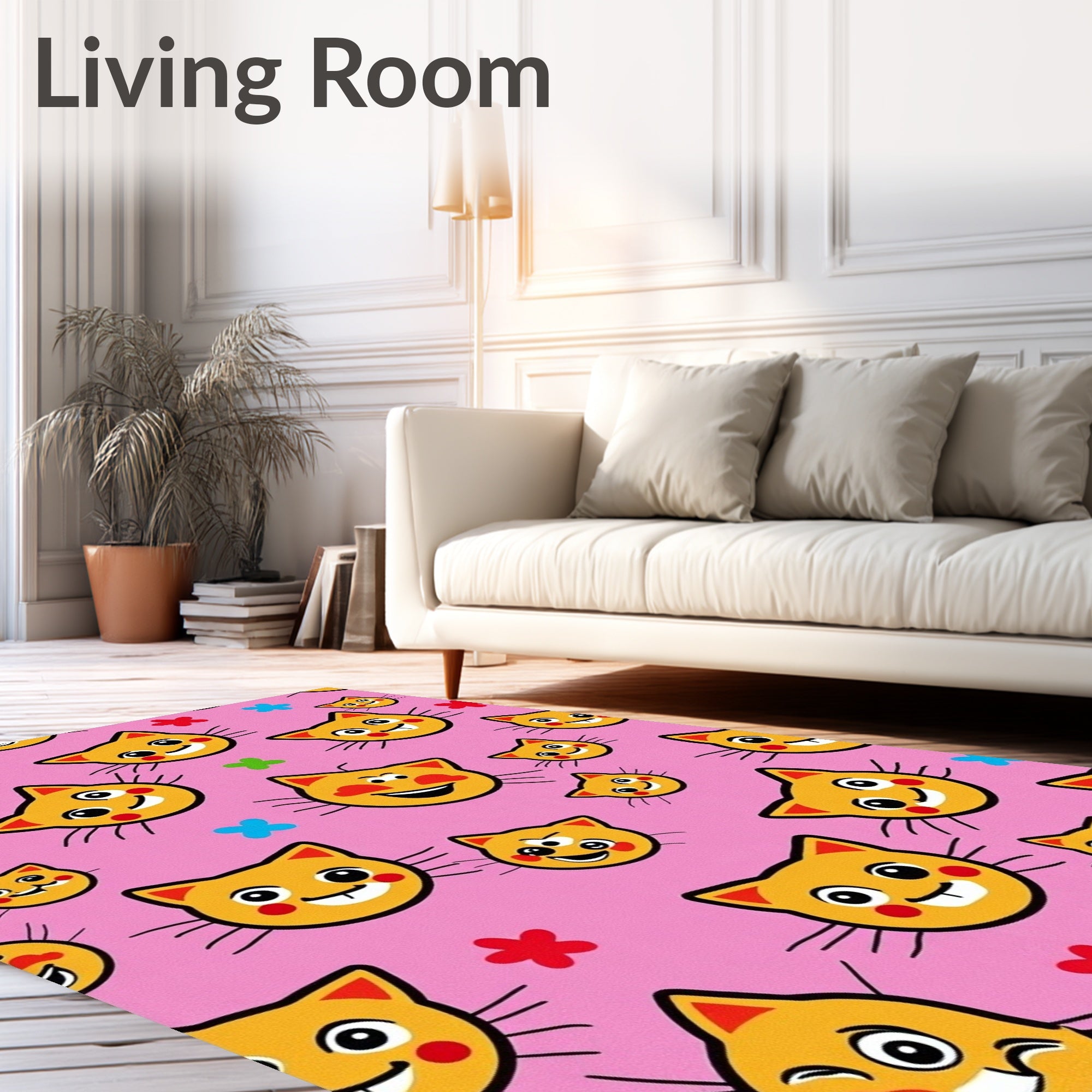 Ultra Soft Area Rug, Non Slip, Stain Resistant, Washable Area Rugs for Living Room, Bedroom, Humorous Battered Puss Flashing Decoration(Pink) Overview: