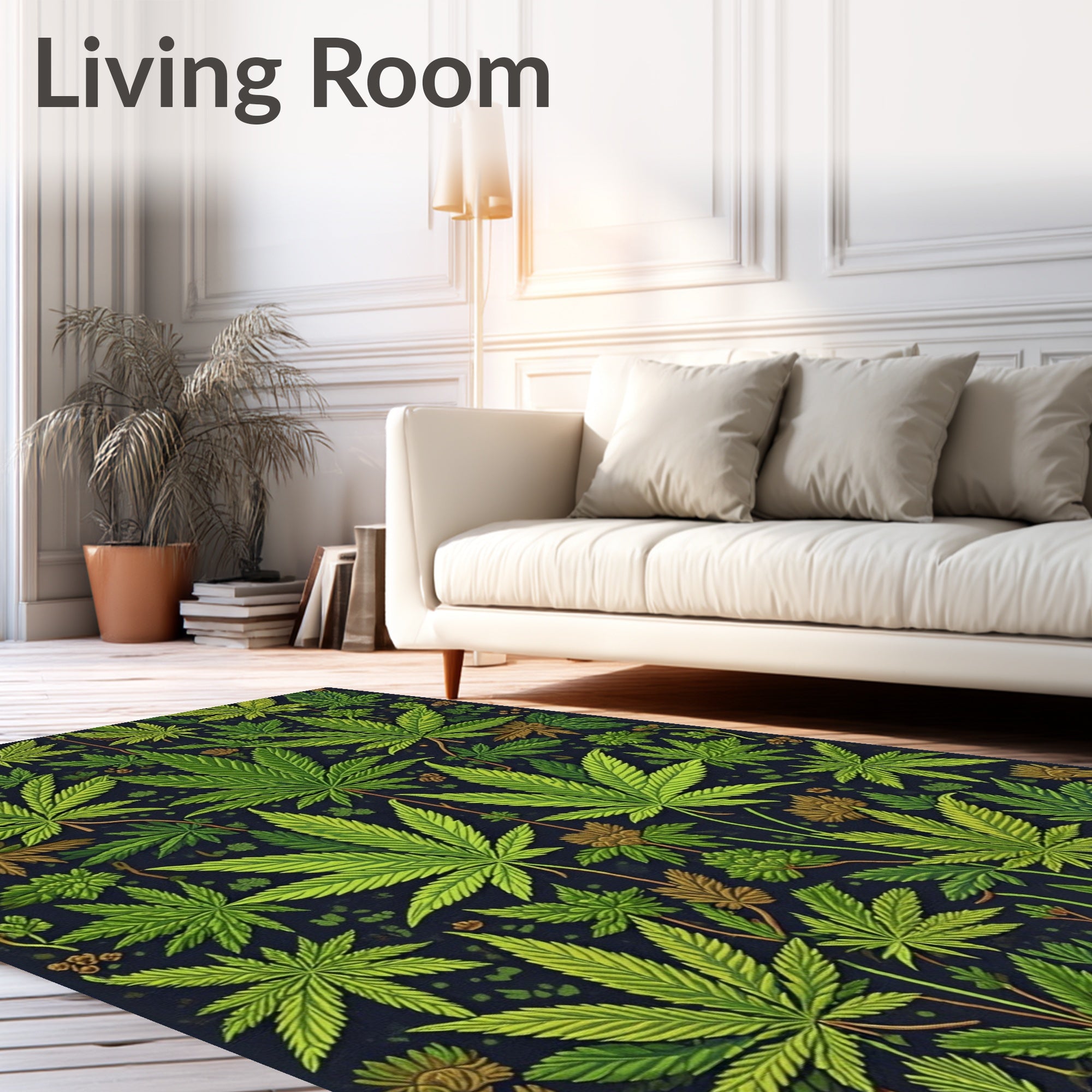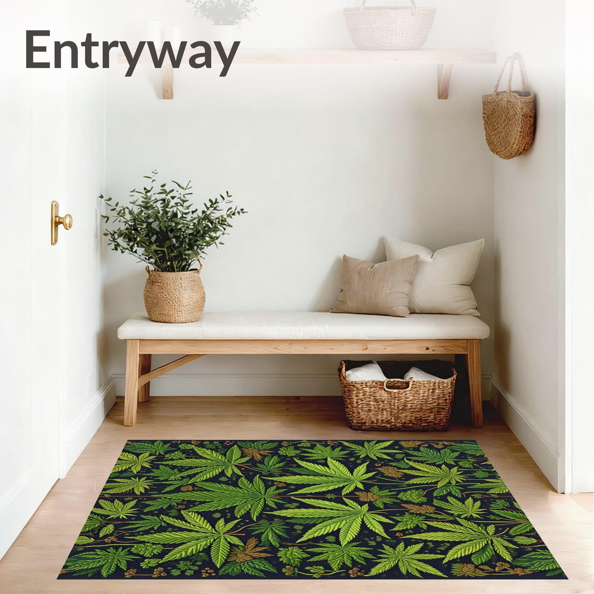 Flatwoven High Traffic Area Rug, Humorous Stoner Decor Area Rug Cannabis Leaf Design Carpet for Front Door, Non Slip, Stain Resistant, Washable Area Rugs for Living Room, Bedroom (Green) Overview: