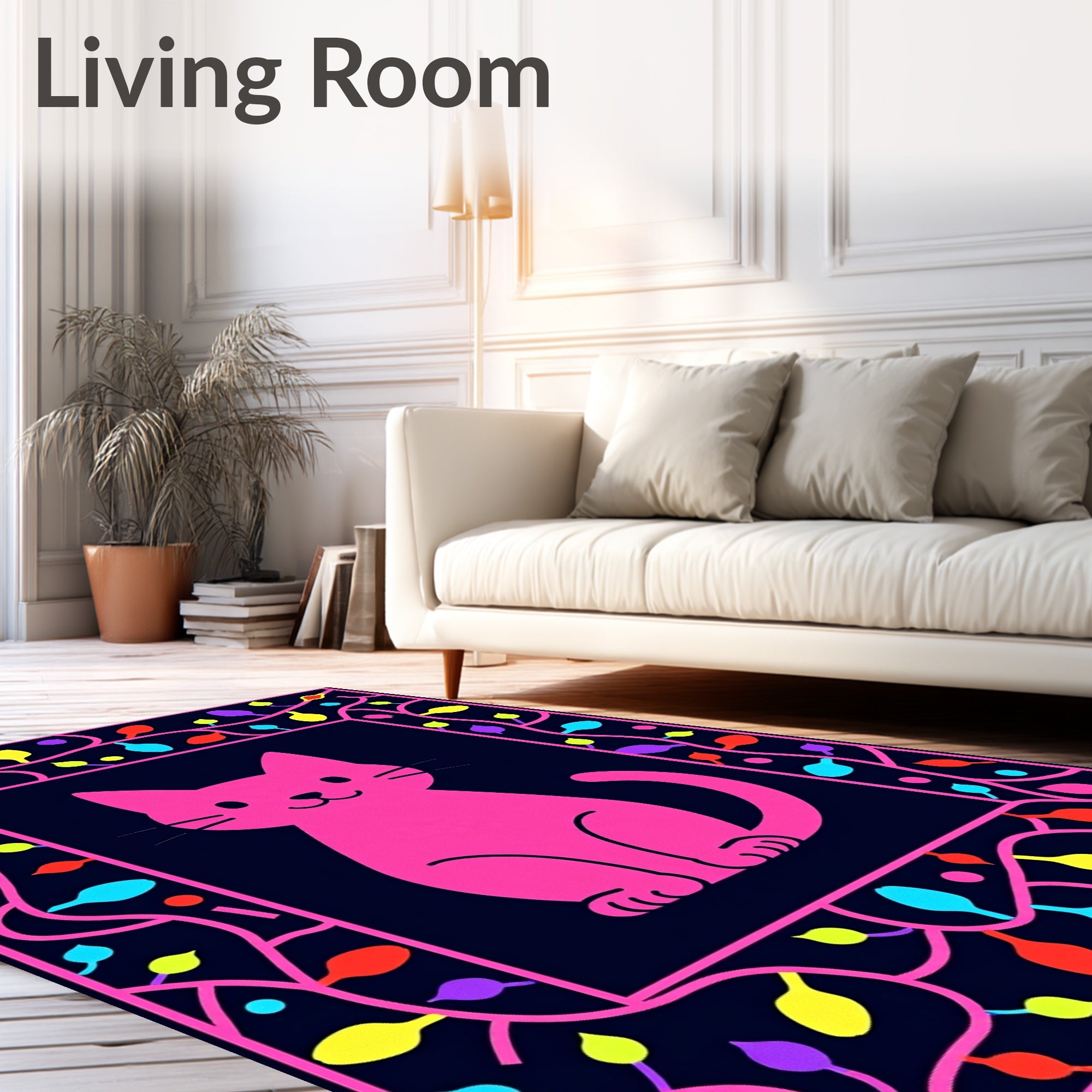 Ultra Soft Area Rug, Non Slip, Stain Resistant, Washable Area Rugs for Living Room, Bedroom, Illuminated Feline Holiday Whimsical Festive Novelty Gift(Pink) Overview: