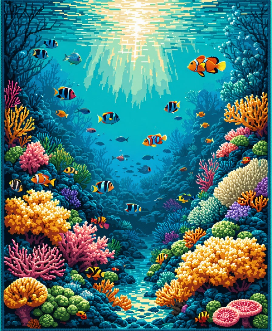 Illusion Ocean Vibrant Coral Reef(Blue)