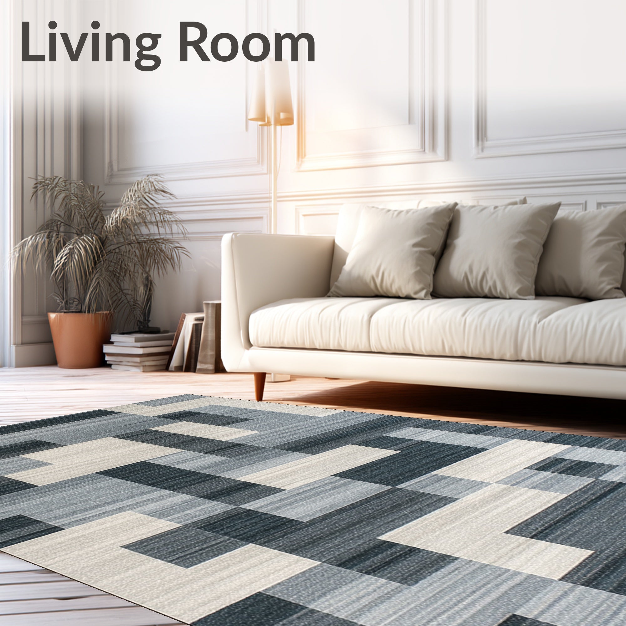 Ultra Soft Area Rug, Non Slip, Stain Resistant, Washable Area Rugs for Living Room, Bedroom, Industrial Chic Runner Rug Durable Washable Carpet with Geometric Pattern(Gray) Overview: