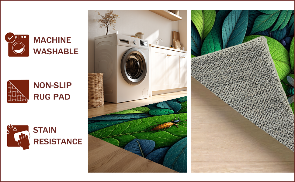Ultra Soft Area Rug, Non Slip, Stain Resistant, Washable Area Rugs for Living Room, Bedroom, Insect Print Fantasy(Green) Overview:
