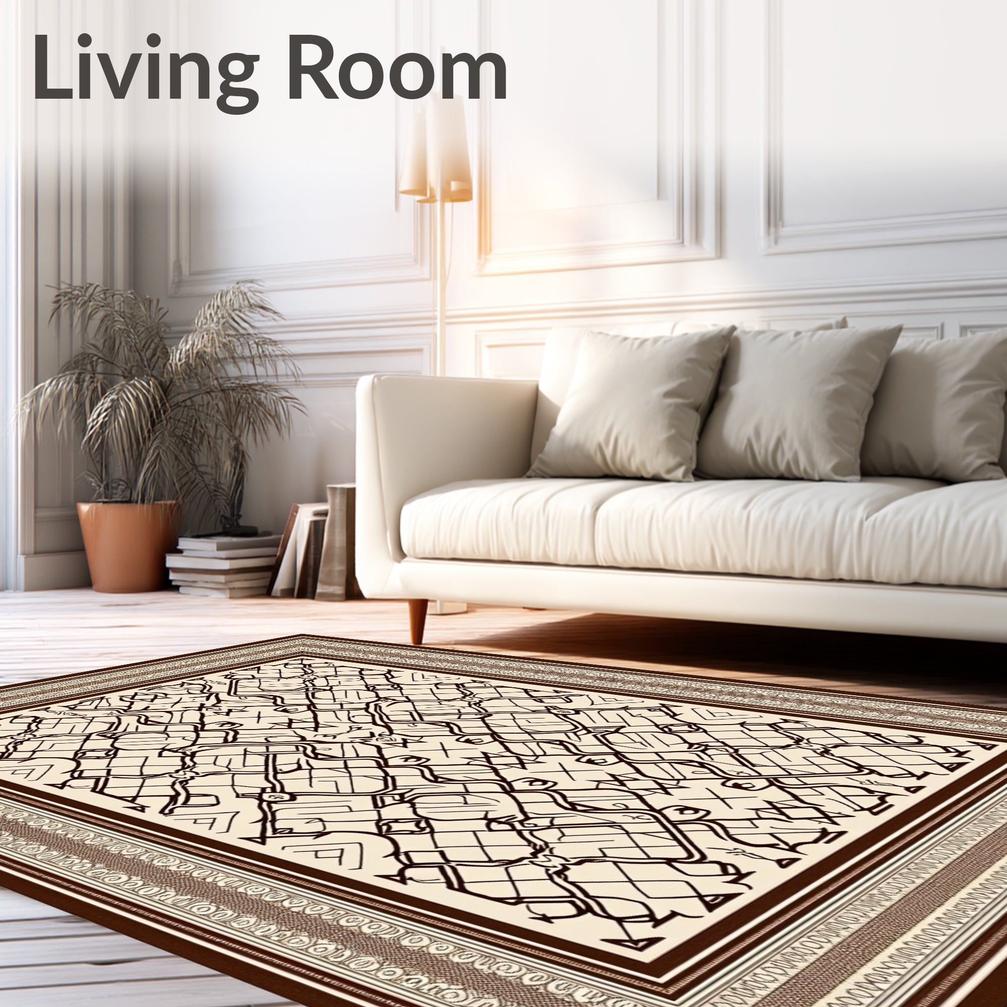 Ultra Soft Area Rug, Non Slip, Stain Resistant, Washable Area Rugs for Living Room, Bedroom, Inspired Lattice with Trellis Accents(Brown) Overview: