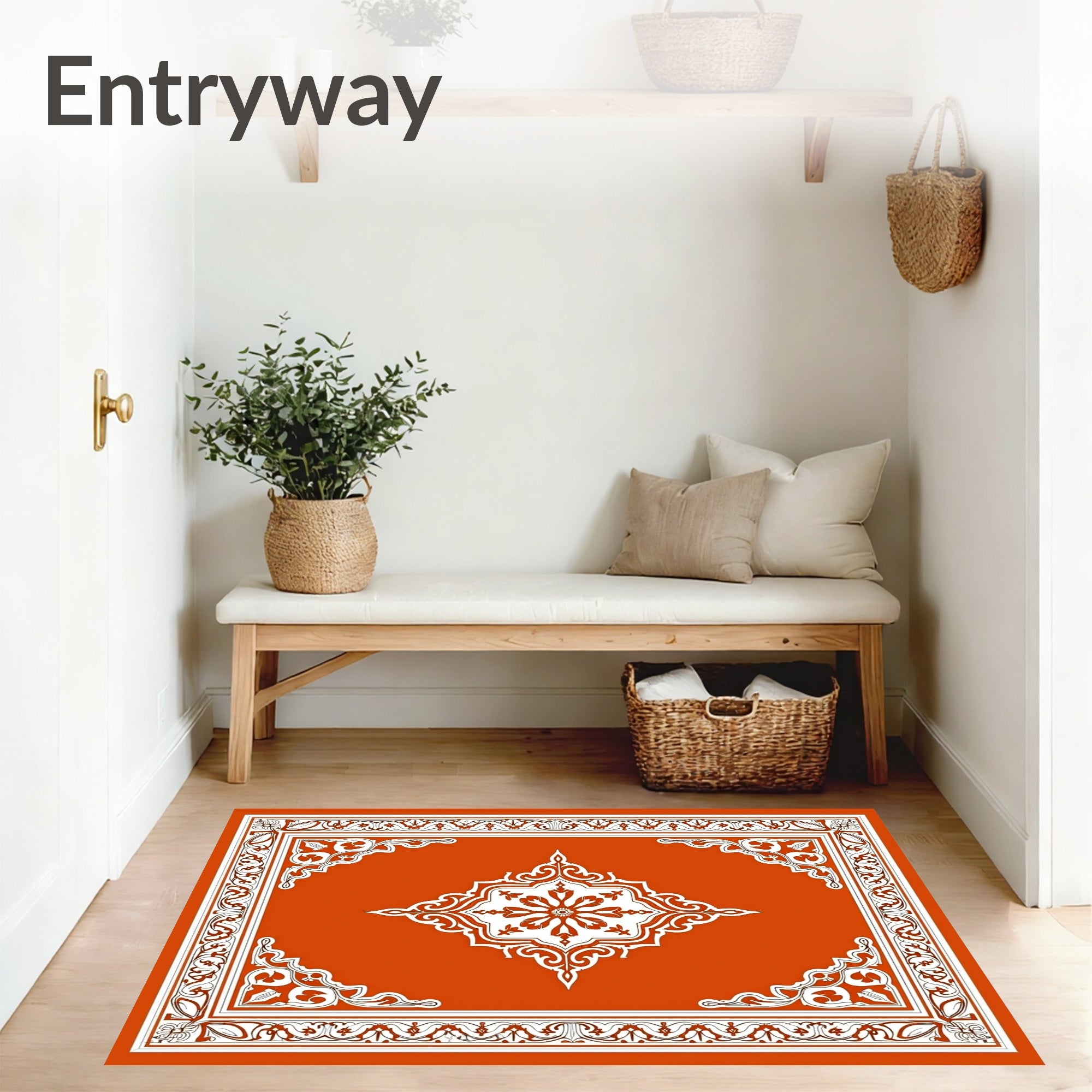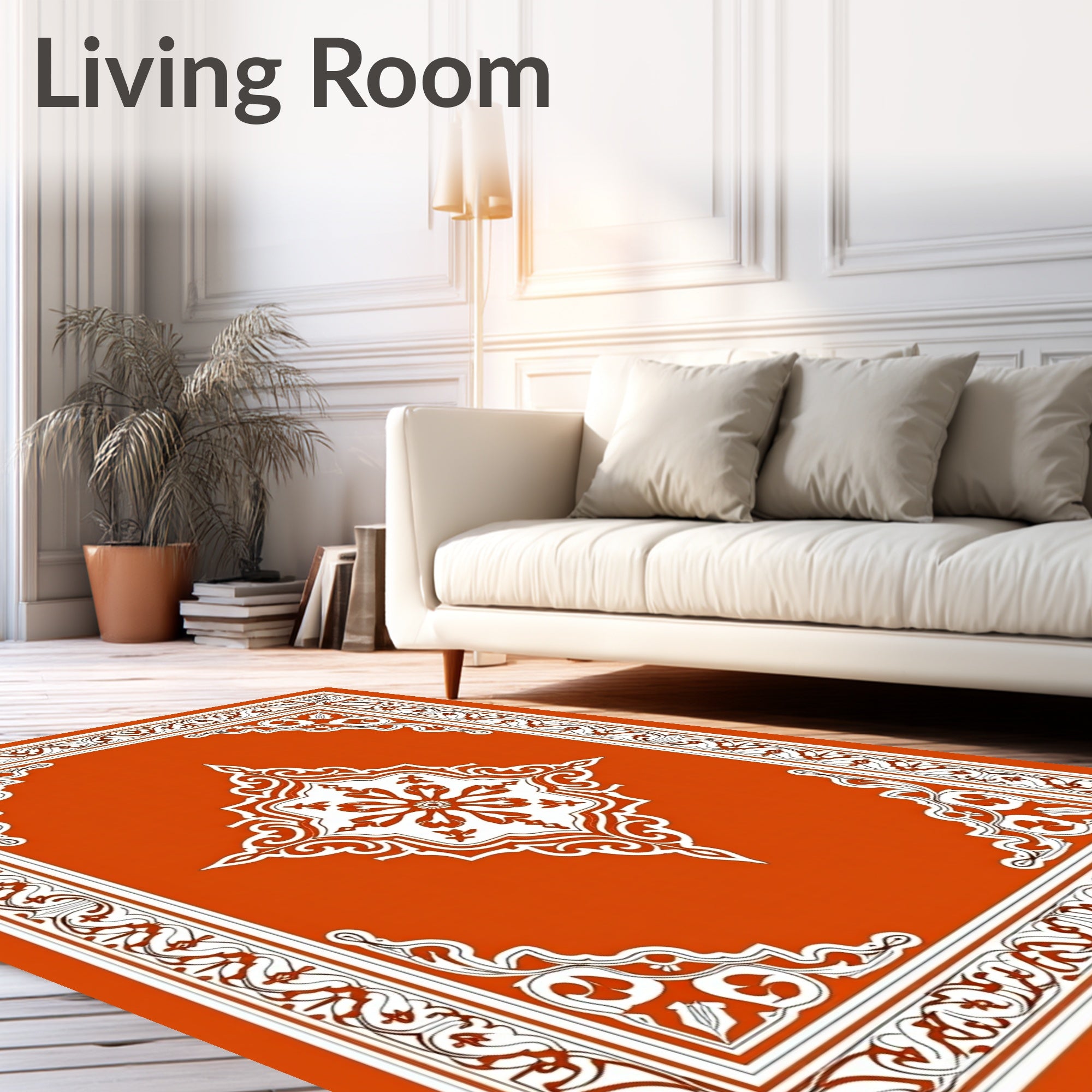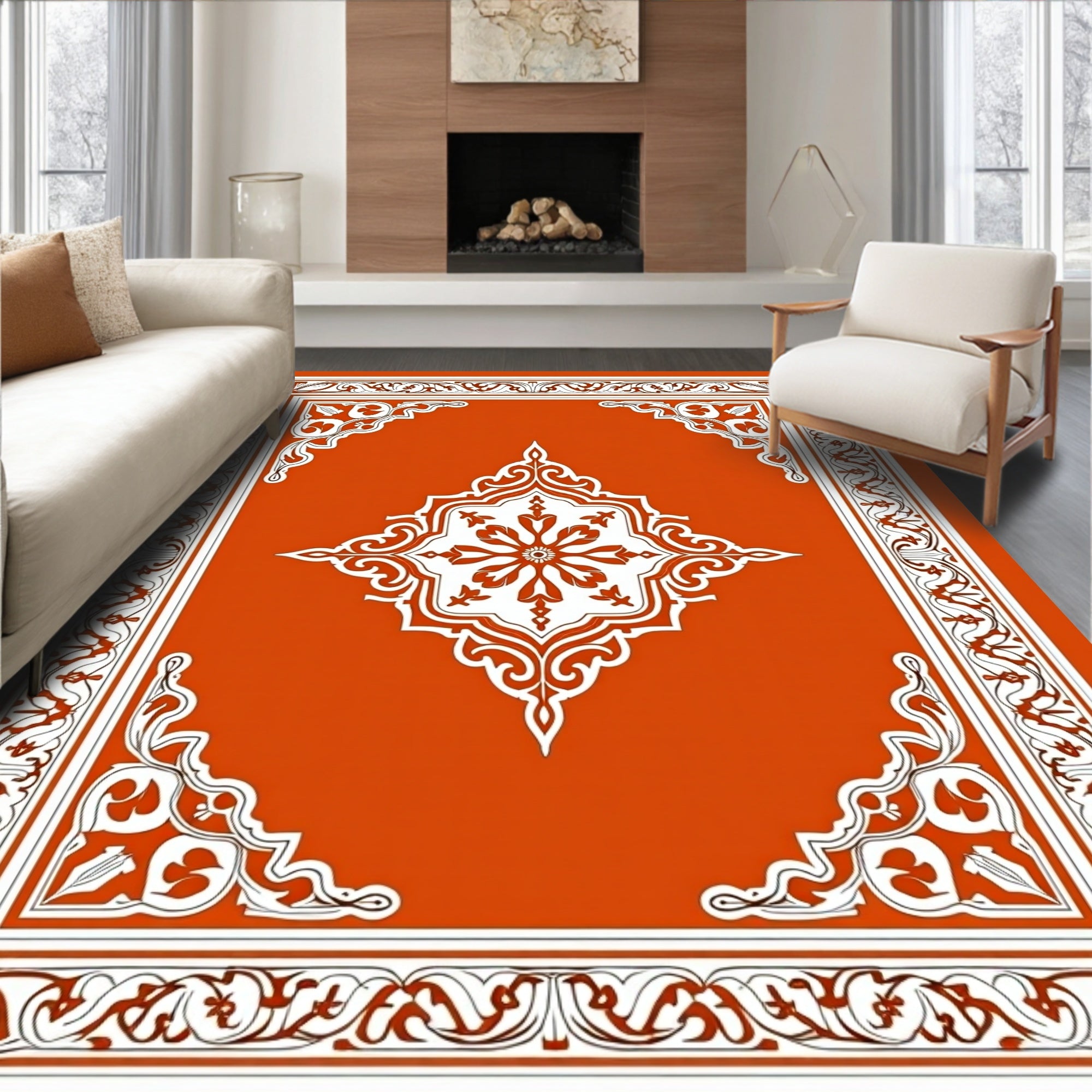 Ultra Soft Area Rug, Non Slip, Stain Resistant, Washable Area Rugs for Living Room, Bedroom, Inspired Medallion with Intricate Border Accents(Orange) Overview: