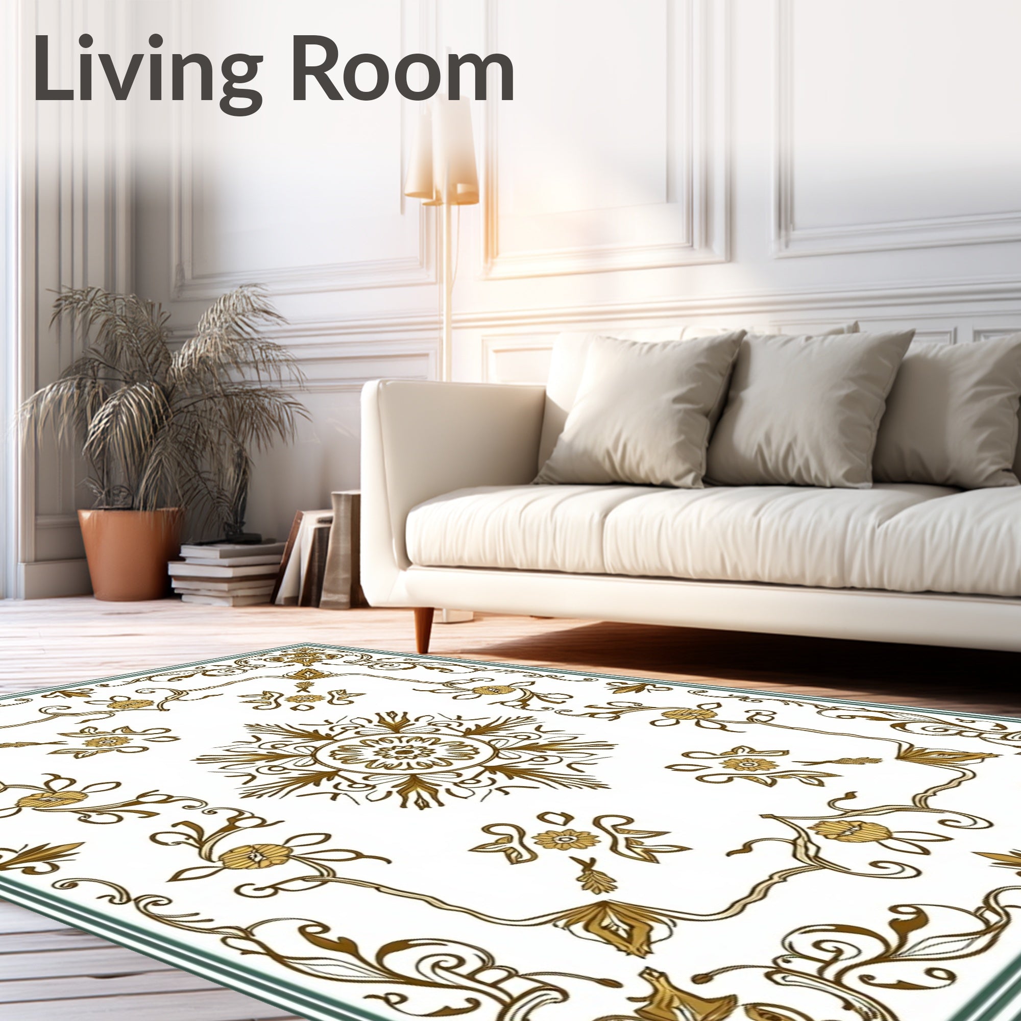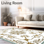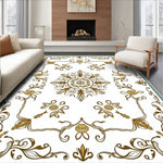 Ultra Soft Area Rug, Non Slip, Stain Resistant, Washable Area Rugs for Living Room, Bedroom, Inspired Vine and Flower with Delicate Lace Details(Gold) Overview: