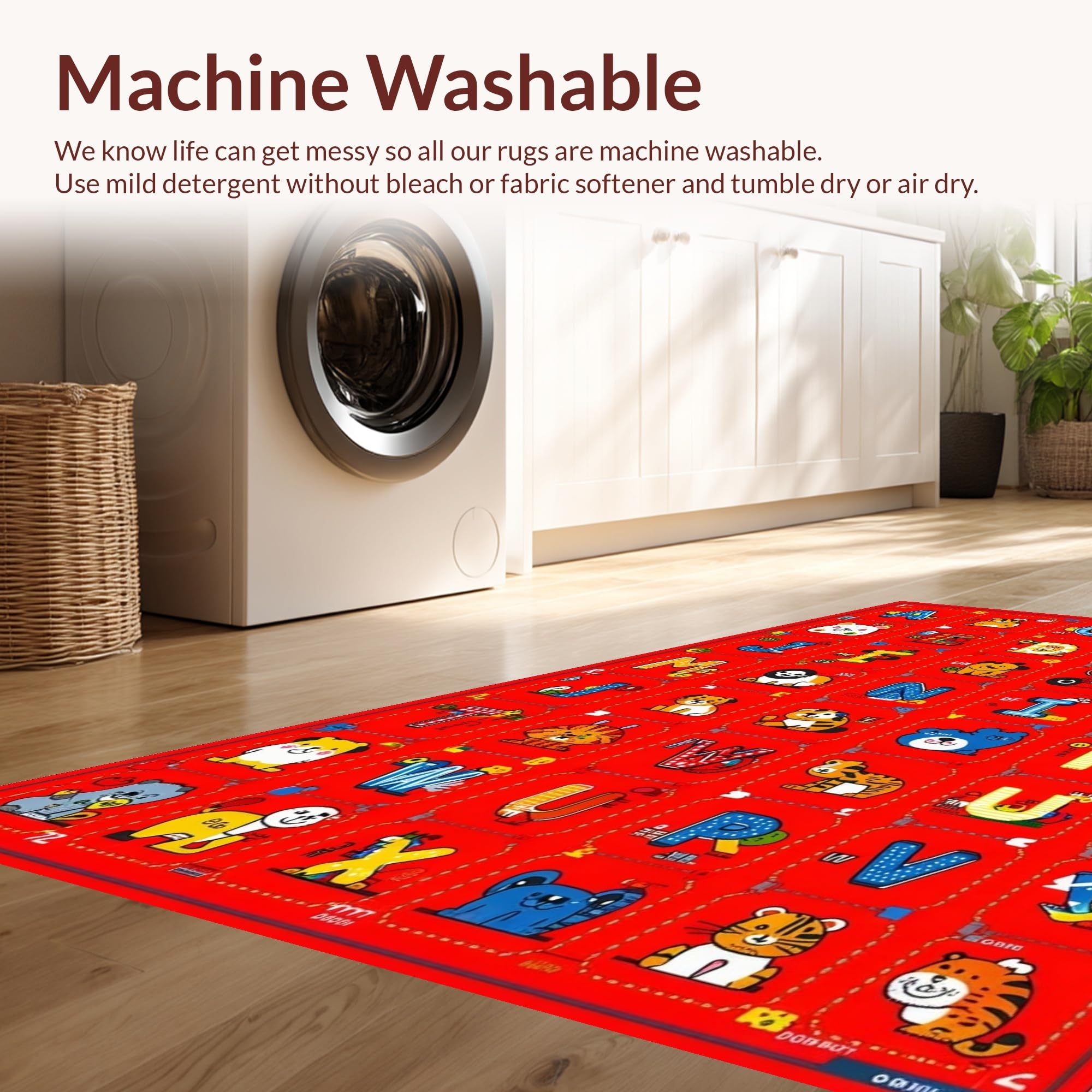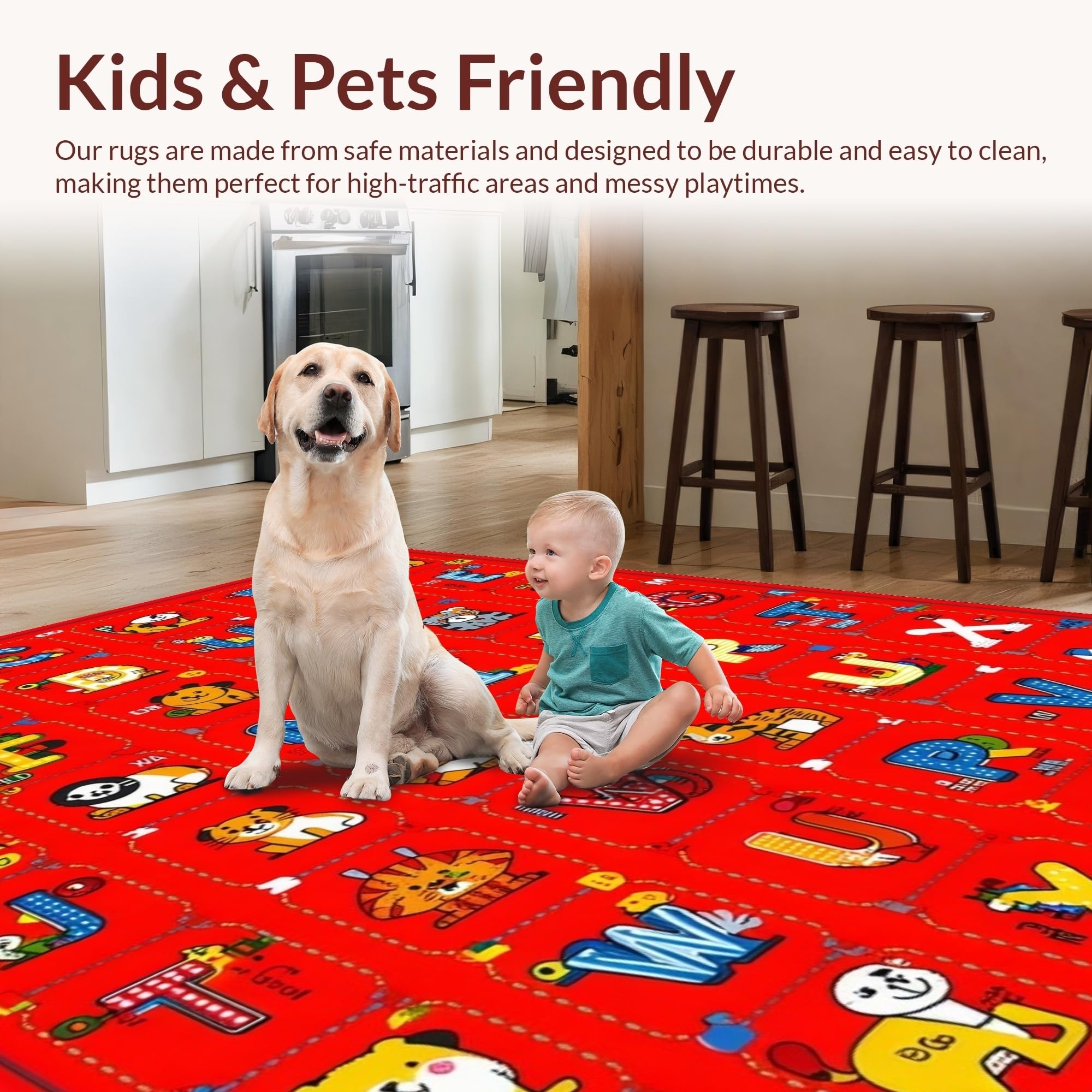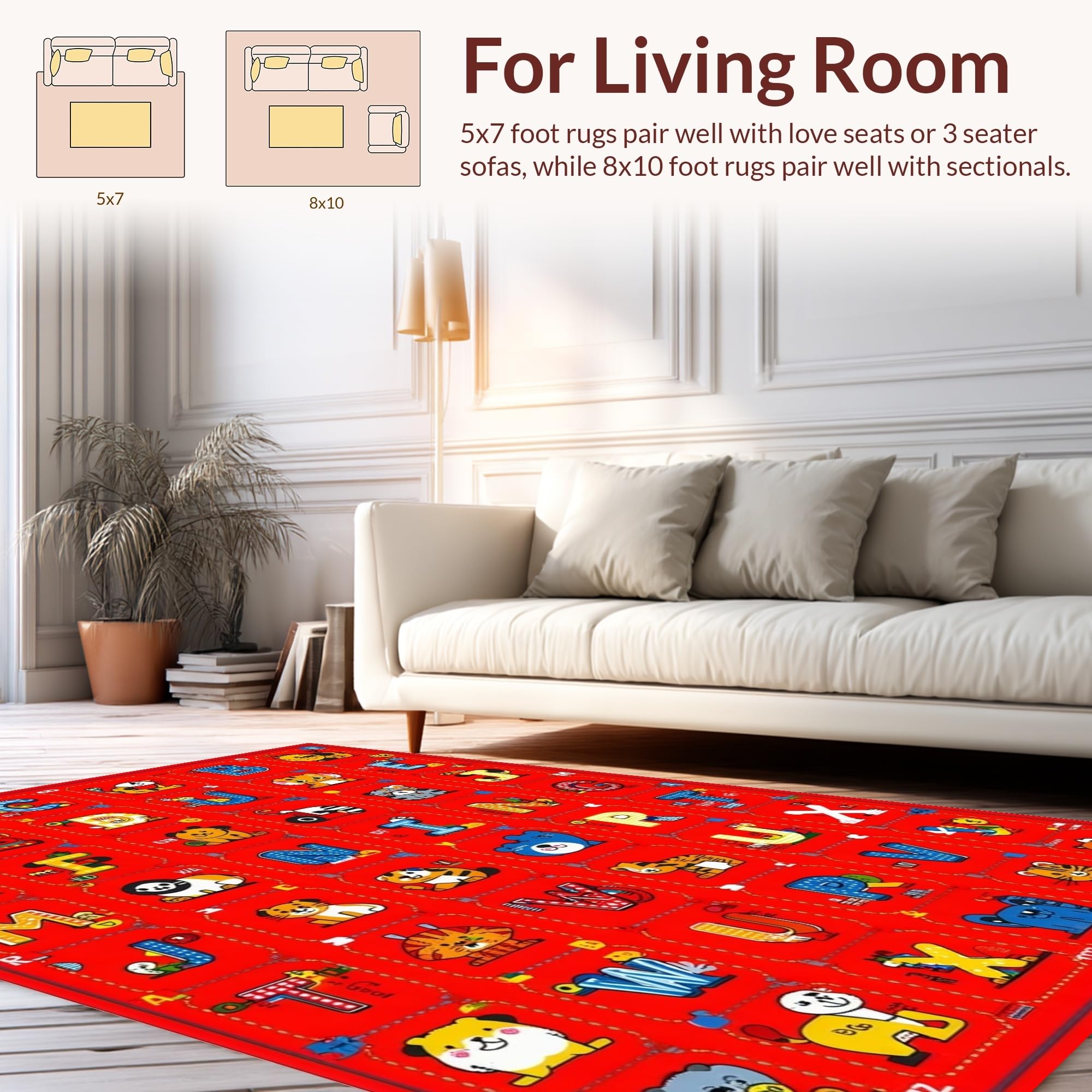 Ultra Soft Area Rug, Non Slip, Stain Resistant, Washable Area Rugs for Living Room, Bedroom, Interactive Colorful Animal Scene(Red) Overview: