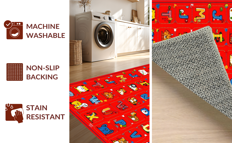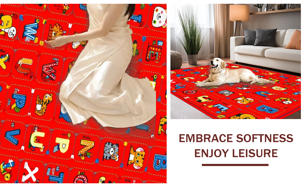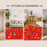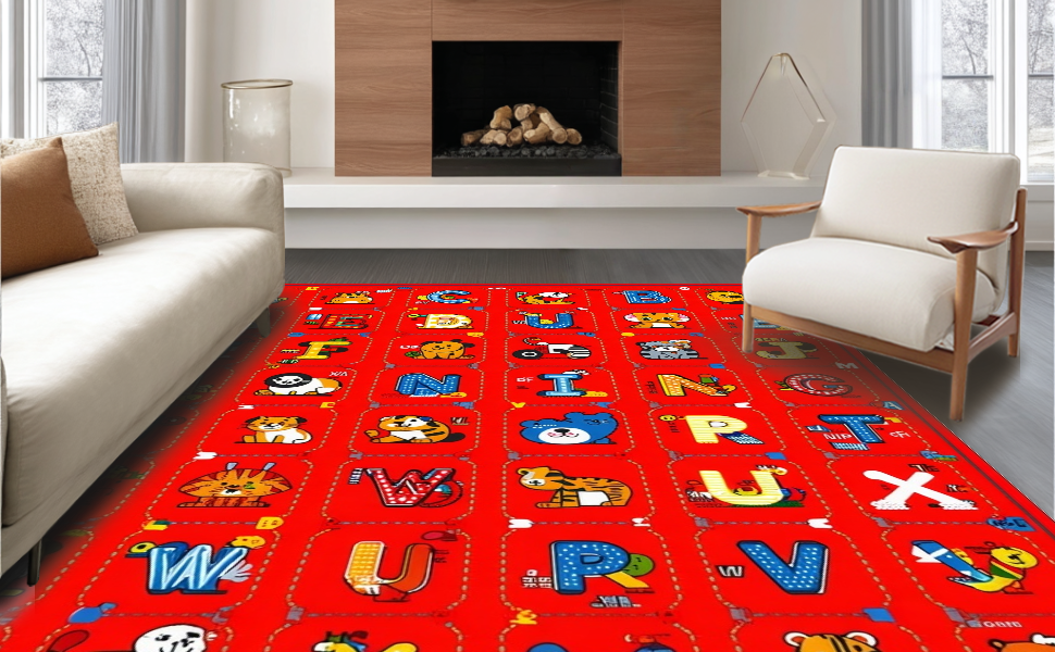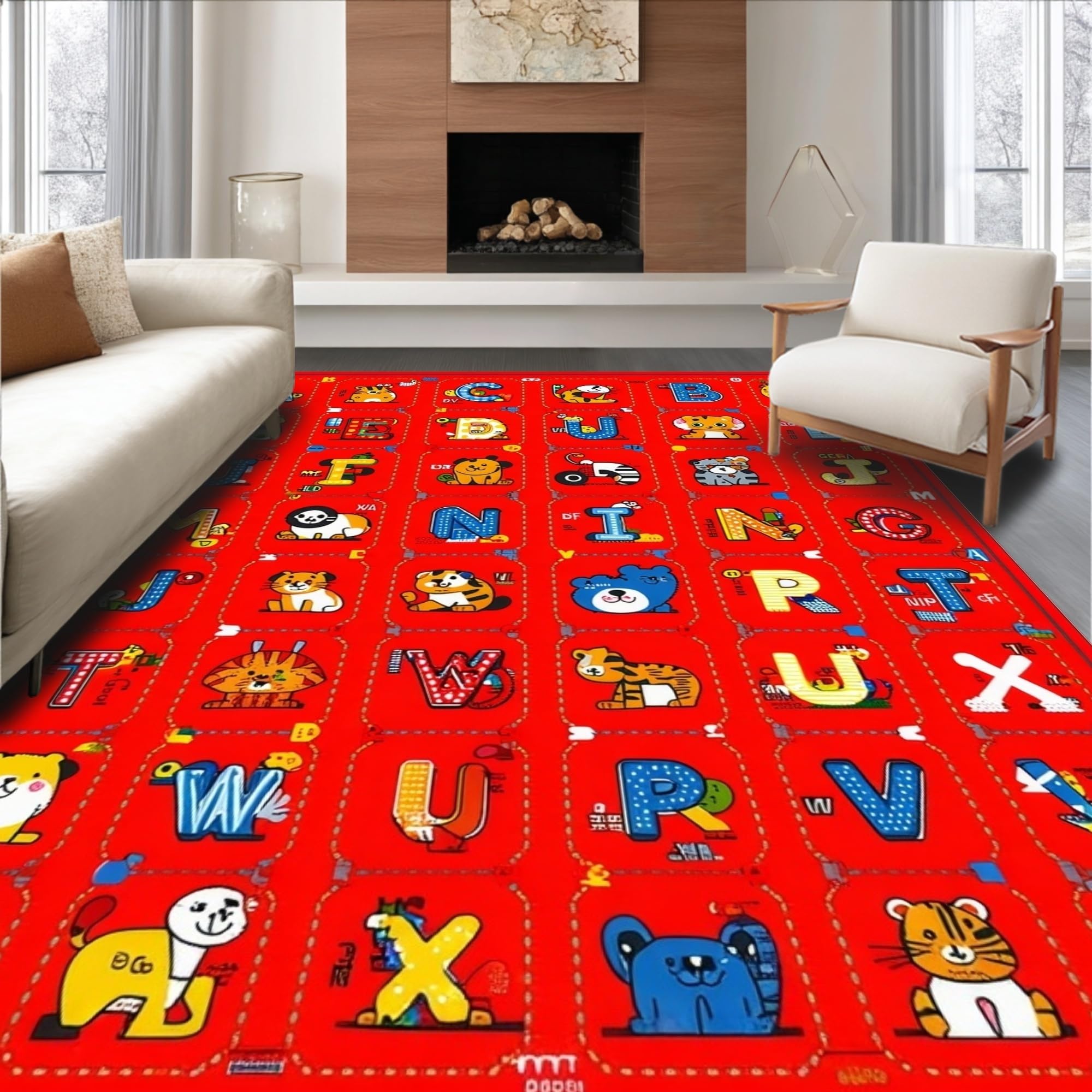 Ultra Soft Area Rug, Non Slip, Stain Resistant, Washable Area Rugs for Living Room, Bedroom, Interactive Colorful Animal Scene(Red) Overview: