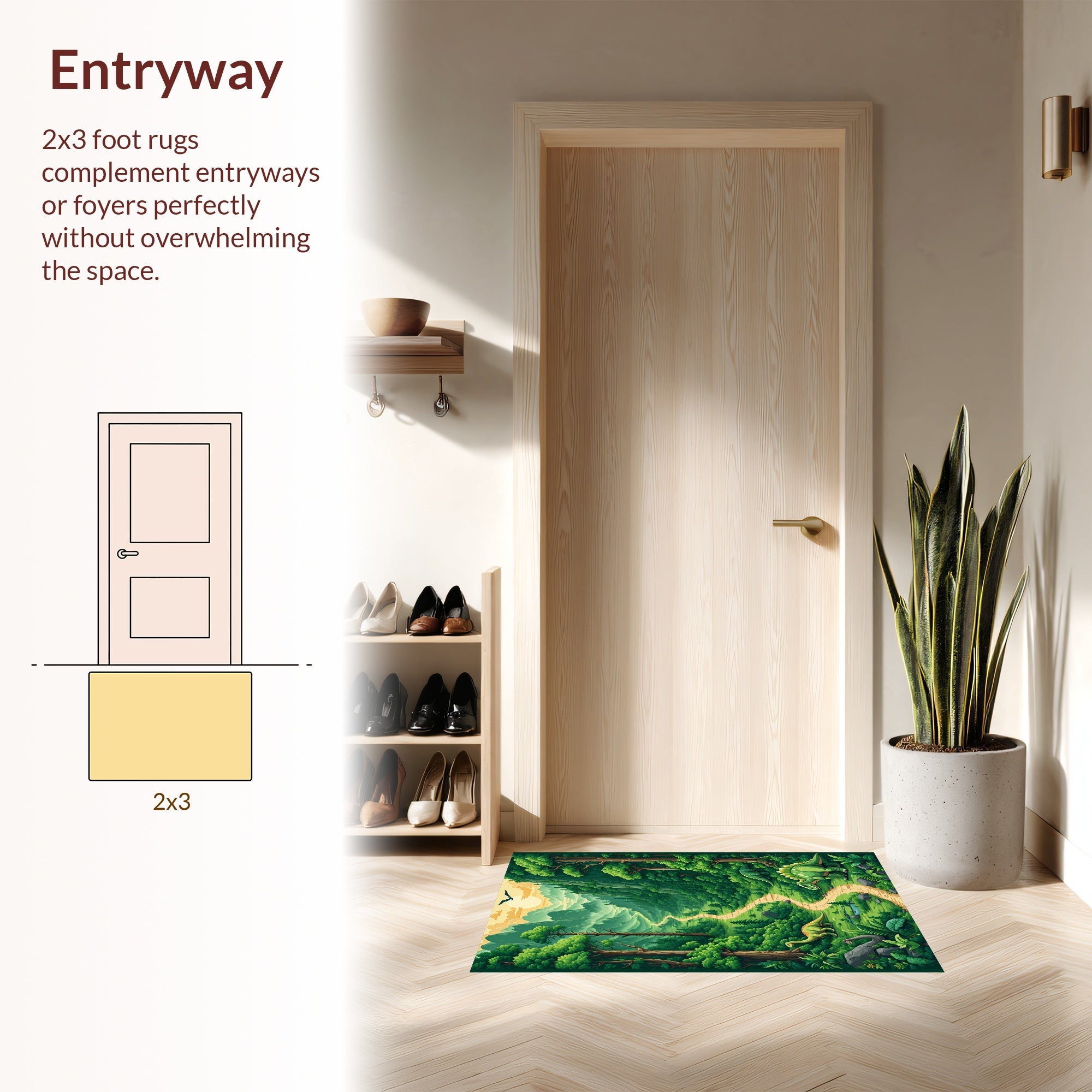 Flatwoven High Traffic Area Rug, Interactive Dino Terrain Play Space, Non Slip, Stain Resistant, Washable Area Rugs for Living Room, Bedroom (Green) Overview: