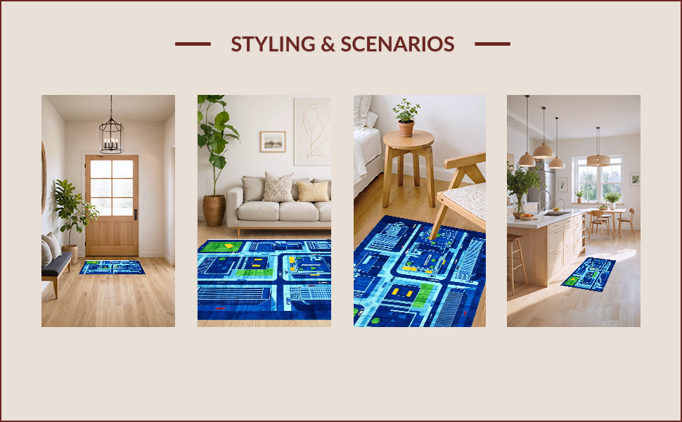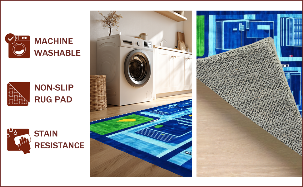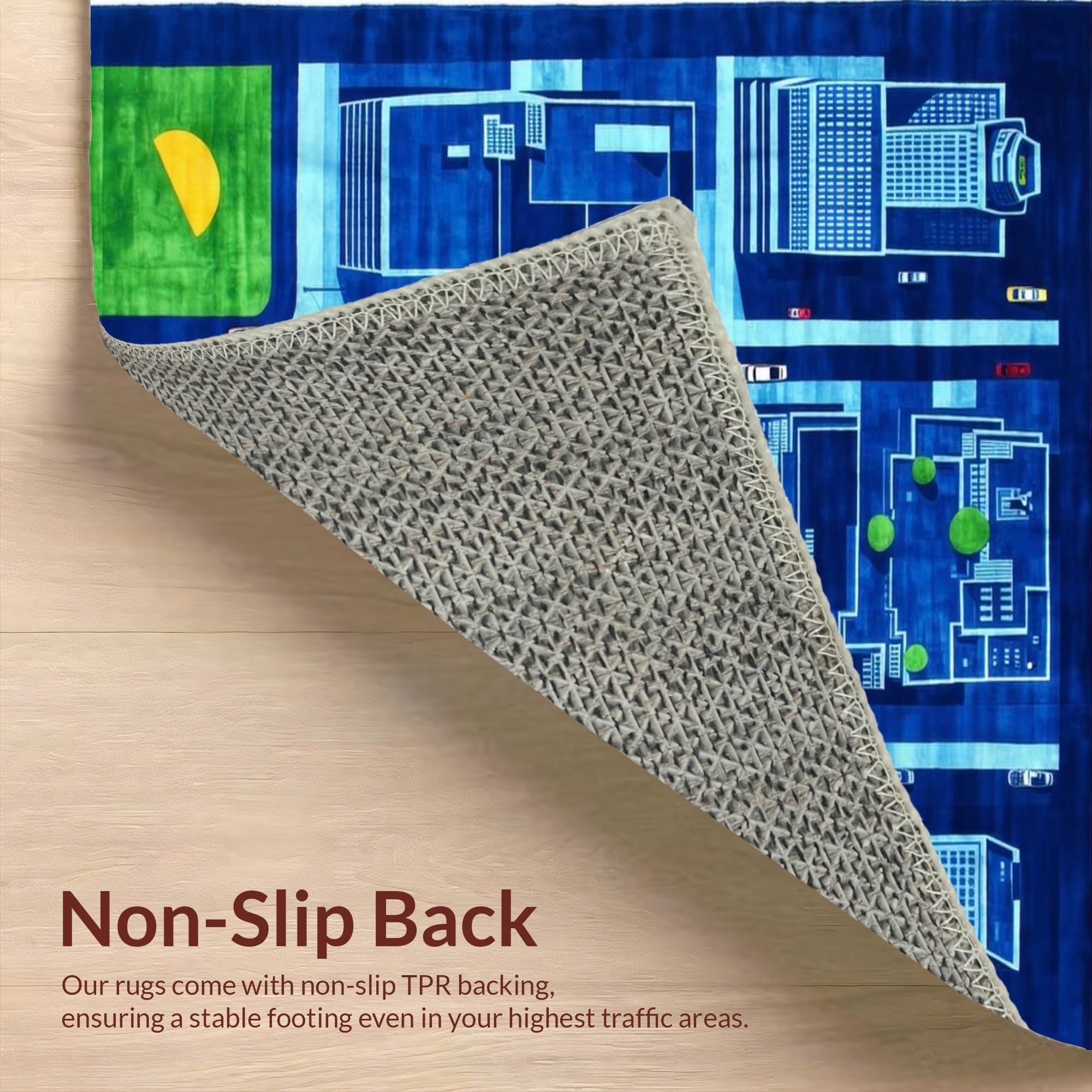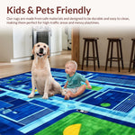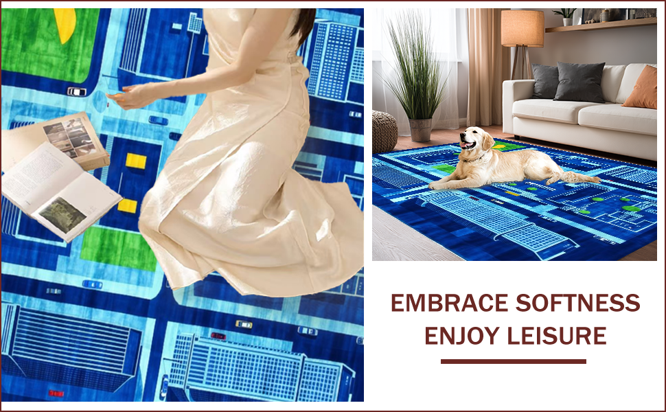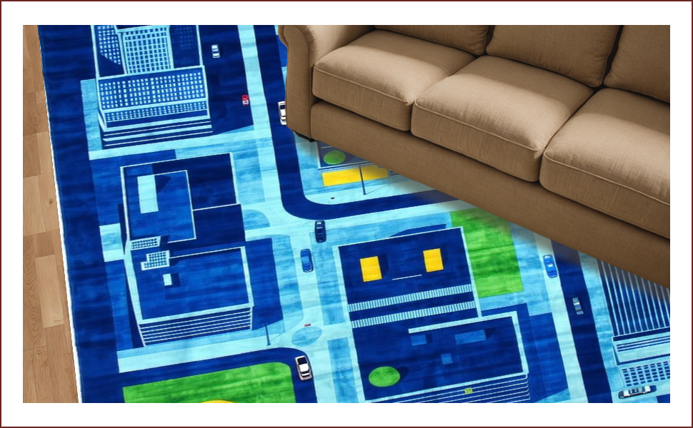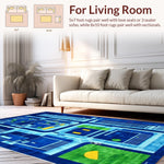 Ultra Soft Area Rug, Non Slip, Stain Resistant, Washable Area Rugs for Living Room, Bedroom, Interactive Educational Cityscape Design(Blue) Overview: