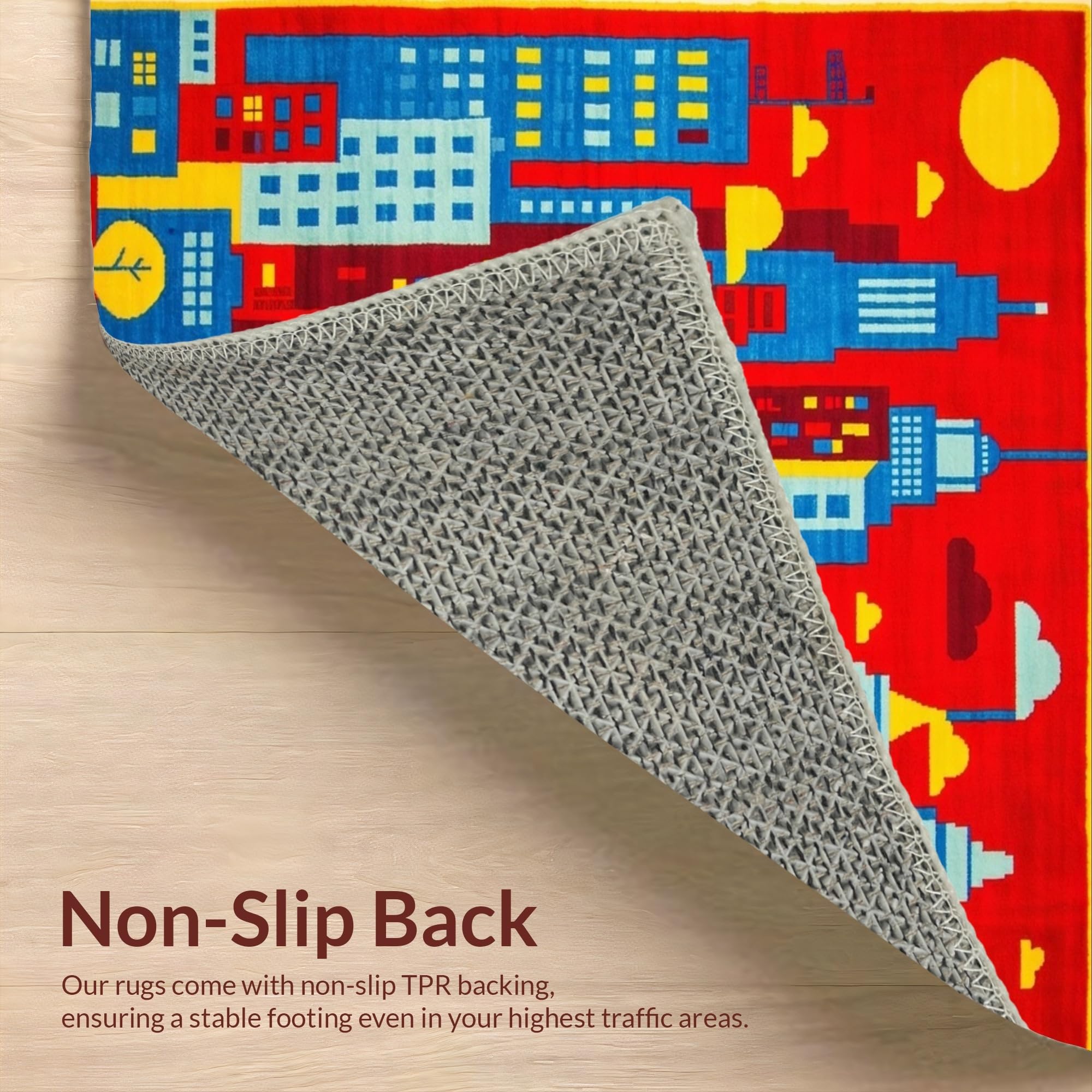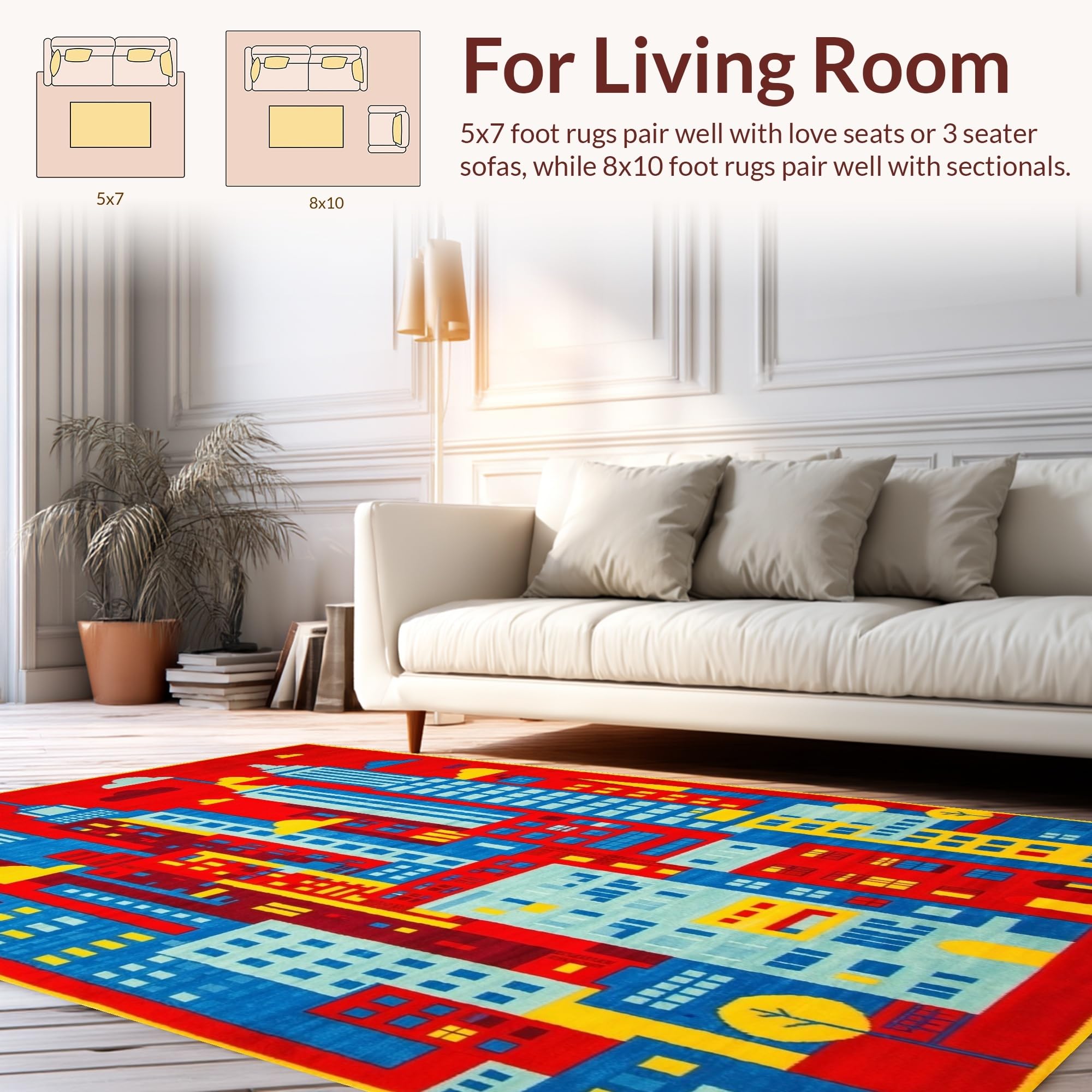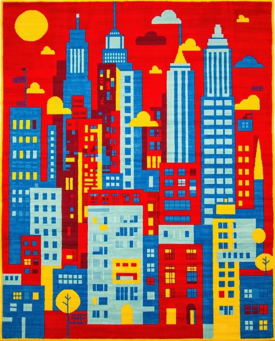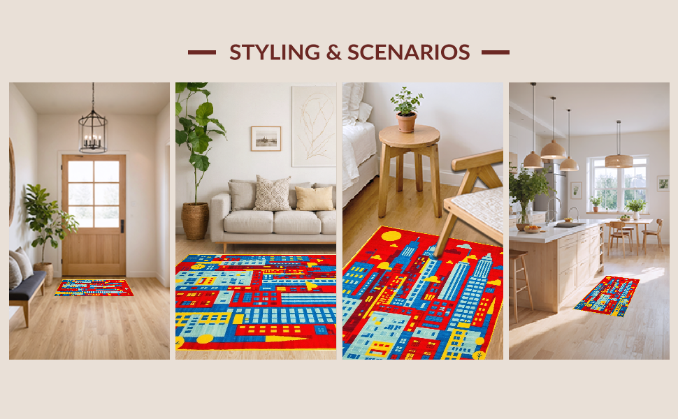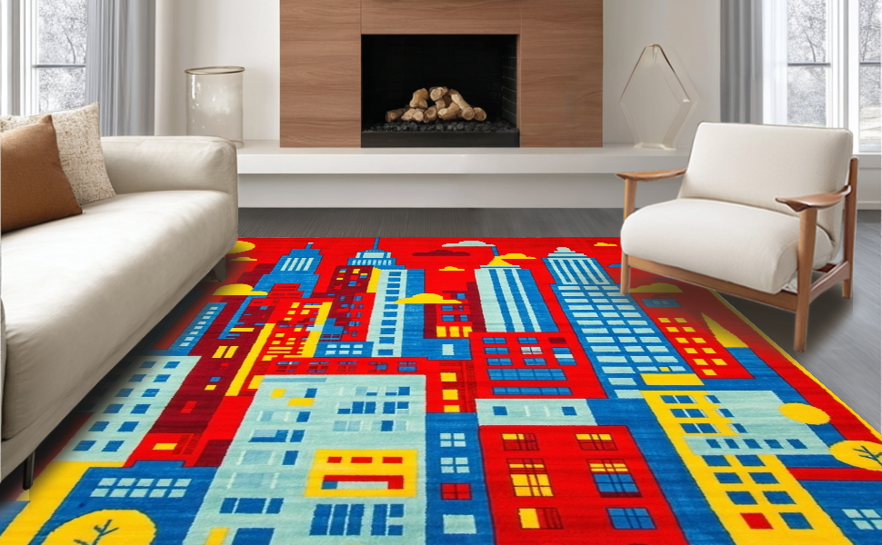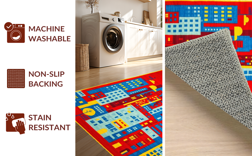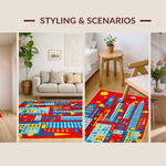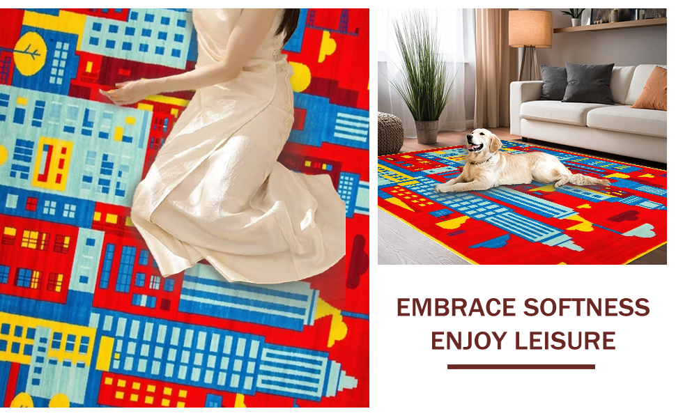 Ultra Soft Area Rug, Non Slip, Stain Resistant, Washable Area Rugs for Living Room, Bedroom, Interactive Playful Neighborhood Layout(Red) Overview: