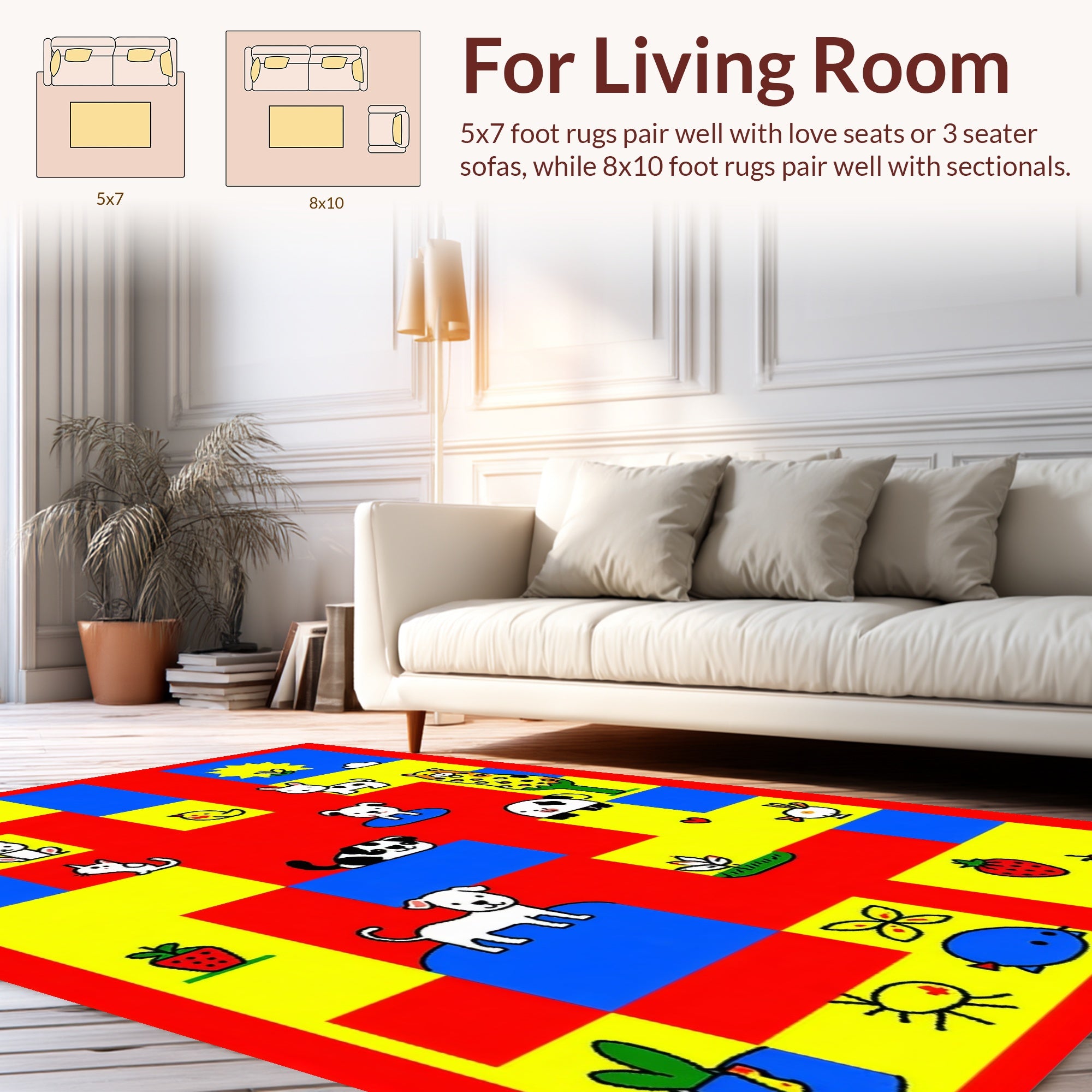 Flatwoven High Traffic Area Rug, Interactive Seasonal Learning Design, Non Slip, Stain Resistant, Washable Area Rugs for Living Room, Bedroom (Yellow) Overview: