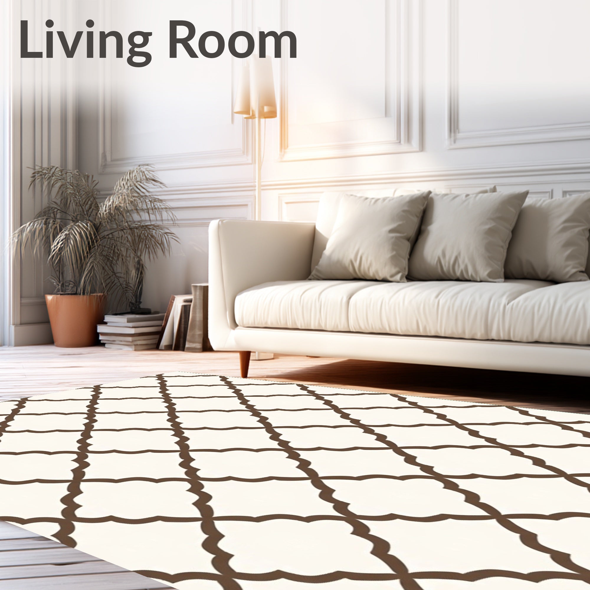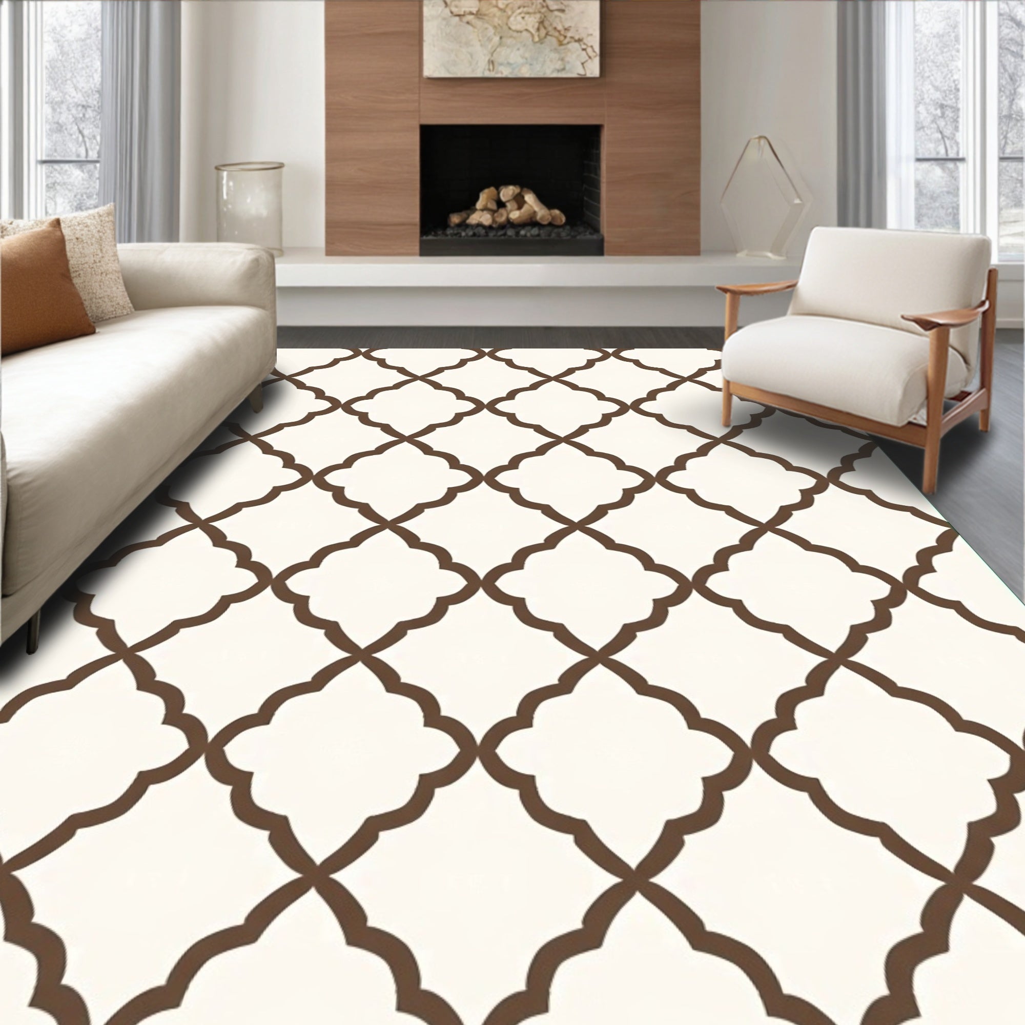 Flatwoven High Traffic Area Rug, Interlacing Trellis Lattice Hexagon Maze, Non Slip, Stain Resistant, Washable Area Rugs for Living Room, Bedroom (Brown) Overview: