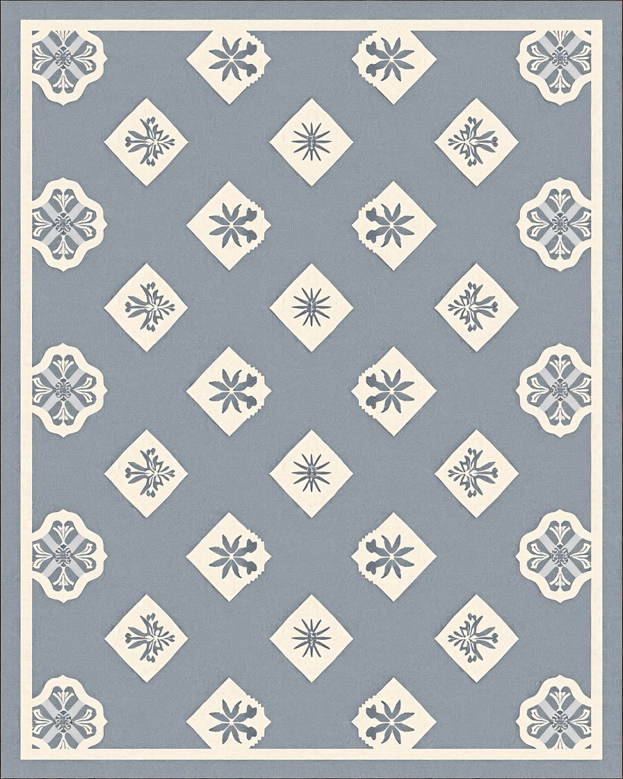 Interlocking Medallion with Subtle Floral Accents(Blue)