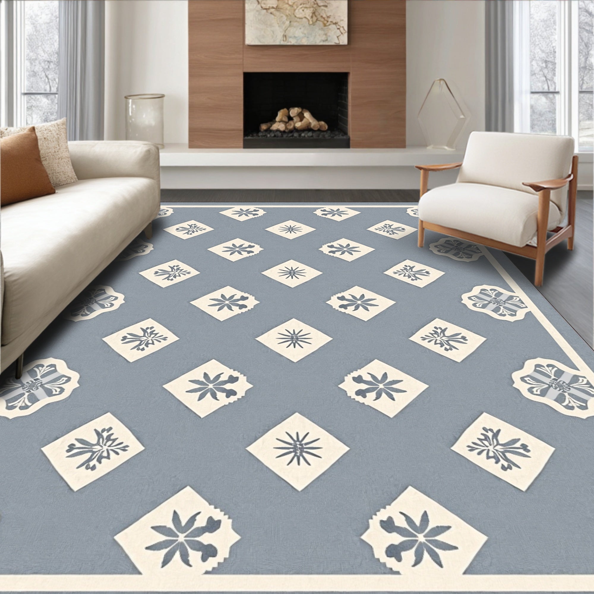 Flatwoven High Traffic Area Rug, Interlocking Medallion with Subtle Floral Accents, Non Slip, Stain Resistant, Washable Area Rugs for Living Room, Bedroom (Blue) Overview: