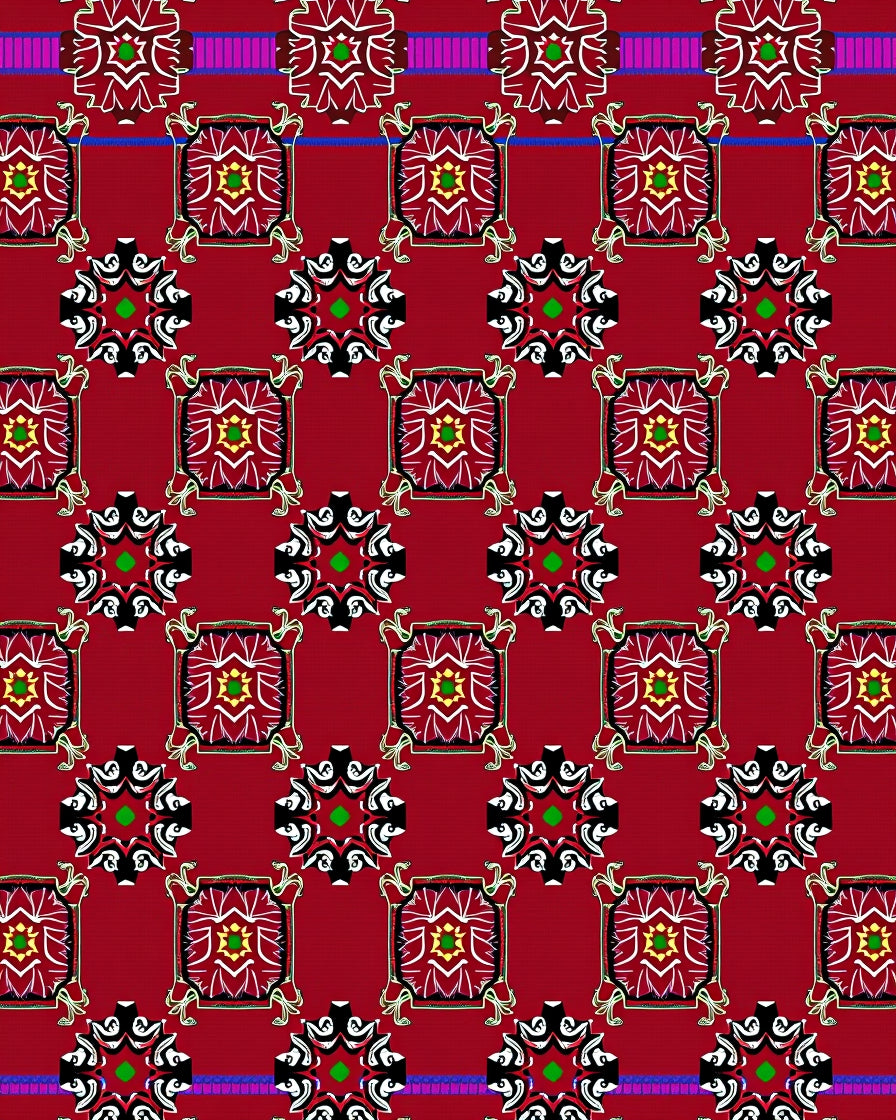 Interlocking Mosaic with Festive Starburst Accents(Red)