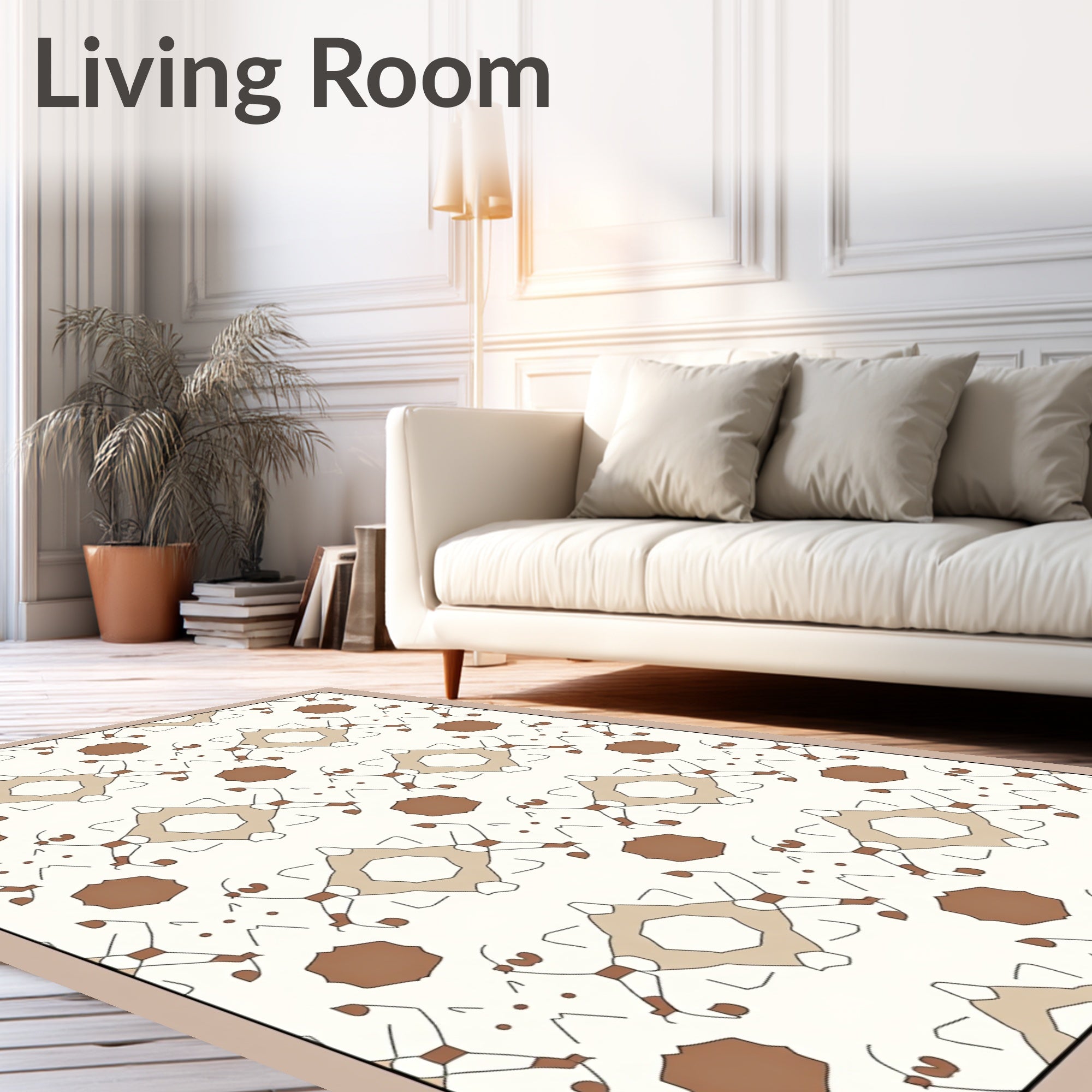 Flatwoven High Traffic Area Rug, Interlocking Network with Minimalist Dot Embellishments, Non Slip, Stain Resistant, Washable Area Rugs for Living Room, Bedroom (Brown) Overview: