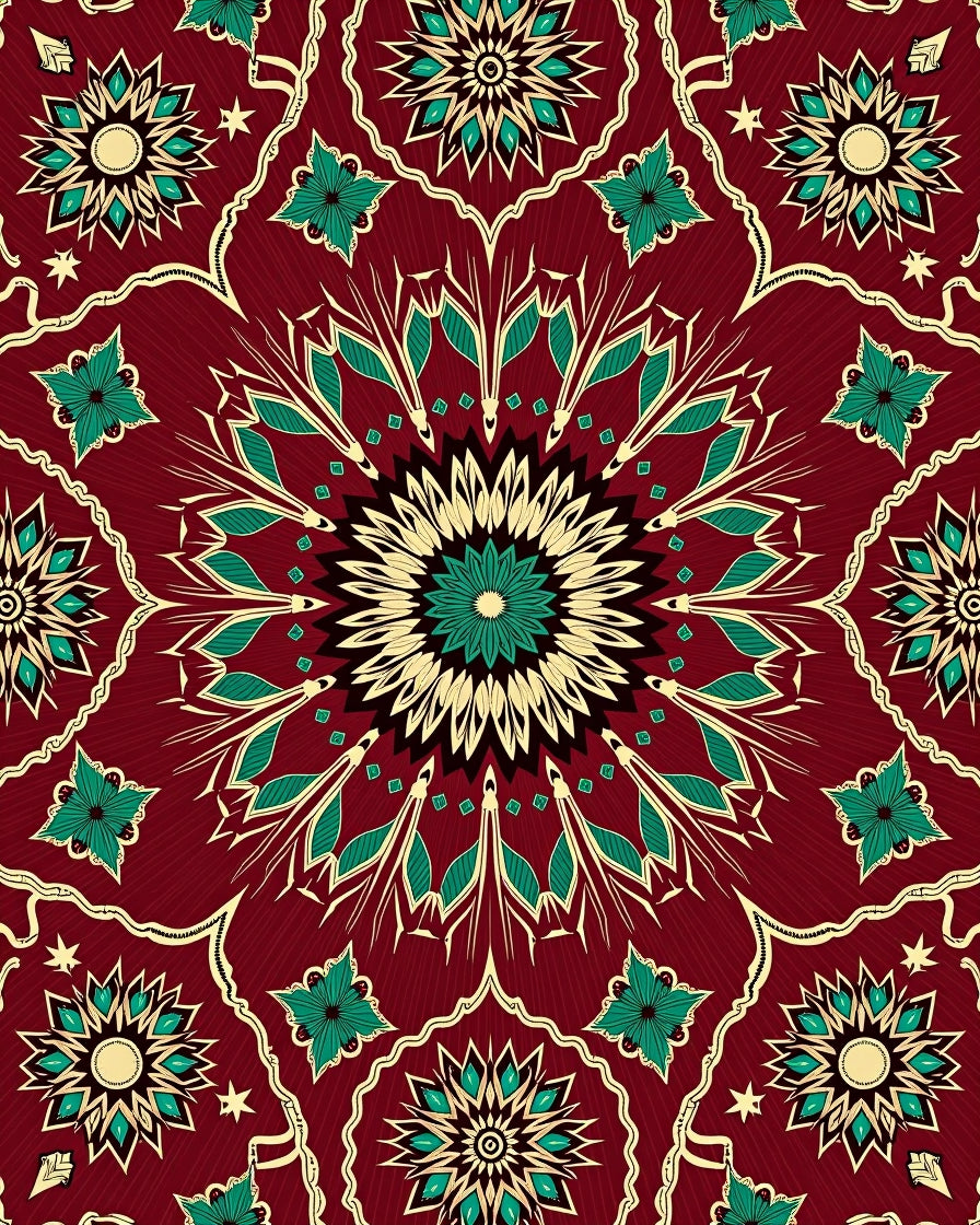 Interlocking Starburst with Festive Symmetry and Elegant Accents(Maroon)