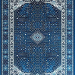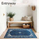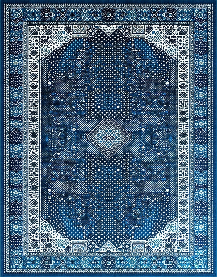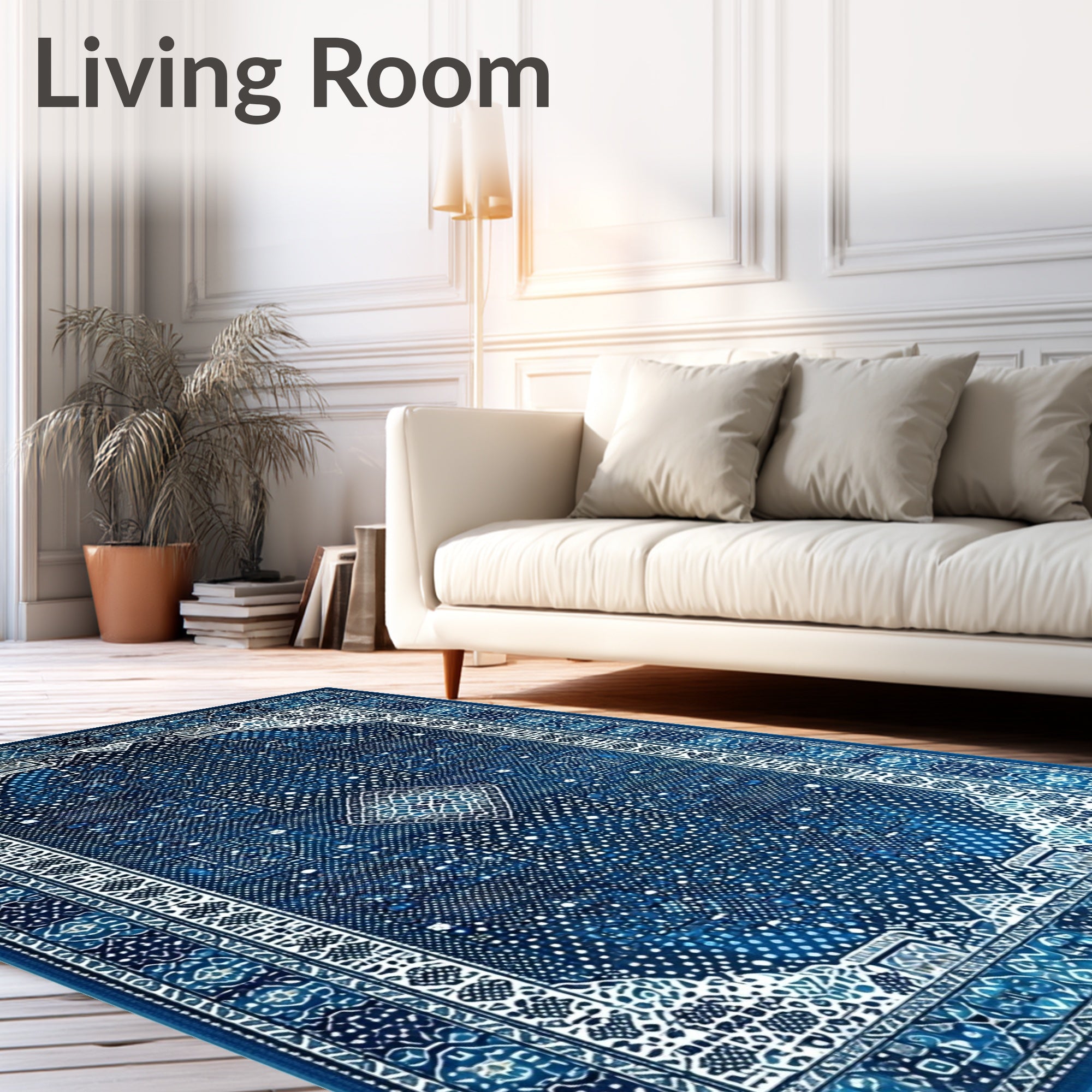 Ultra Soft Area Rug, Non Slip, Stain Resistant, Washable Area Rugs for Living Room, Bedroom, Intricate Abstract Spotted Area with Geometric Blue and Silver Design(Blue) Overview:
