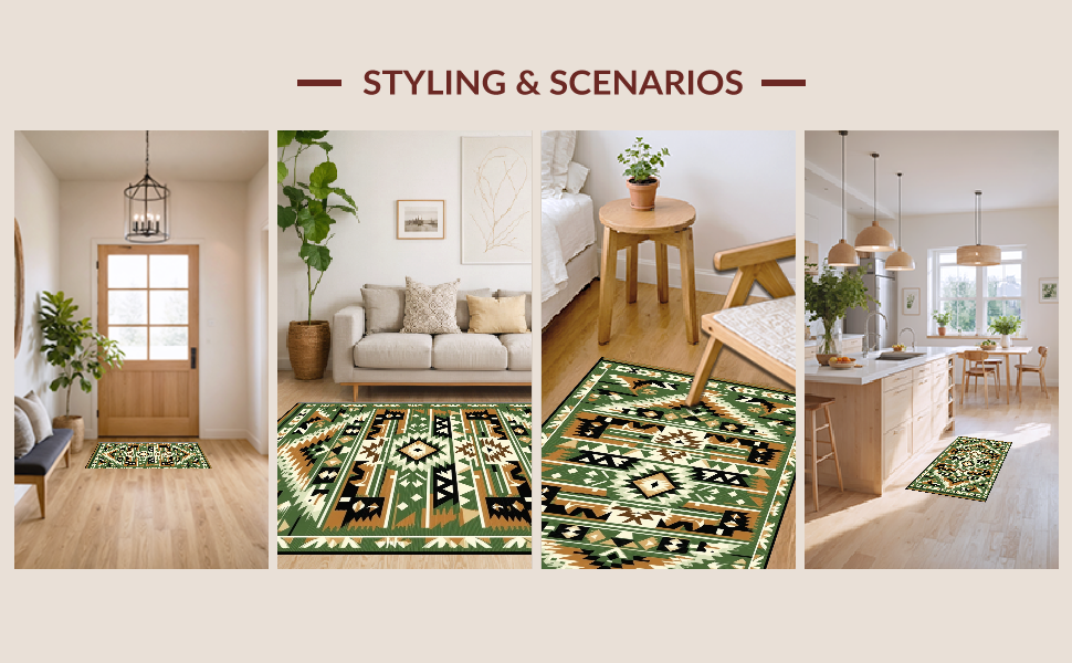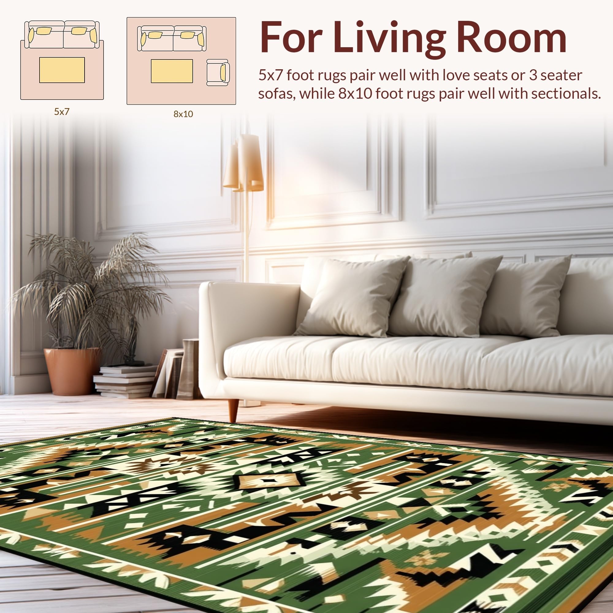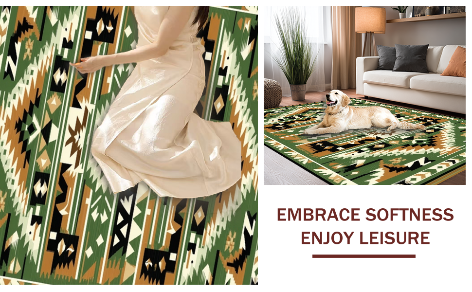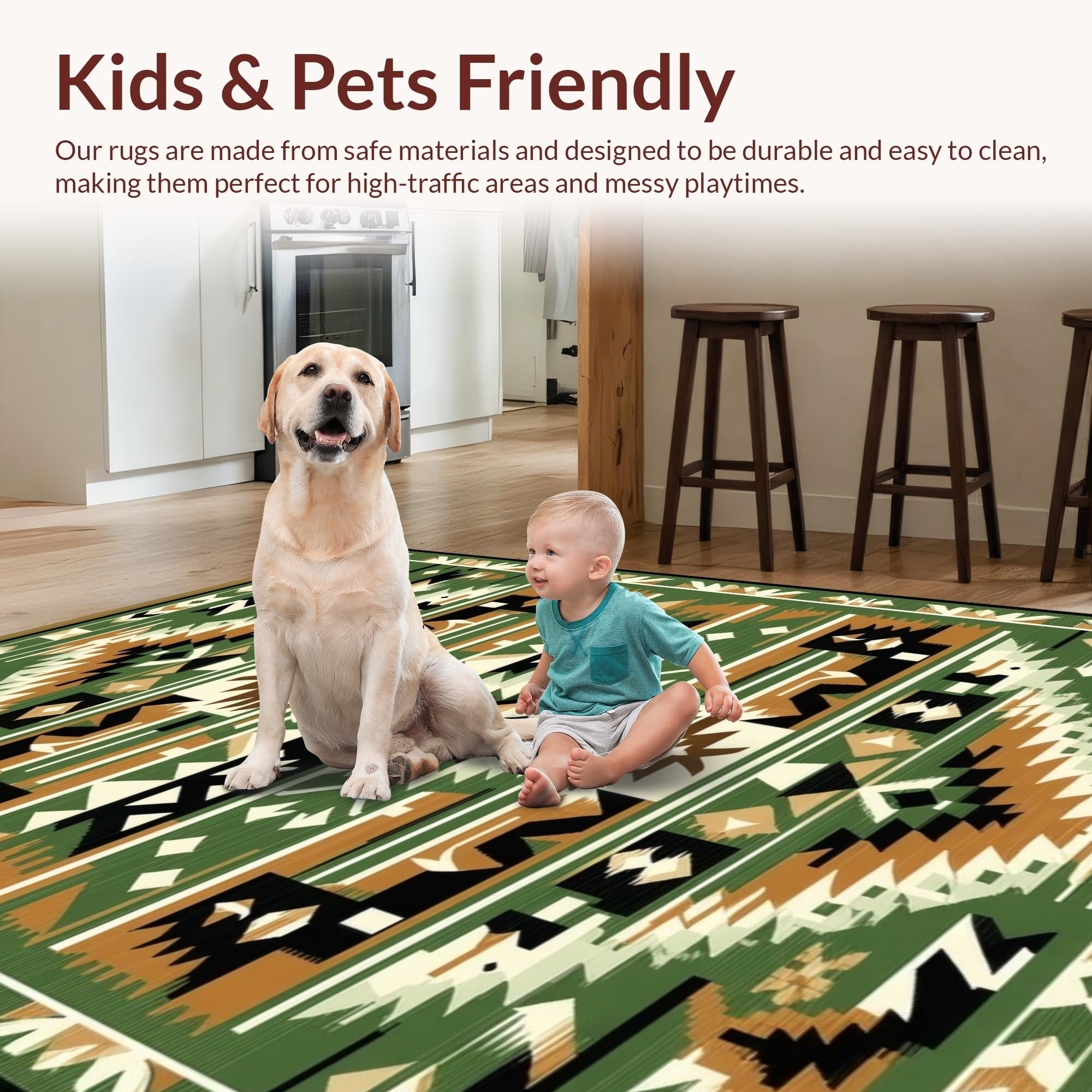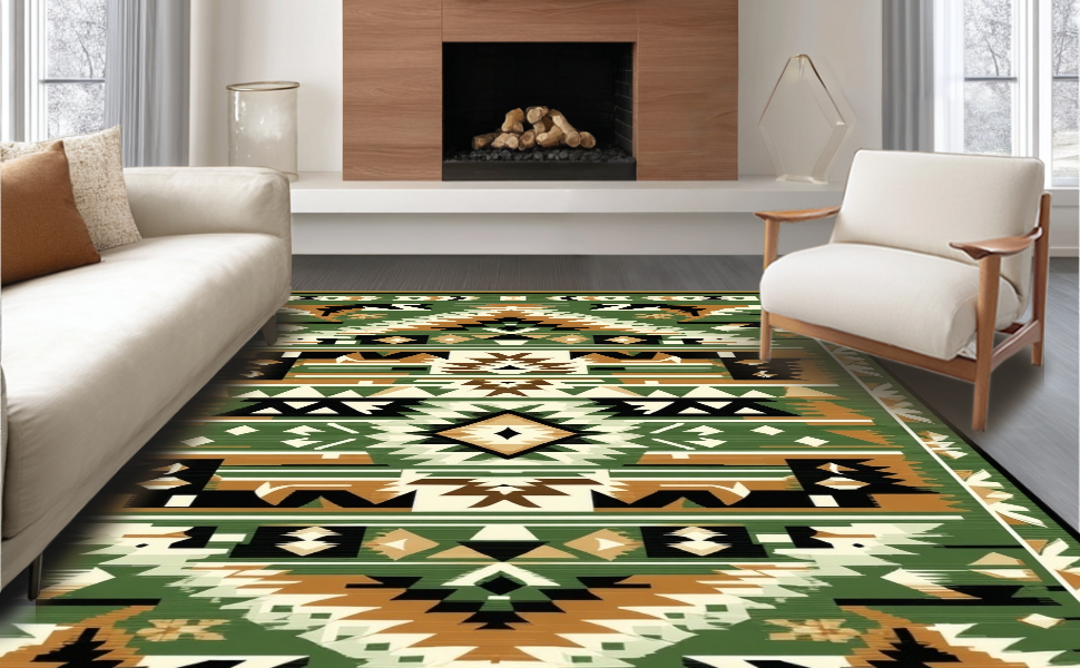 Ultra Soft Area Rug, Non Slip, Stain Resistant, Washable Area Rugs for Living Room, Bedroom, Intricate Black and Brown Artistry(Green) Overview: