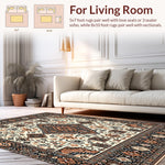 Ultra Soft Area Rug, Non Slip, Stain Resistant, Washable Area Rugs for Living Room, Bedroom, Intricate Boho Area With Deep Brown And Copper Geometric Design(Beige) Overview: