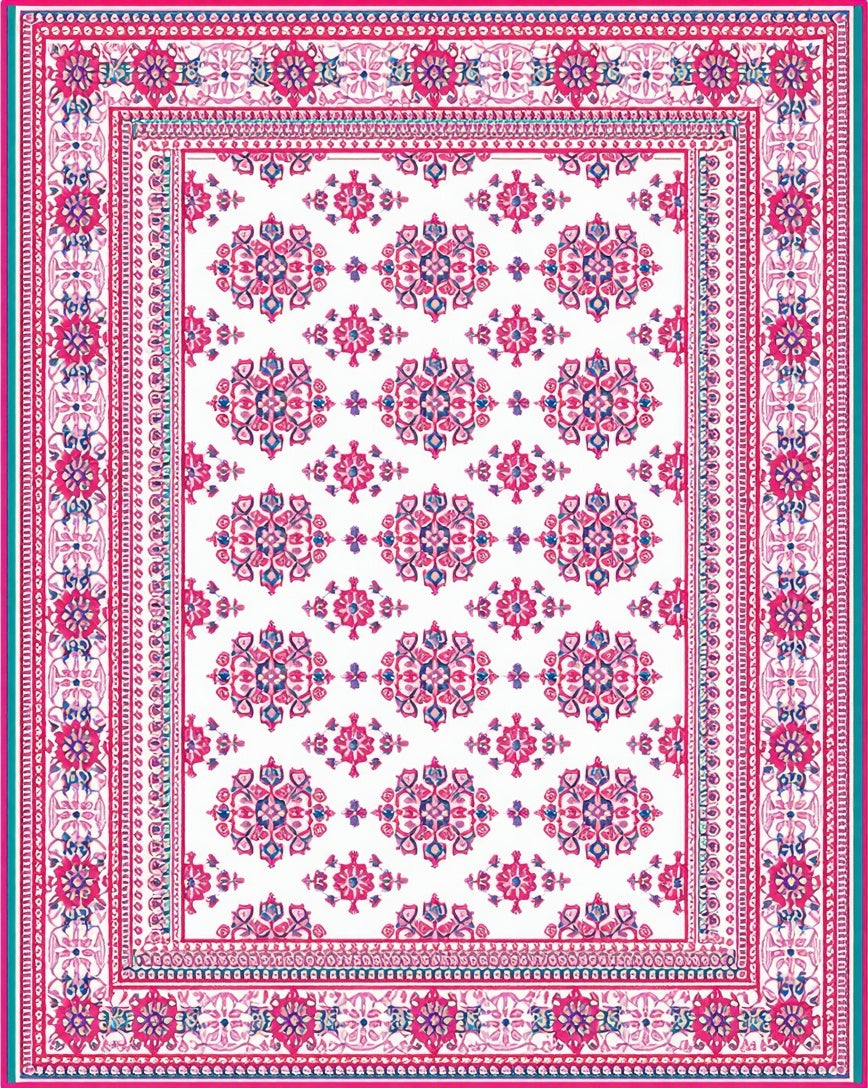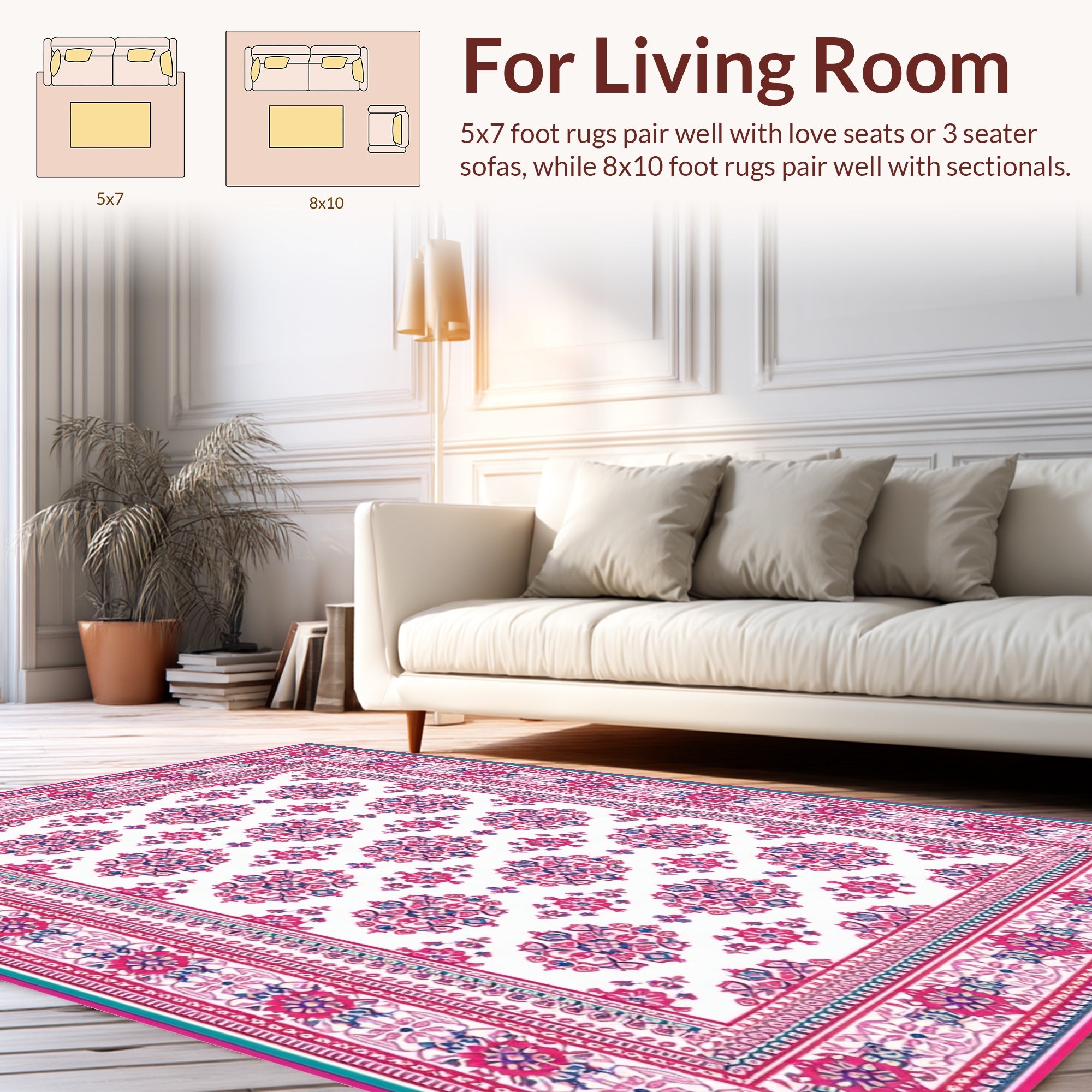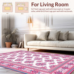 Flatwoven High Traffic Area Rug, Intricate Botanical Border Design, Non Slip, Stain Resistant, Washable Area Rugs for Living Room, Bedroom (White) Overview: