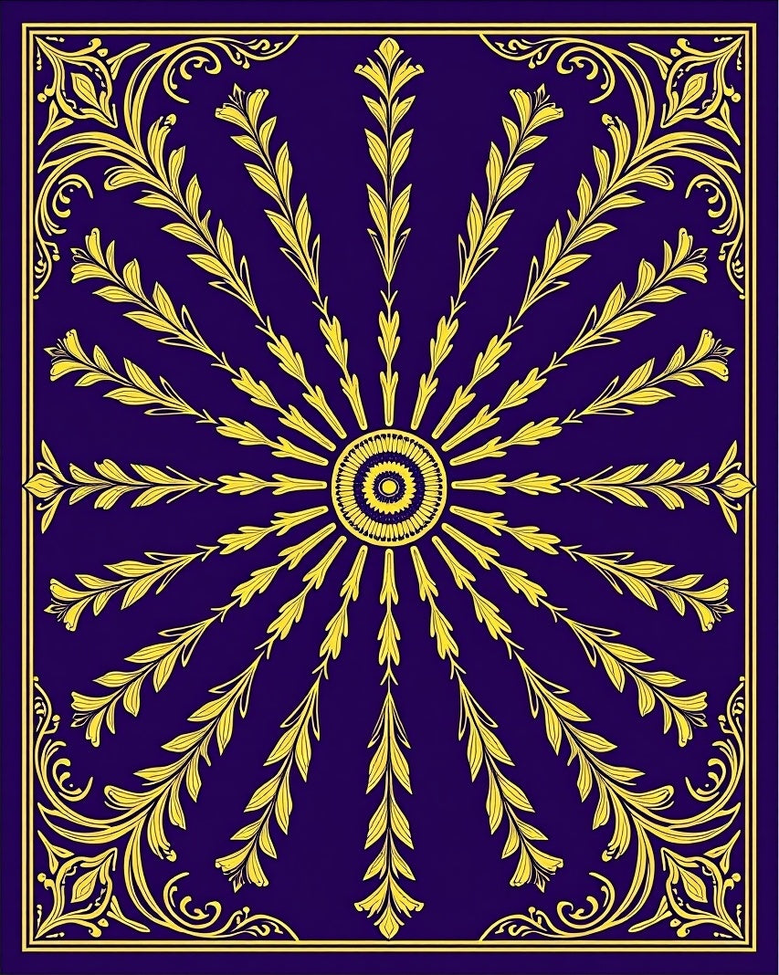 Intricate Floral Composition with Radiating Leaf(Purple)
