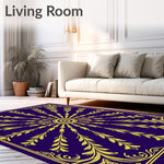 Flatwoven High Traffic Area Rug, Intricate Floral Composition with Radiating Leaf, Non Slip, Stain Resistant, Washable Area Rugs for Living Room, Bedroom (Purple) Overview: