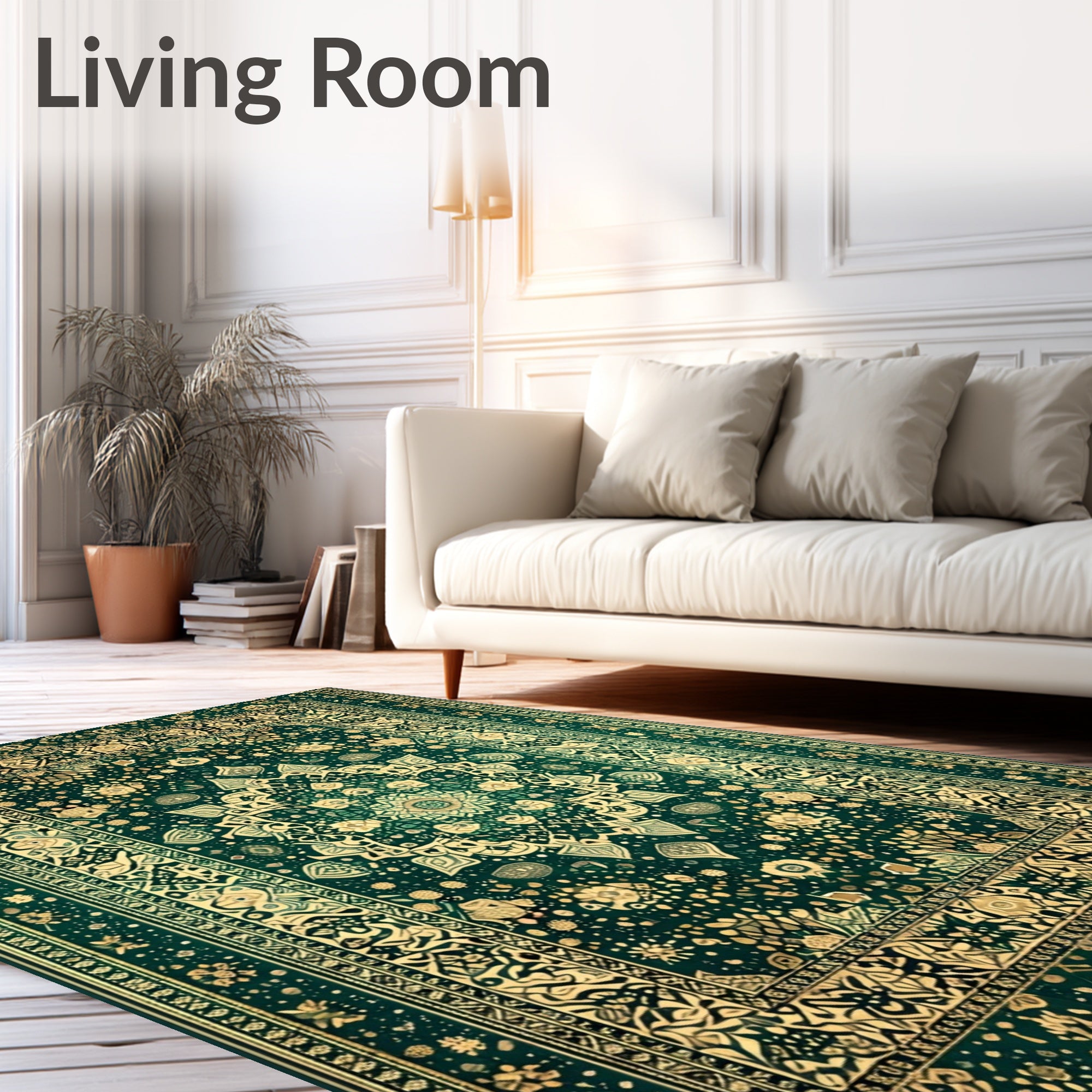 Ultra Soft Area Rug, Non Slip, Stain Resistant, Washable Area Rugs for Living Room, Bedroom, Intricate Geometric Spotted Area Featuring Motifs(Green) Overview: