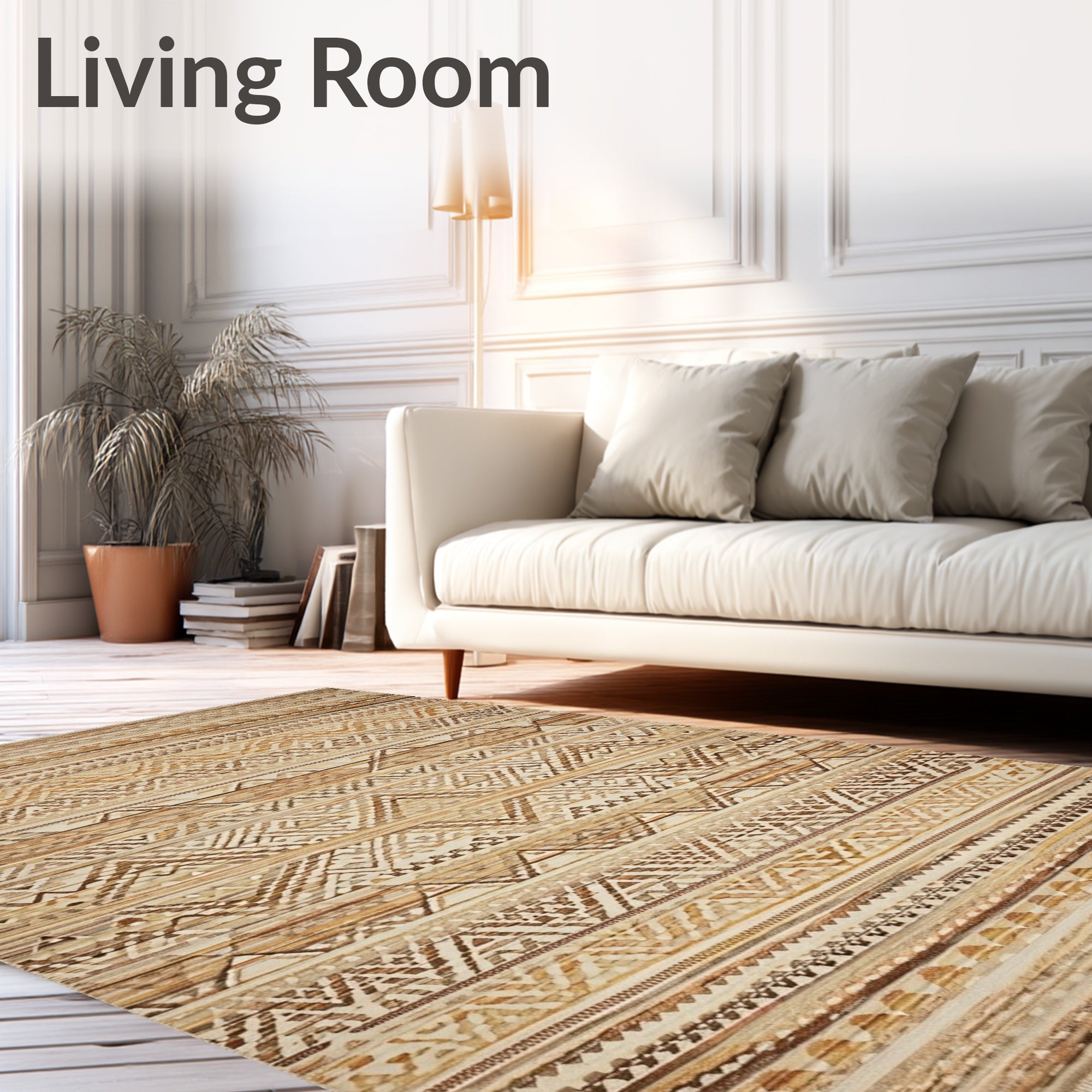Ultra Soft Area Rug, Non Slip, Stain Resistant, Washable Area Rugs for Living Room, Bedroom, Intricate Jute Area With Elegant Diamond In Natural Tones(Beige) Overview: