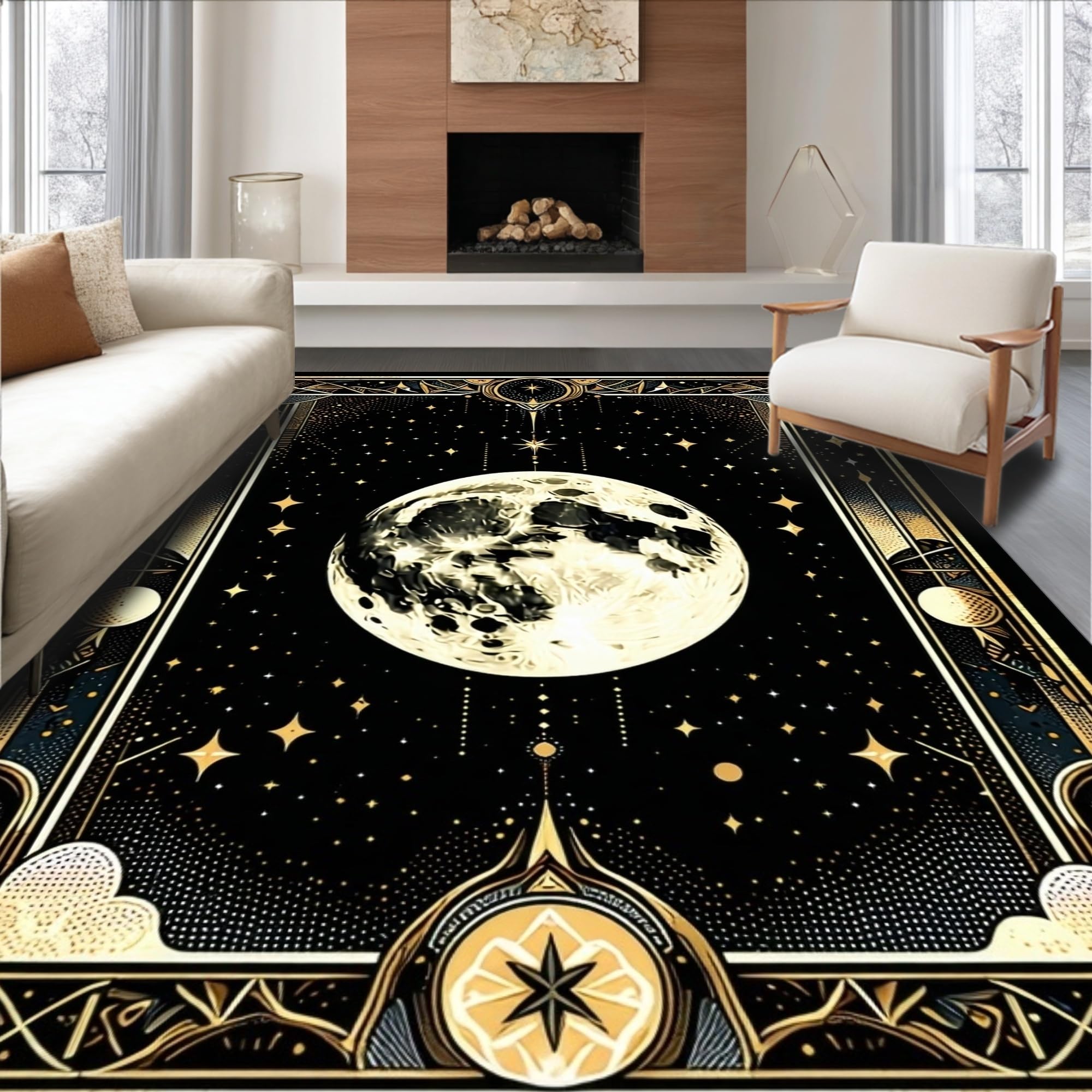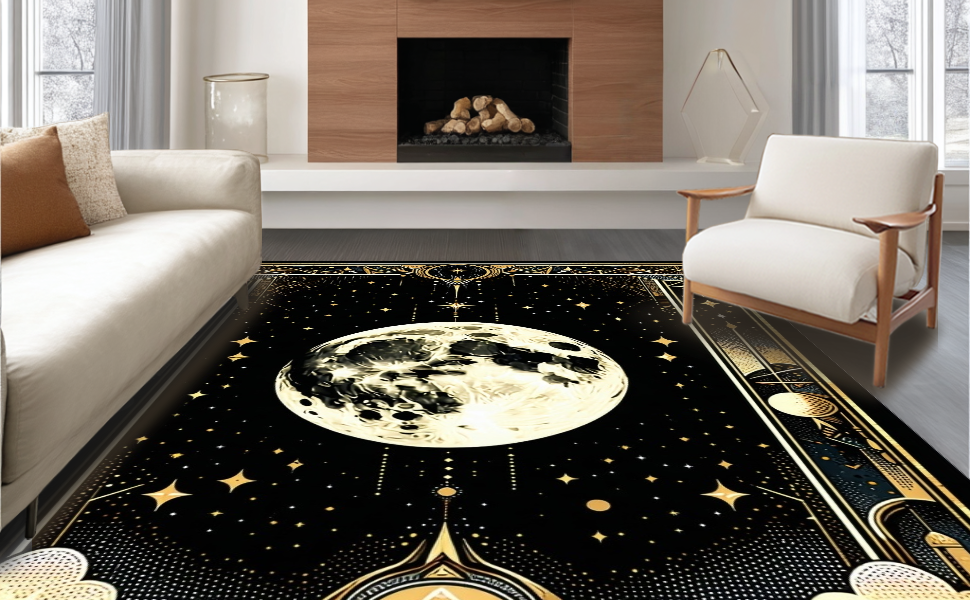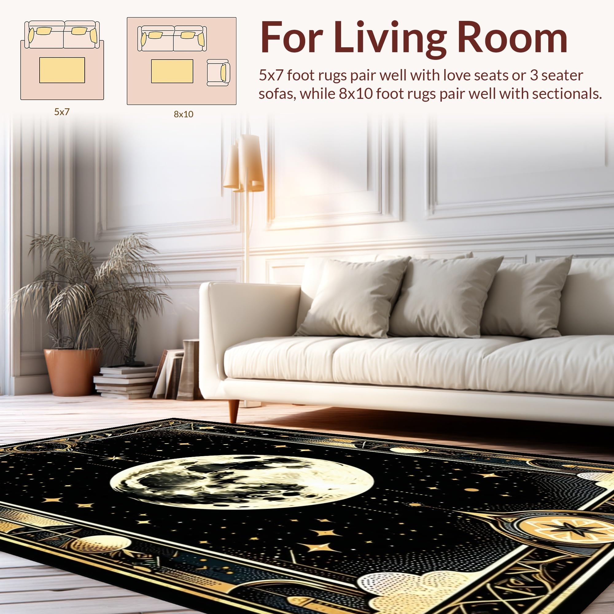 Ultra Soft Area Rug, Non Slip, Stain Resistant, Washable Area Rugs for Living Room, Bedroom, Intricate Lunar and Serpent Fusion(Gold) Overview: