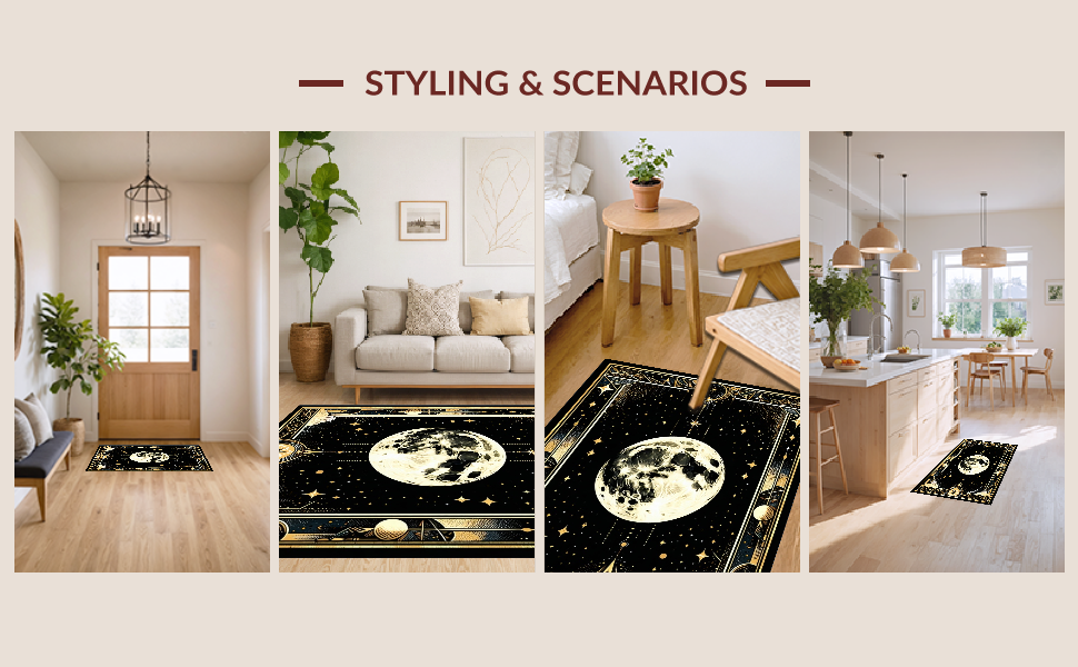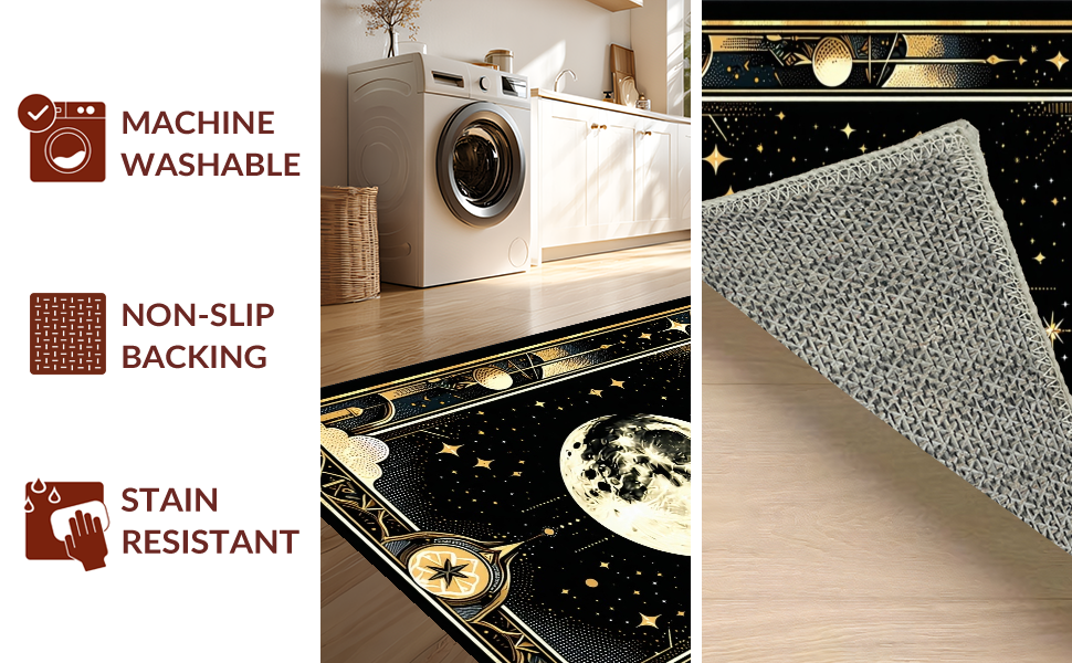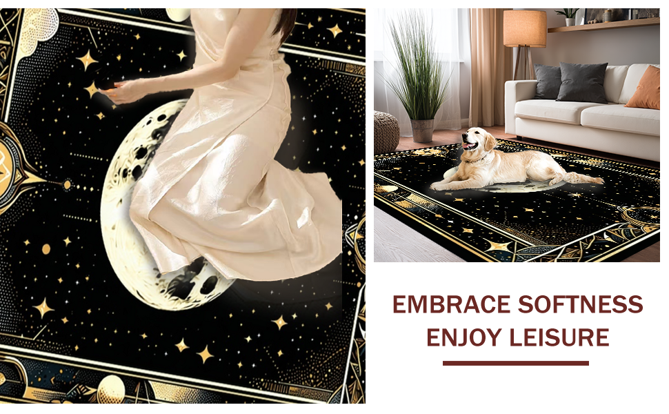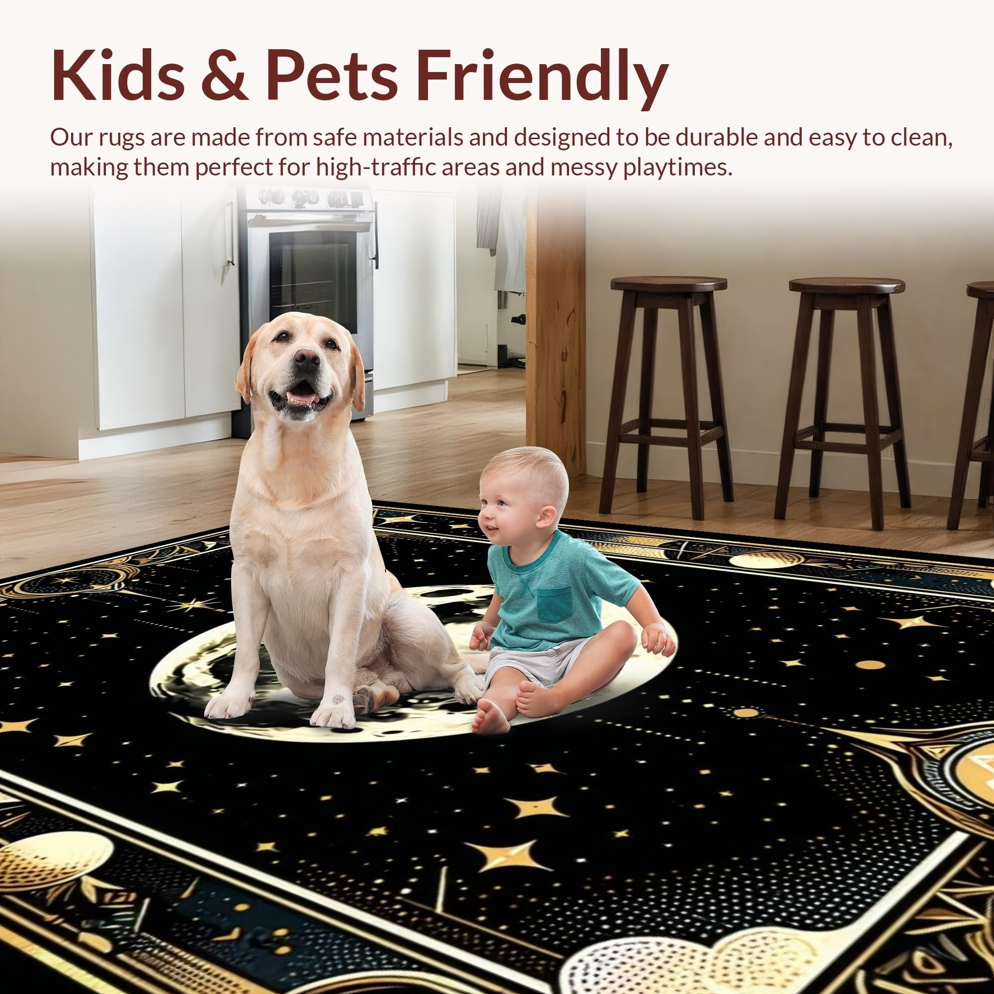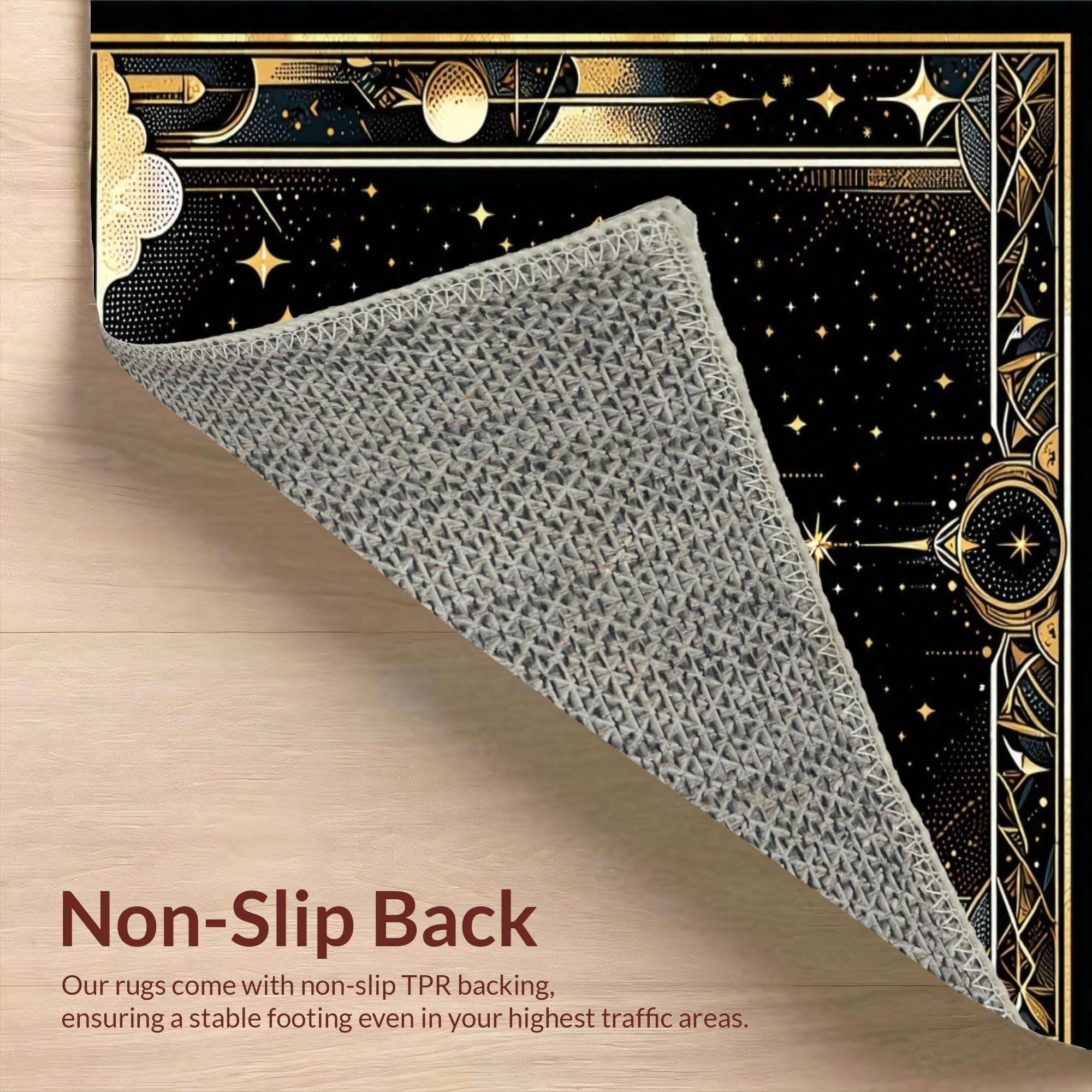 Ultra Soft Area Rug, Non Slip, Stain Resistant, Washable Area Rugs for Living Room, Bedroom, Intricate Lunar and Serpent Fusion(Gold) Overview: