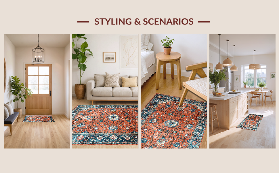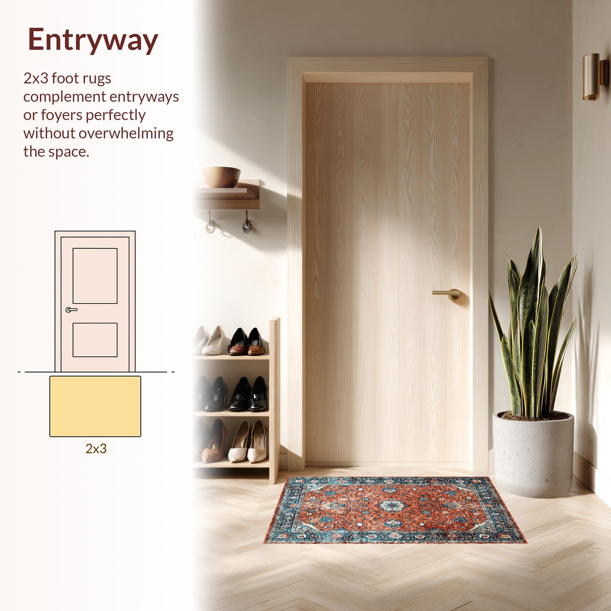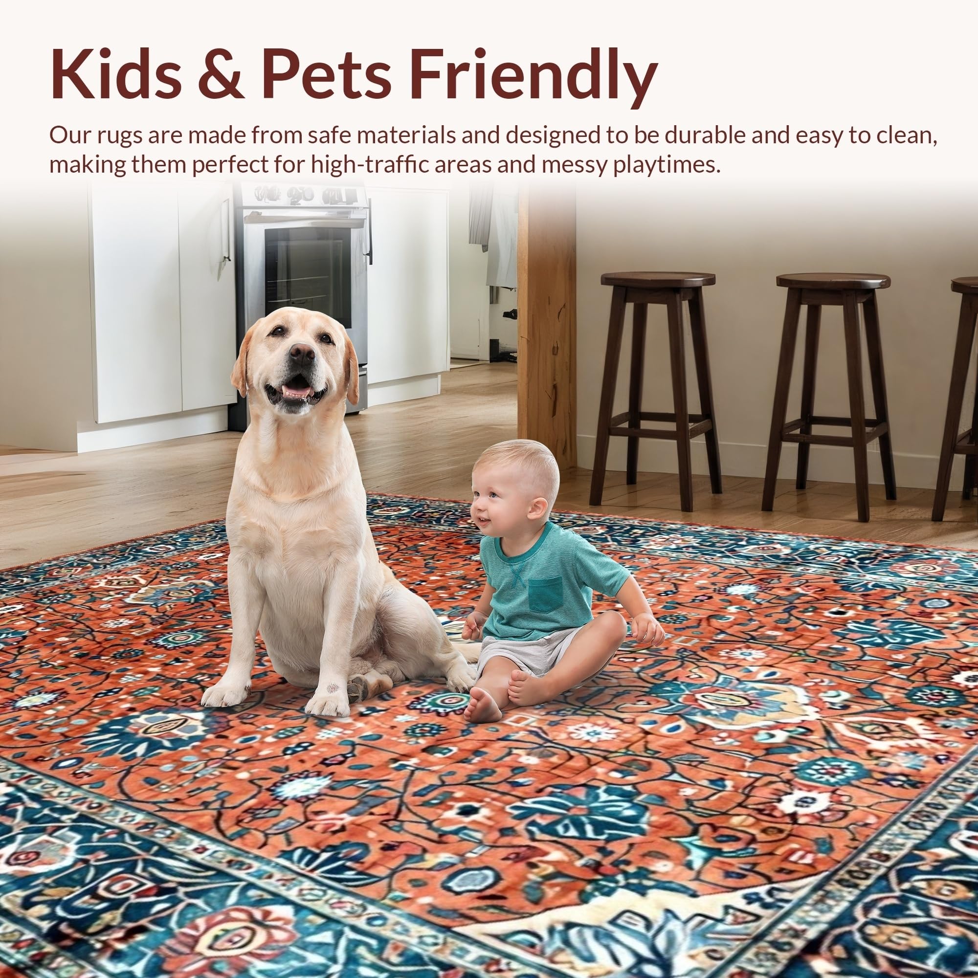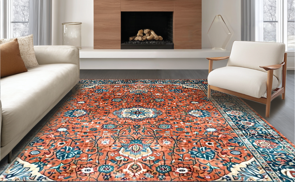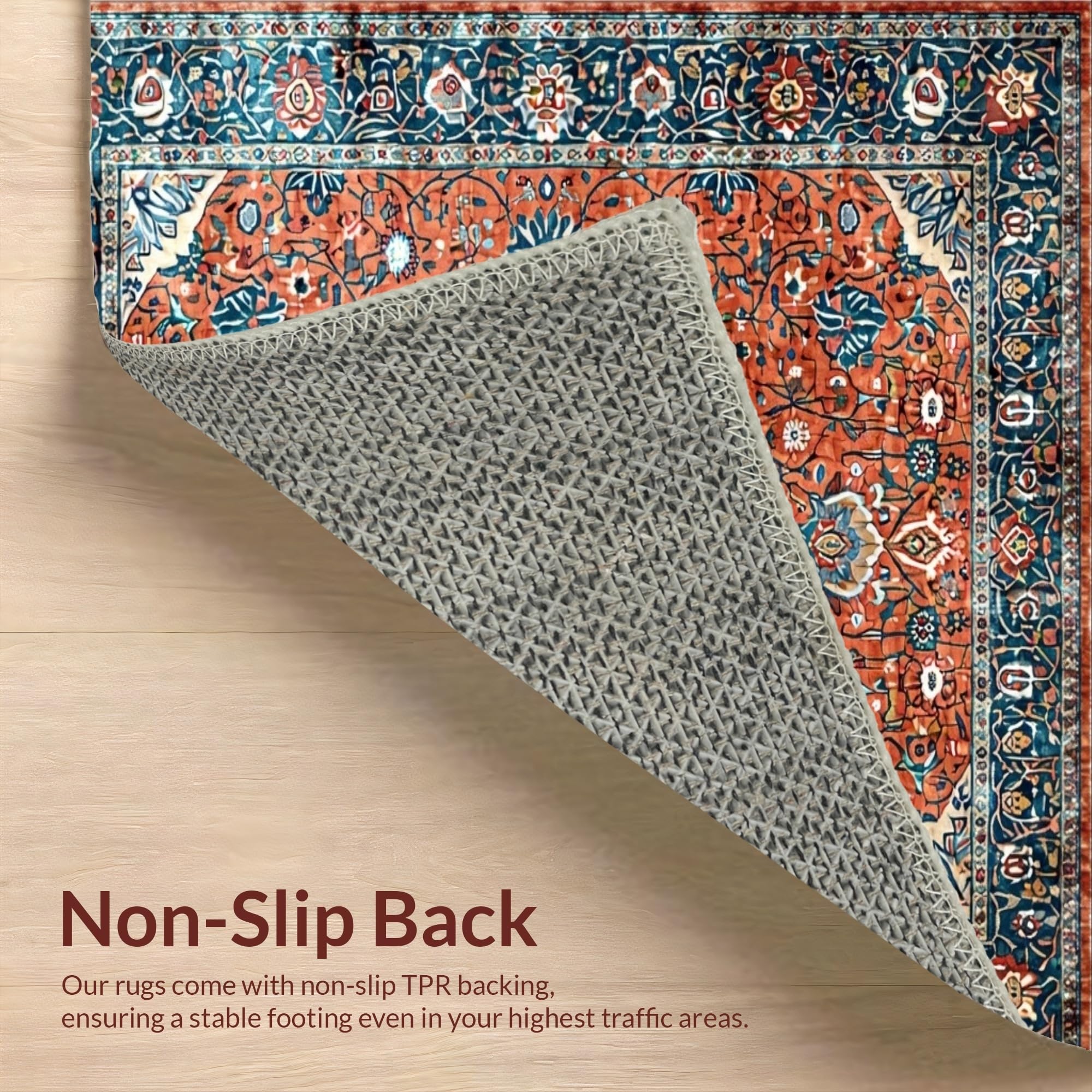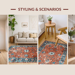 Ultra Soft Area Rug, Non Slip, Stain Resistant, Washable Area Rugs for Living Room, Bedroom, Intricate Medallion Rustic Charm(Red) Overview: