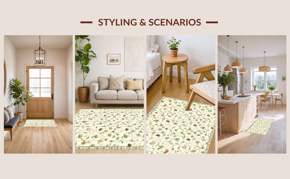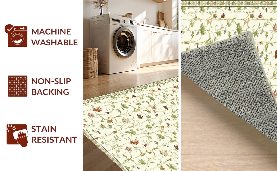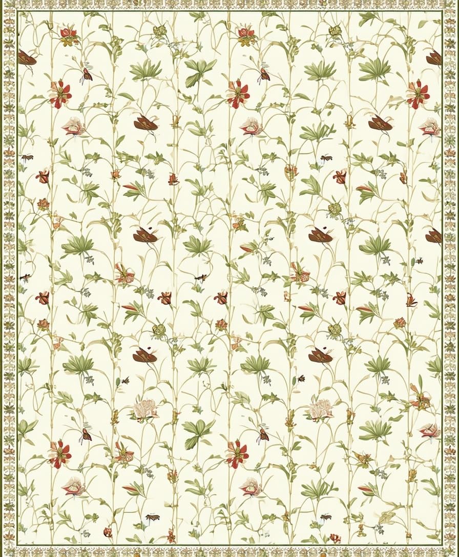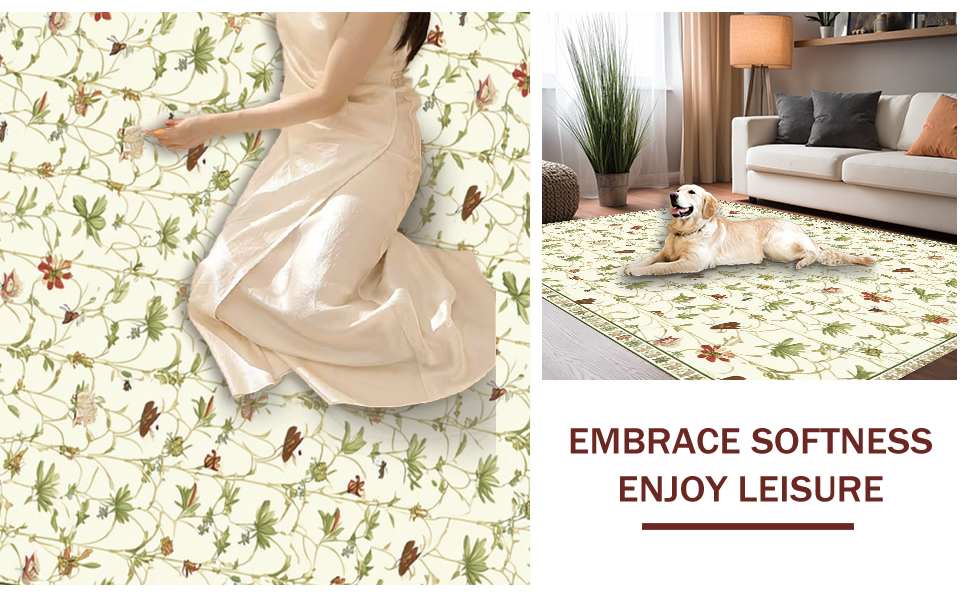 Ultra Soft Area Rug, Non Slip, Stain Resistant, Washable Area Rugs for Living Room, Bedroom, Intricate Nature Artistry Theme(Beige) Overview: