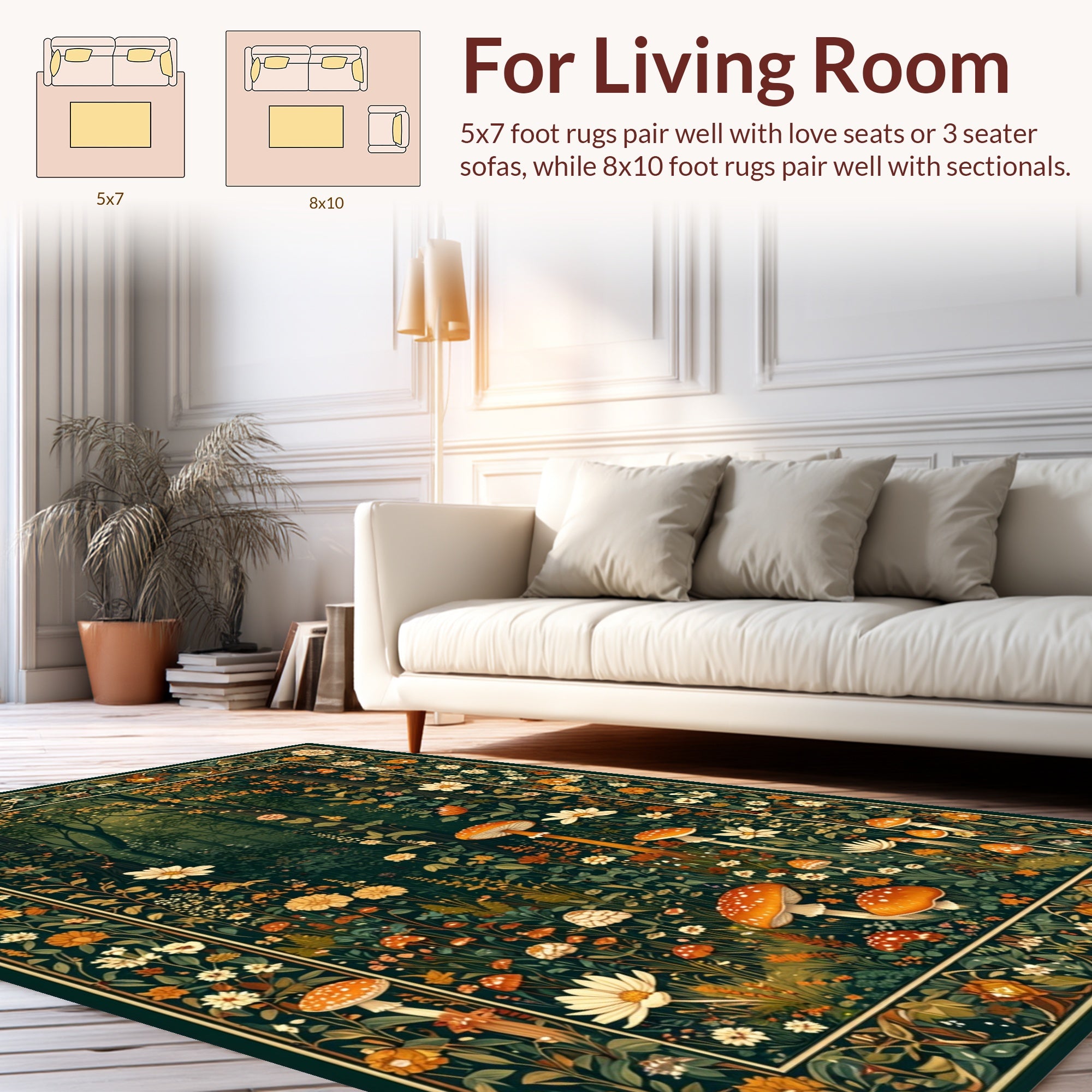 Flatwoven High Traffic Area Rug, Intricate Nature Motif, Non Slip, Stain Resistant, Washable Area Rugs for Living Room, Bedroom (Green) Overview: