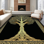 Flatwoven High Traffic Area Rug, Intricate Norse Nature Motif, Non Slip, Stain Resistant, Washable Area Rugs for Living Room, Bedroom (Gold) Overview: