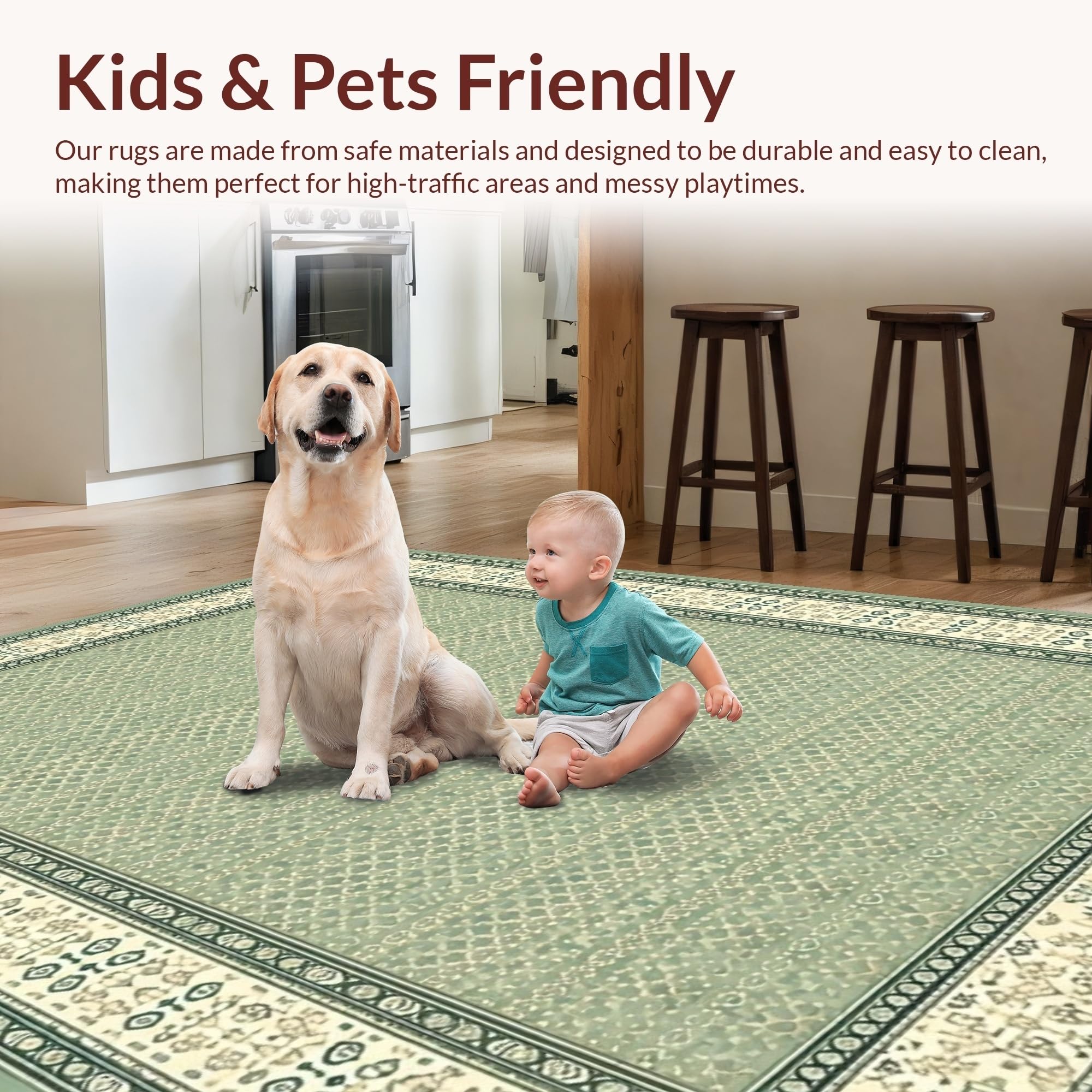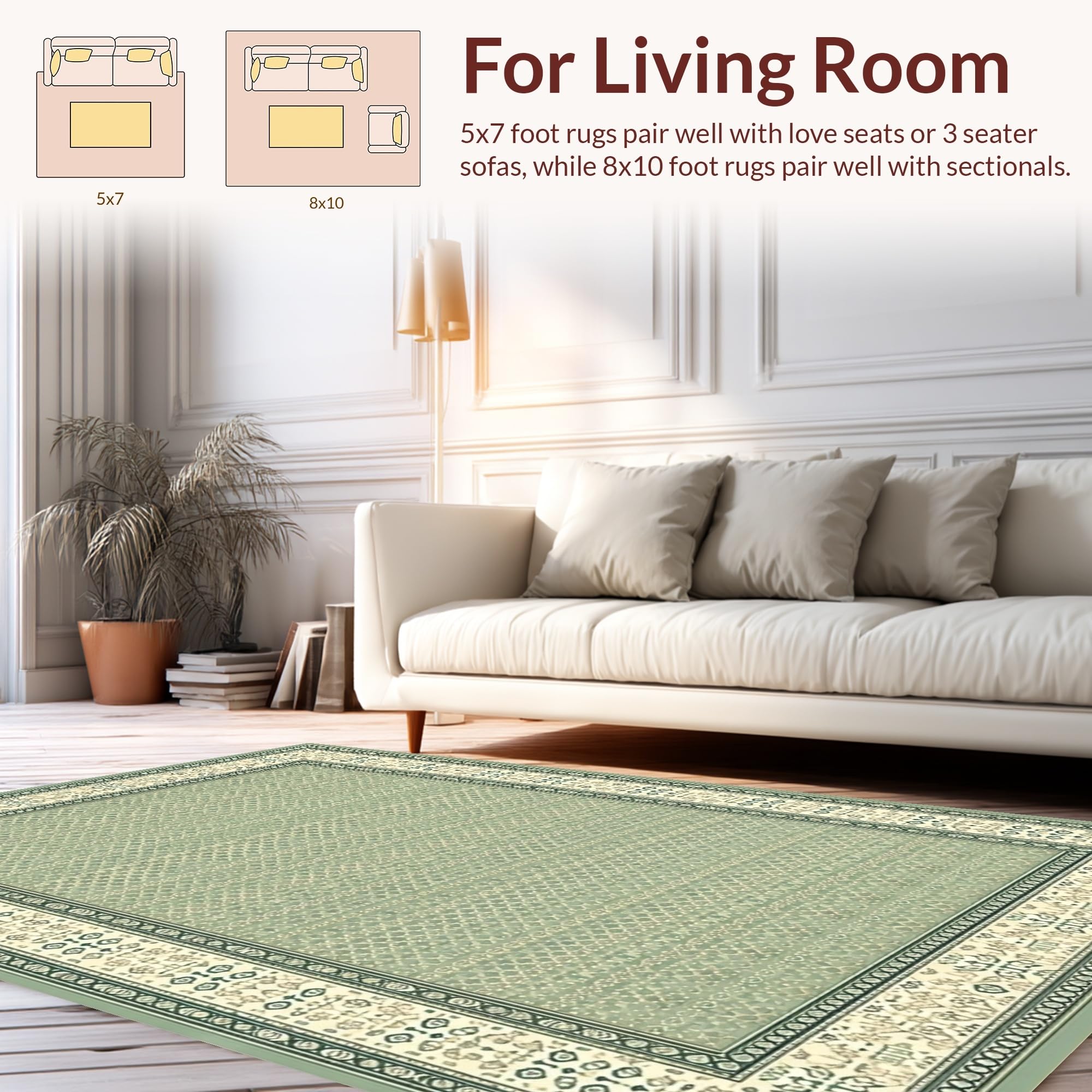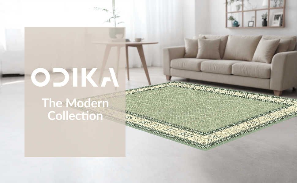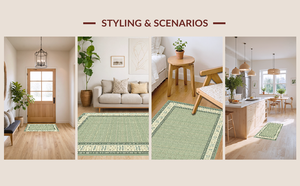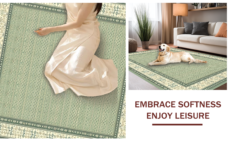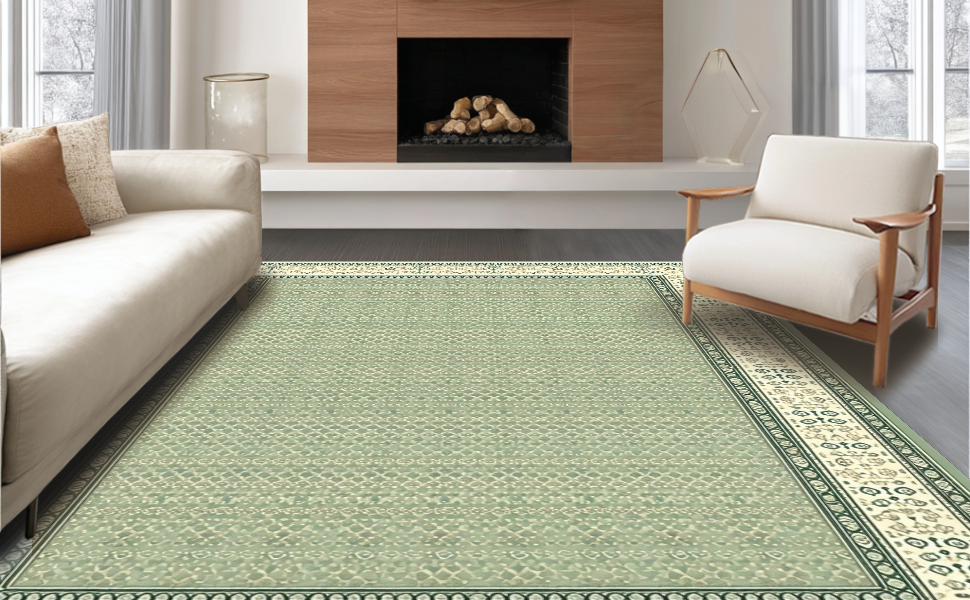 Ultra Soft Area Rug, Non Slip, Stain Resistant, Washable Area Rugs for Living Room, Bedroom, Inviting Cozy Geometric Border Theme(Green) Overview: