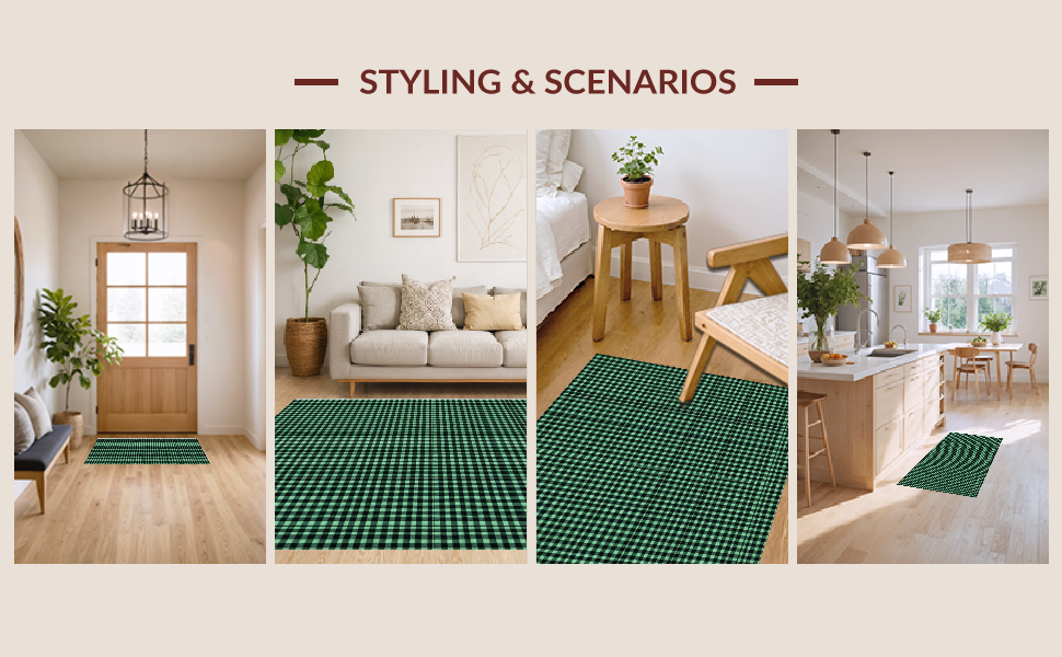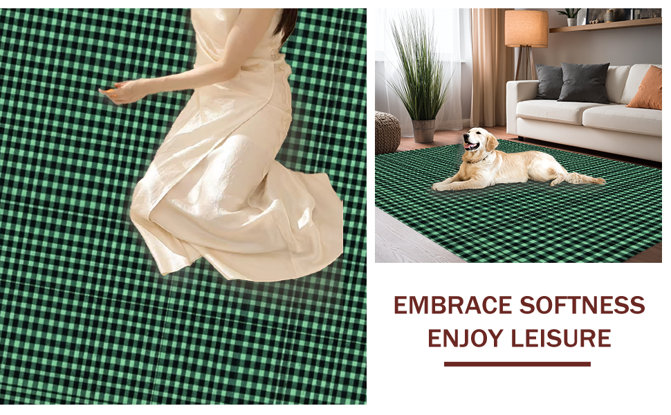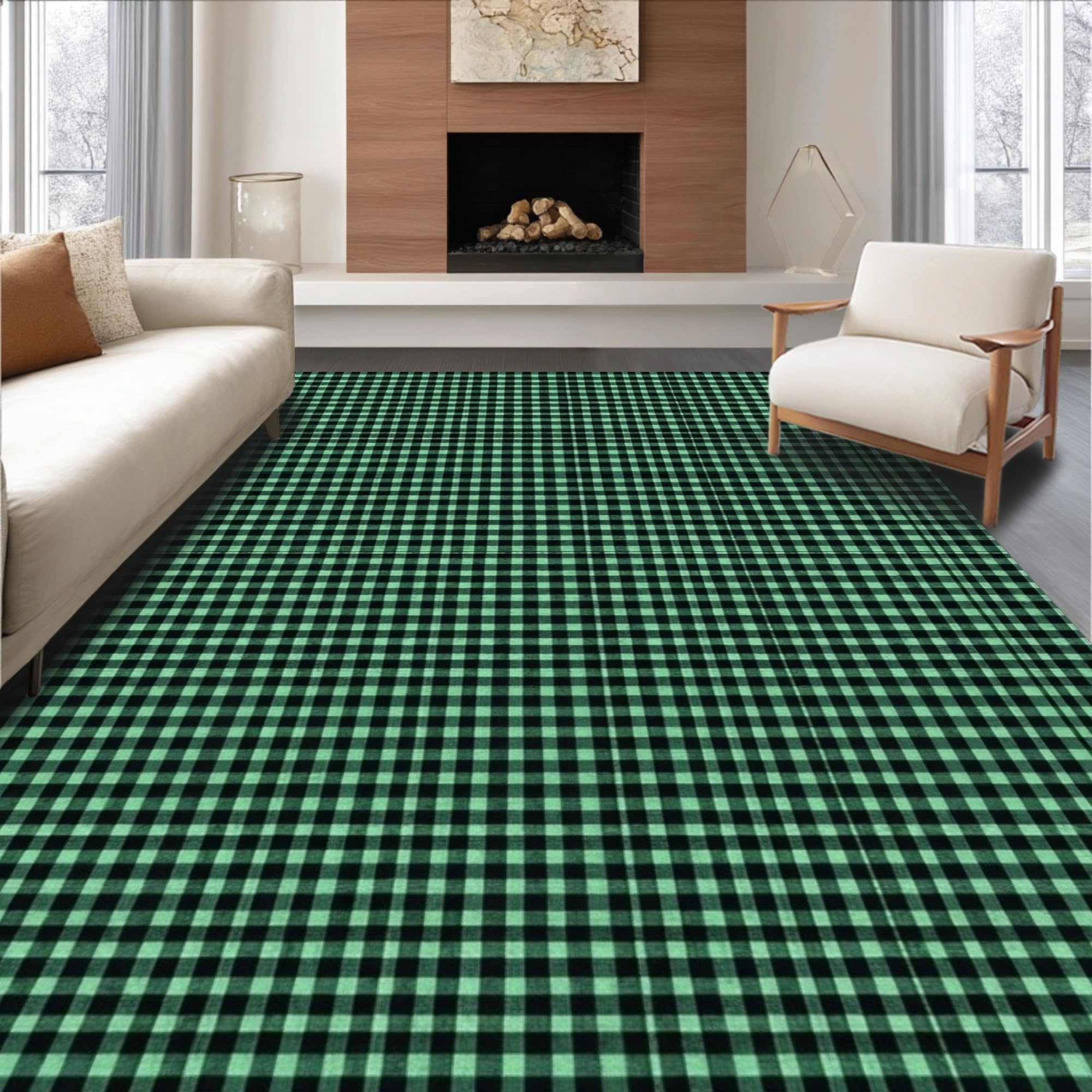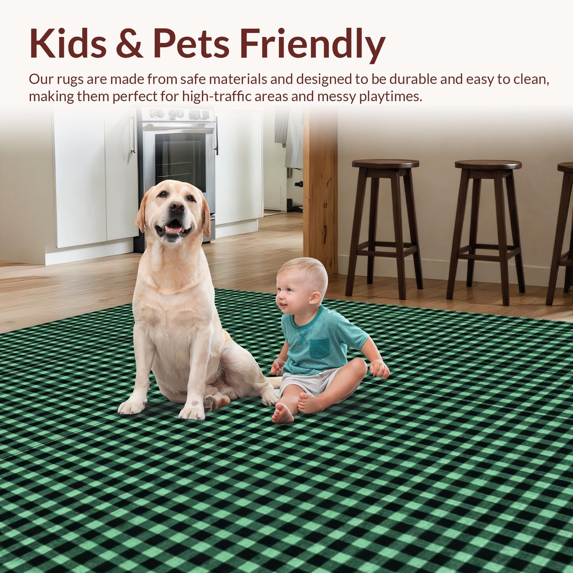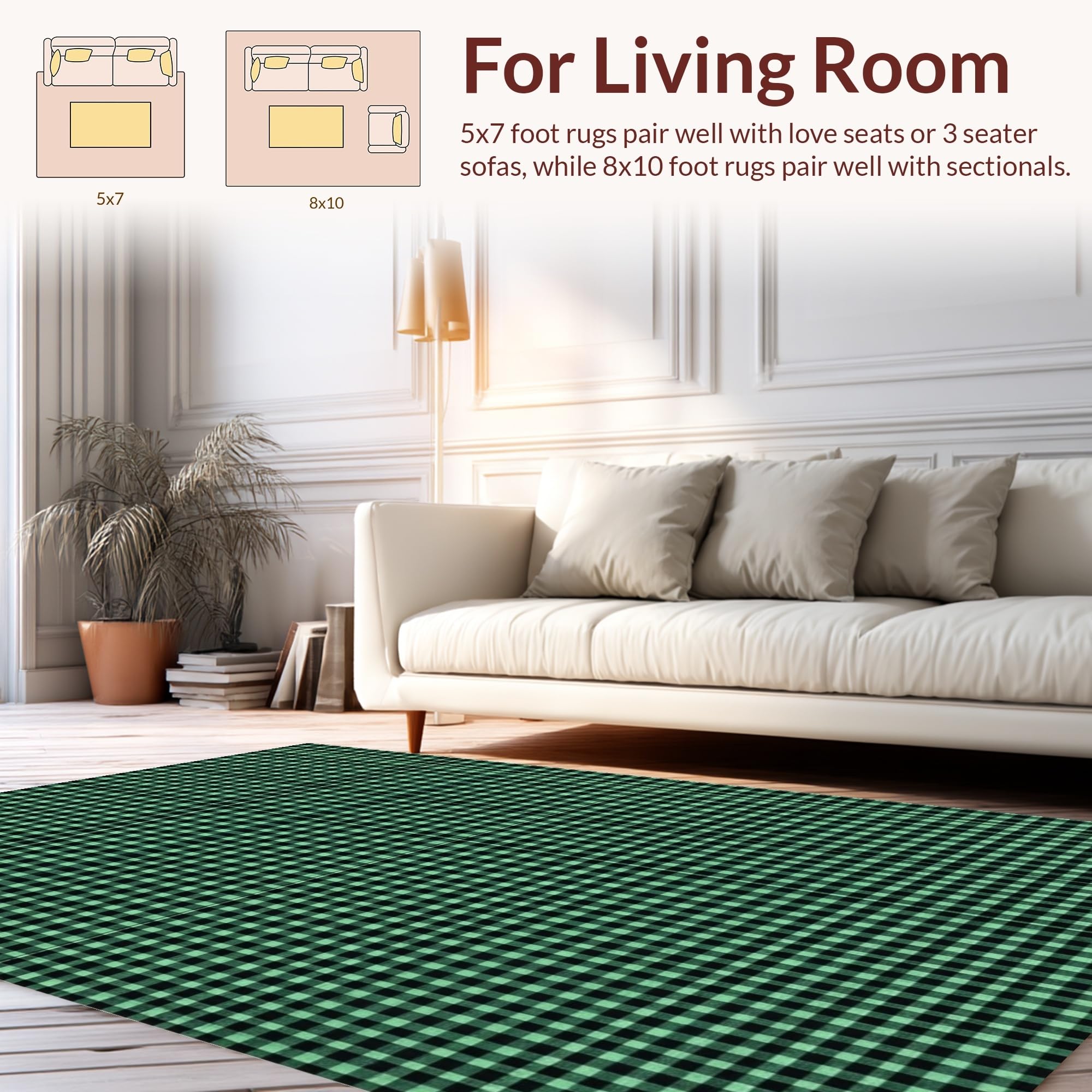 Ultra Soft Area Rug, Non Slip, Stain Resistant, Washable Area Rugs for Living Room, Bedroom, Inviting Cozy Plaid Design Element(Green) Overview: