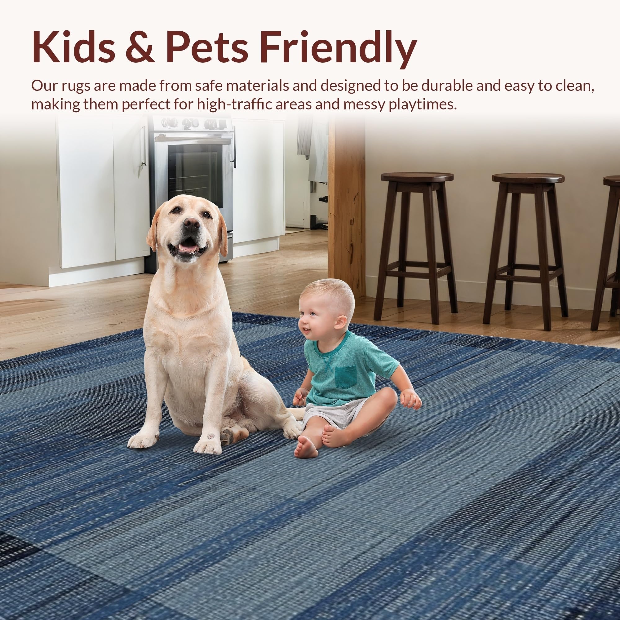Ultra Soft Area Rug, Non Slip, Stain Resistant, Washable Area Rugs for Living Room, Bedroom, Inviting Cozy Trellis Arrangement(Blue) Overview: